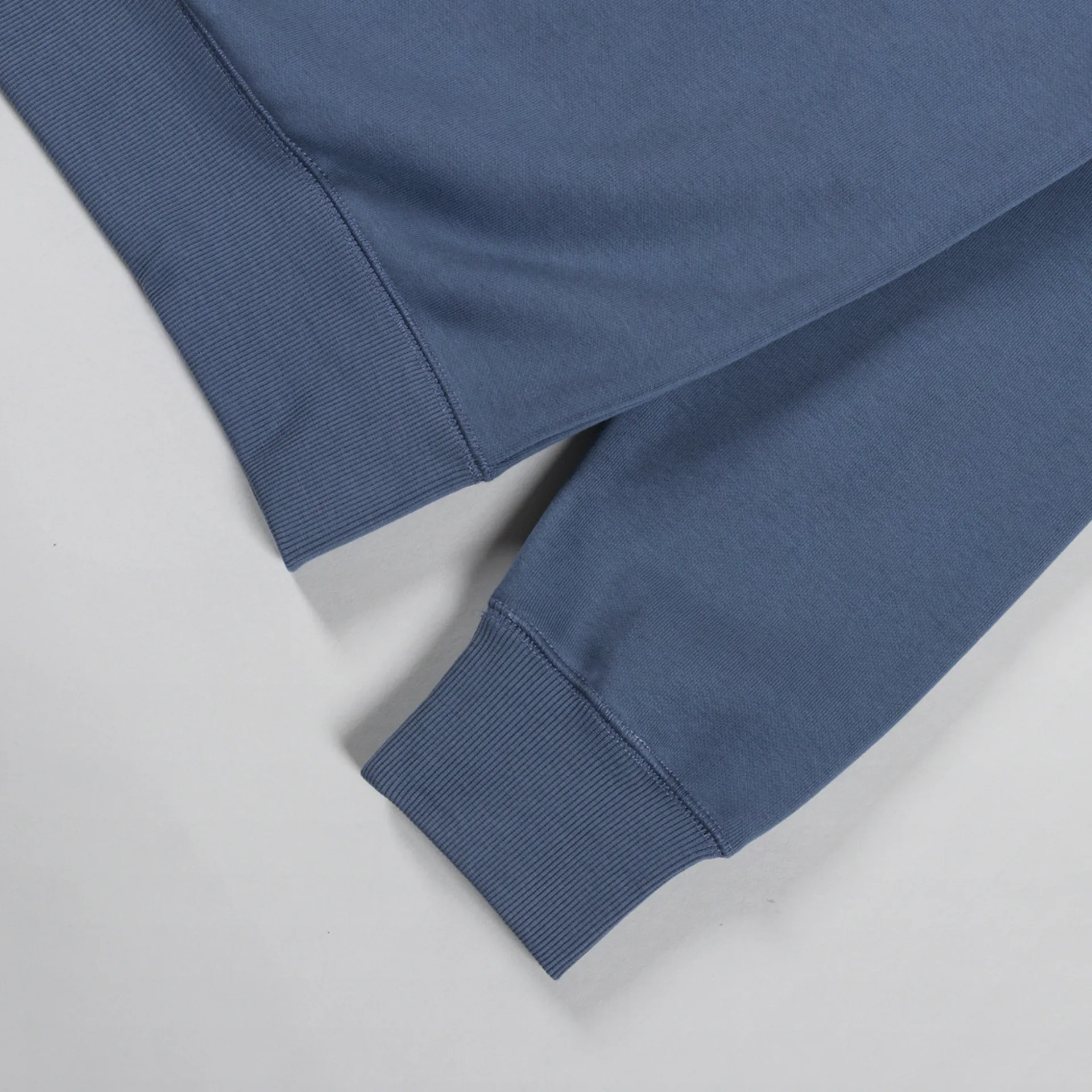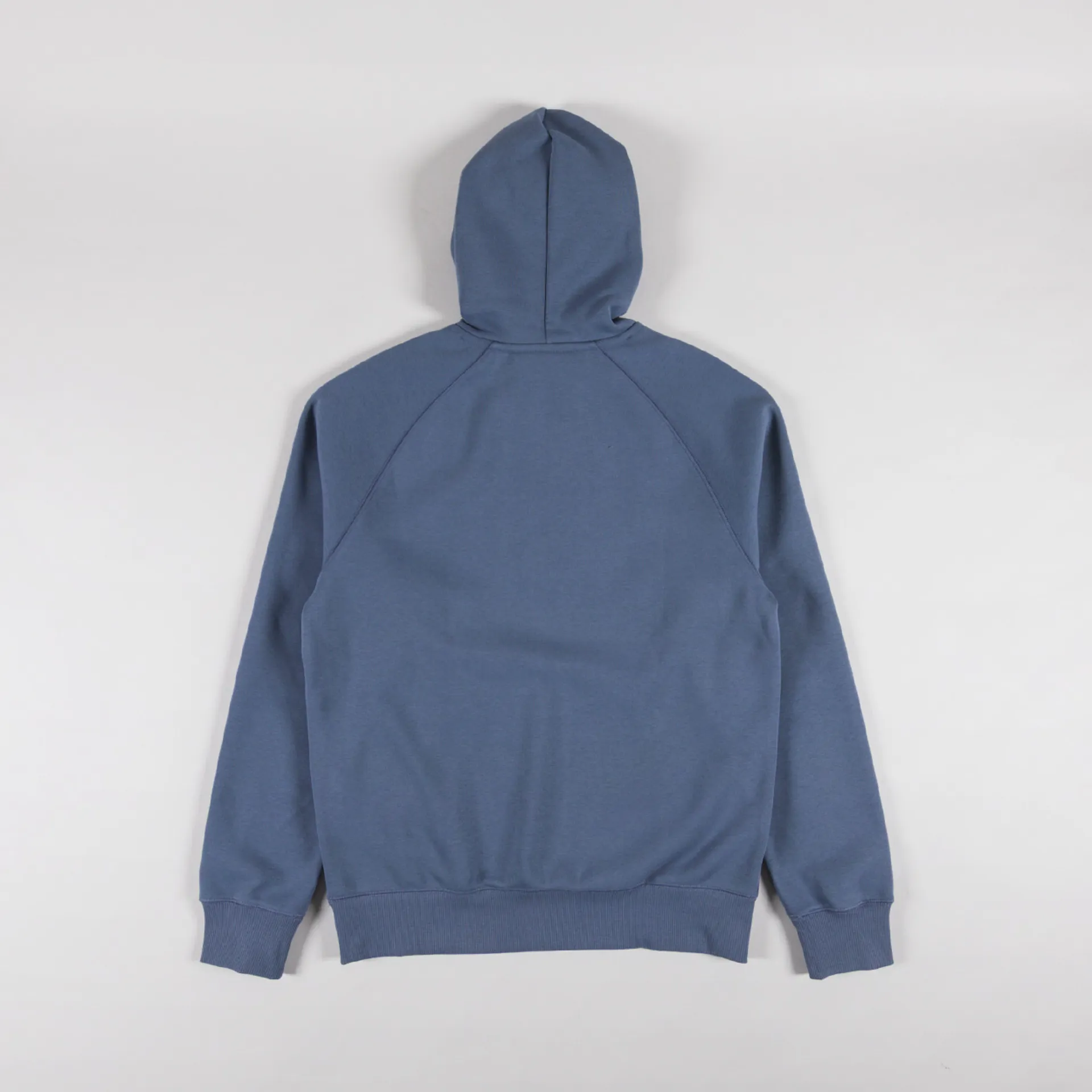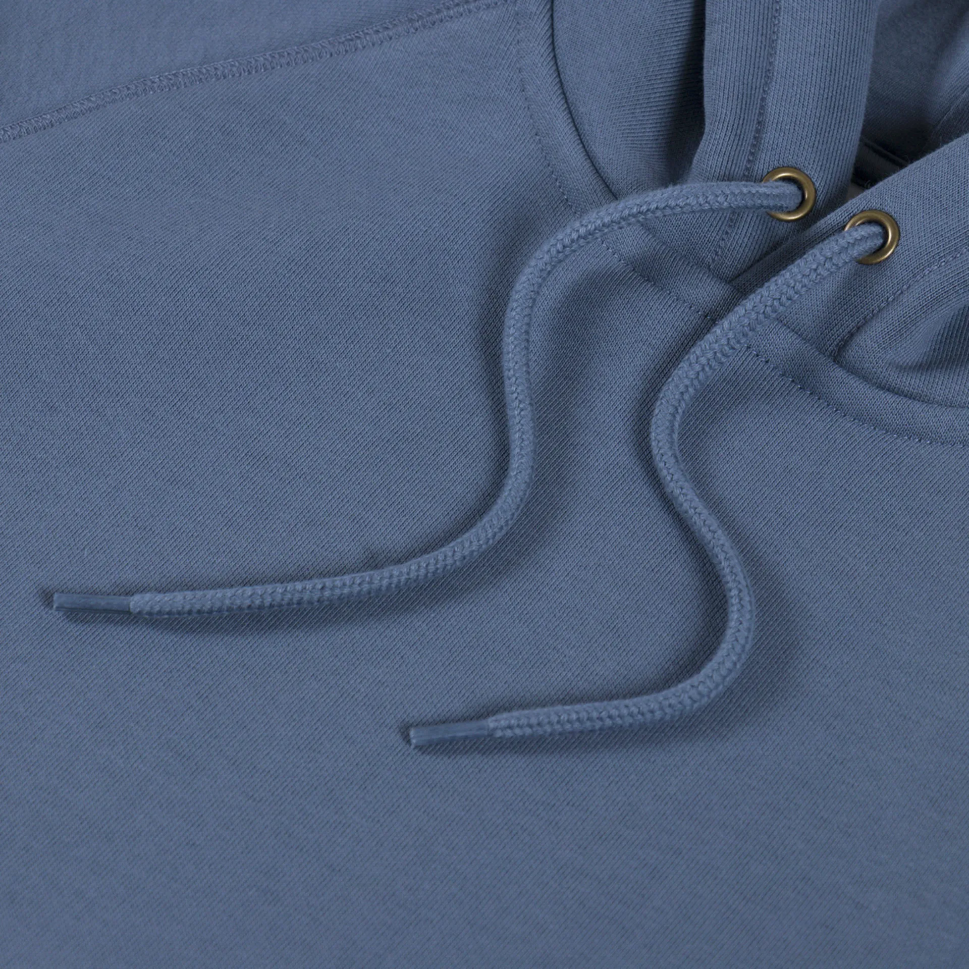 A warm and comfortable cotton hoodie from Carhartt WIP with a drawstring hood and ribbed cuffs, the left of which has an embroidered logo above it.