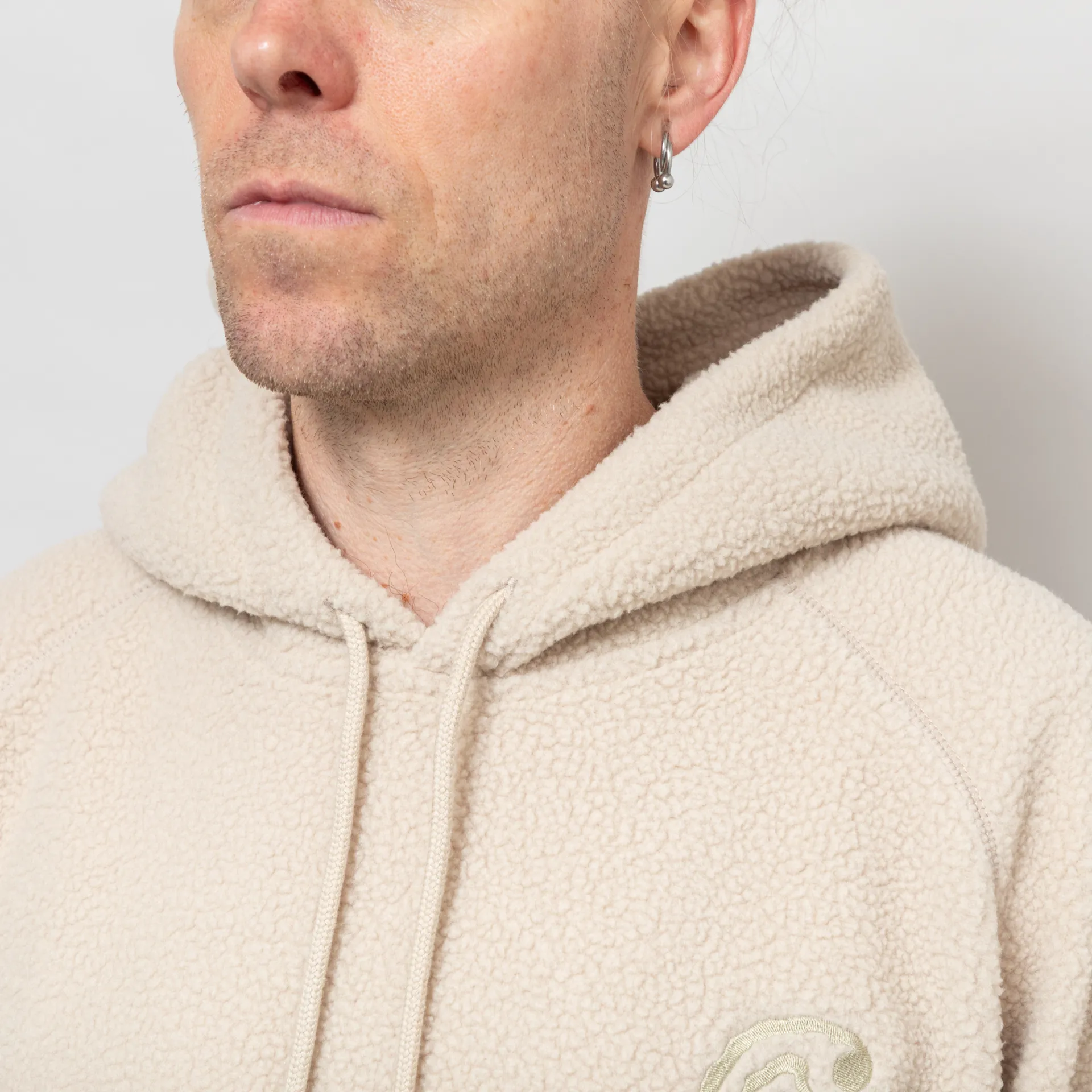 A fleece pullover from Carhartt WIP, constructed from midweight, brushed polyester fleece and cut in a balloon fit, which is a little looser and boxier, but also characterised by dropped shoulders. It features an adjustable drawstring hood, a kangaroo pocket, ribbed trims, flatlock stitching throughout and finished with tonal embroidered Helix logos to the chest and back.