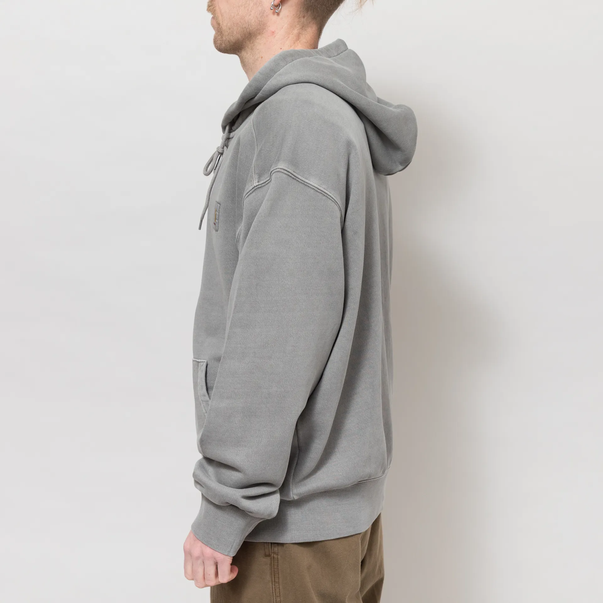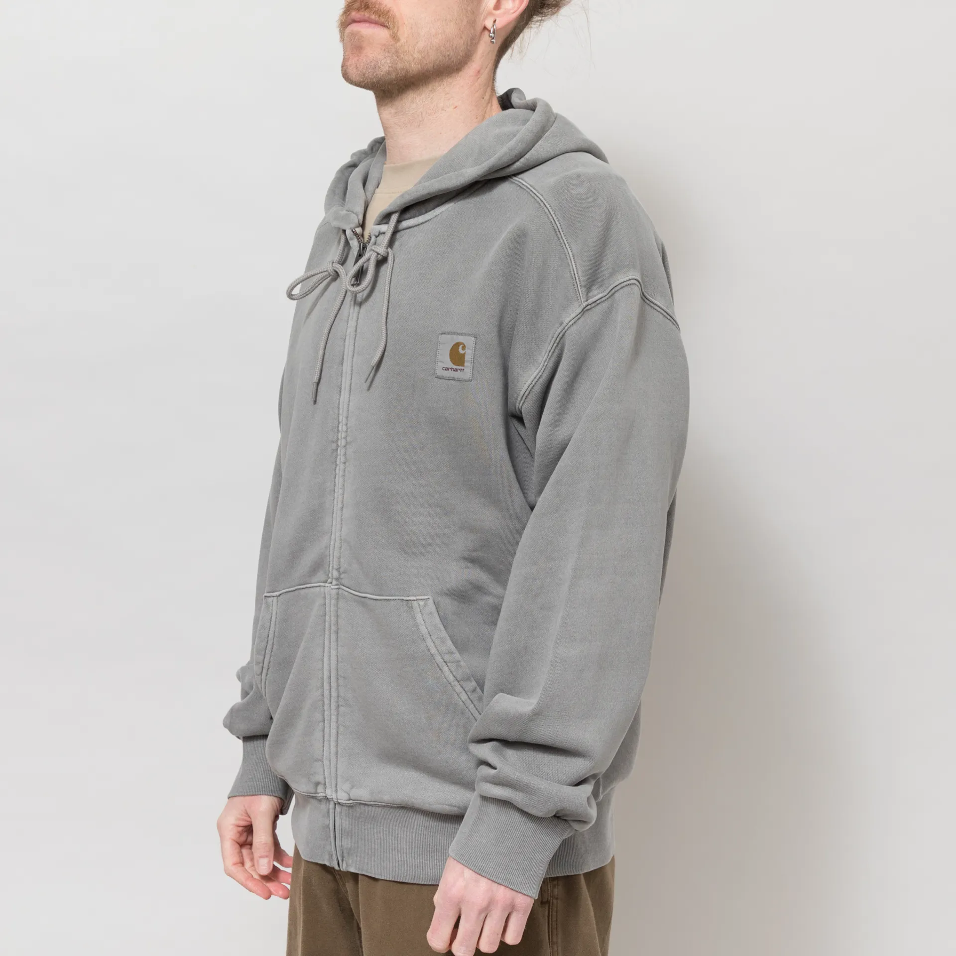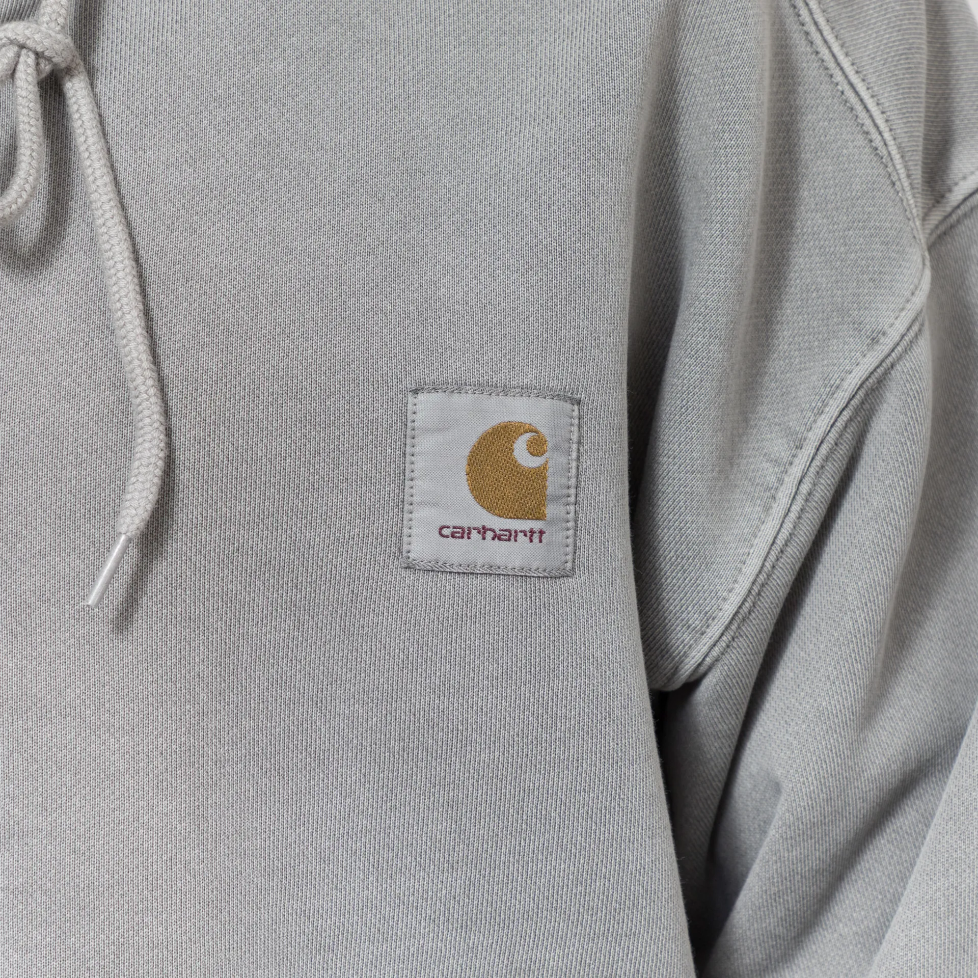 The Hooded Nelson Jacket from Carhartt WIP is cut in a balloon fit, which is a little looser and boxier with dropped shoulders for a laidback silhouette. Constructed from heavyweight, unbrushed cotton jersey with a loopback construction. This style has been garment-dyed for a worn-in look and softer handfeel. It features a full zip-through front, leading up to a classic drawstring hood, with a ribbed hem and cuffs, with two hand pockets to the front. Finished with the classic Carhartt square label to the chest.