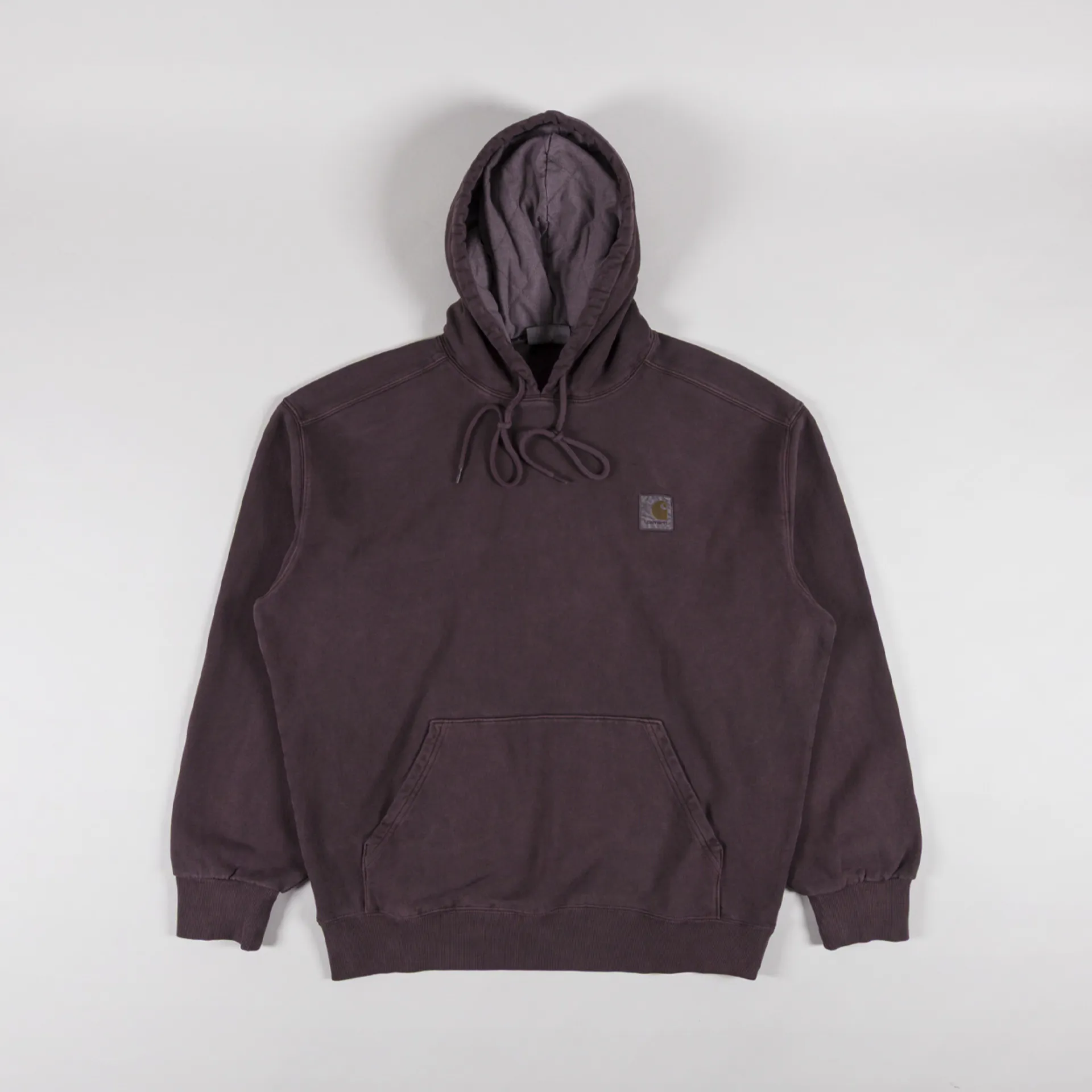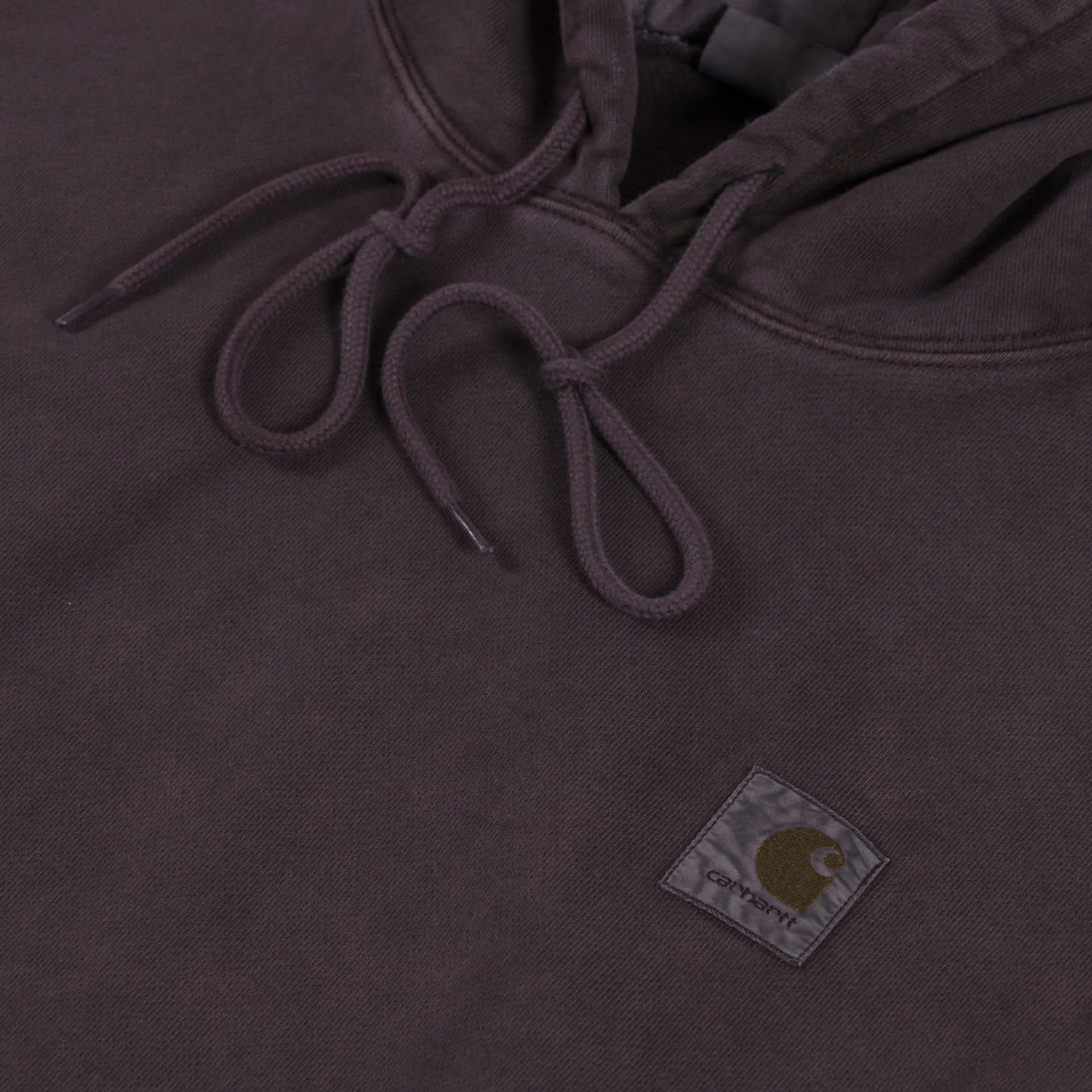 A pullover hoodie from Carhartt WIP made from a super soft and comfortable 100% cotton with a brushed fleece lining, ribbed cuffs and hem, kangaoo pocket and drawstring hood. It has a pigment dye and woven logo patch.