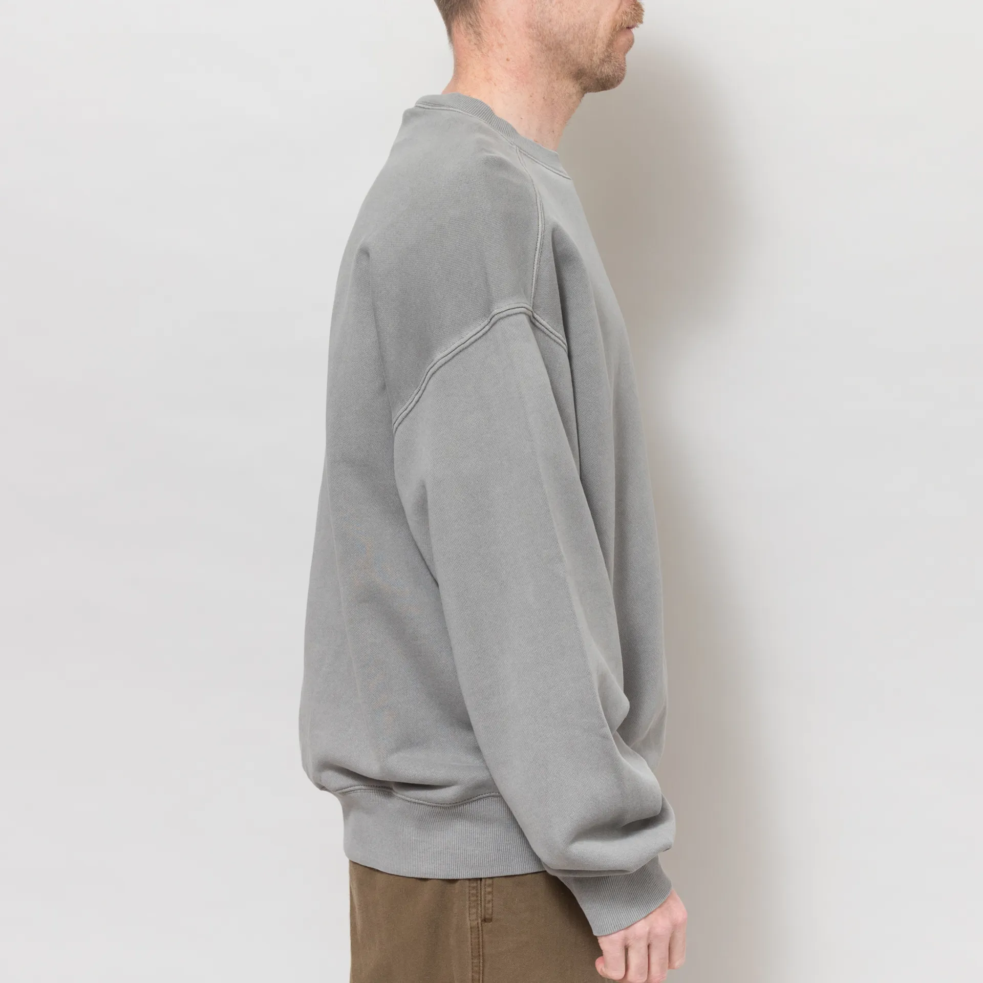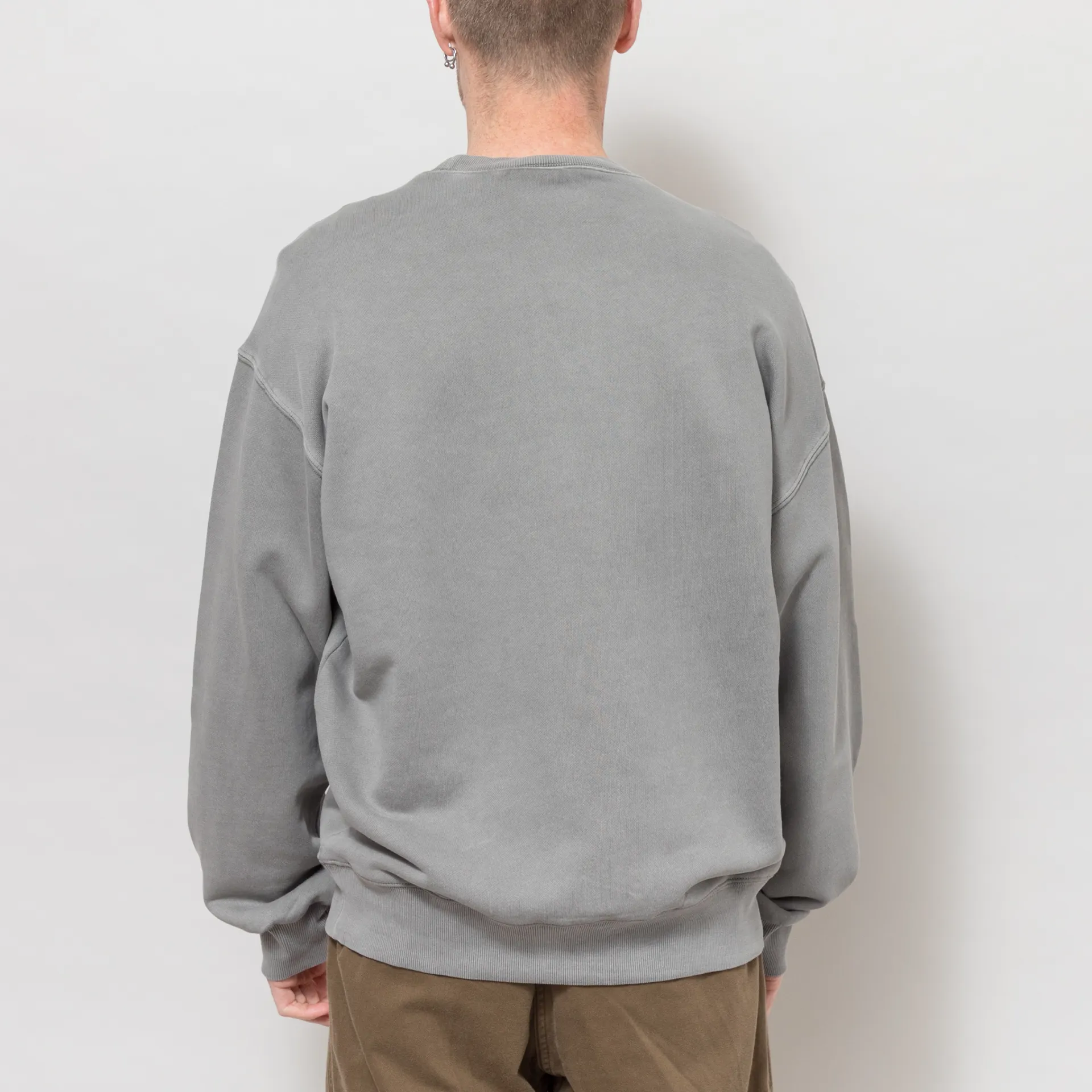 A sweatshirt from Carhartt WIP made from 100% cotton with a sporty loopback lining, ribbed crew neck, cuffs and hem and a woven logo patch to the chest. The silhouette has been given a pigment overdye for a lovely wash and colour.