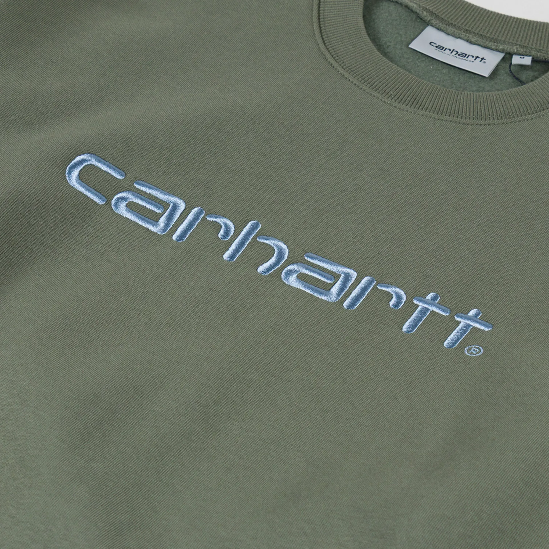 The Carhartt Sweat has been cut in a loose fit for a more laidback look, crafted from a soft and comfortable cotton-poly blend with a fleece-like backing. It features a ribbed crewneck, cuffs and hem, finished with the iconic Carhartt script logo to the chest.