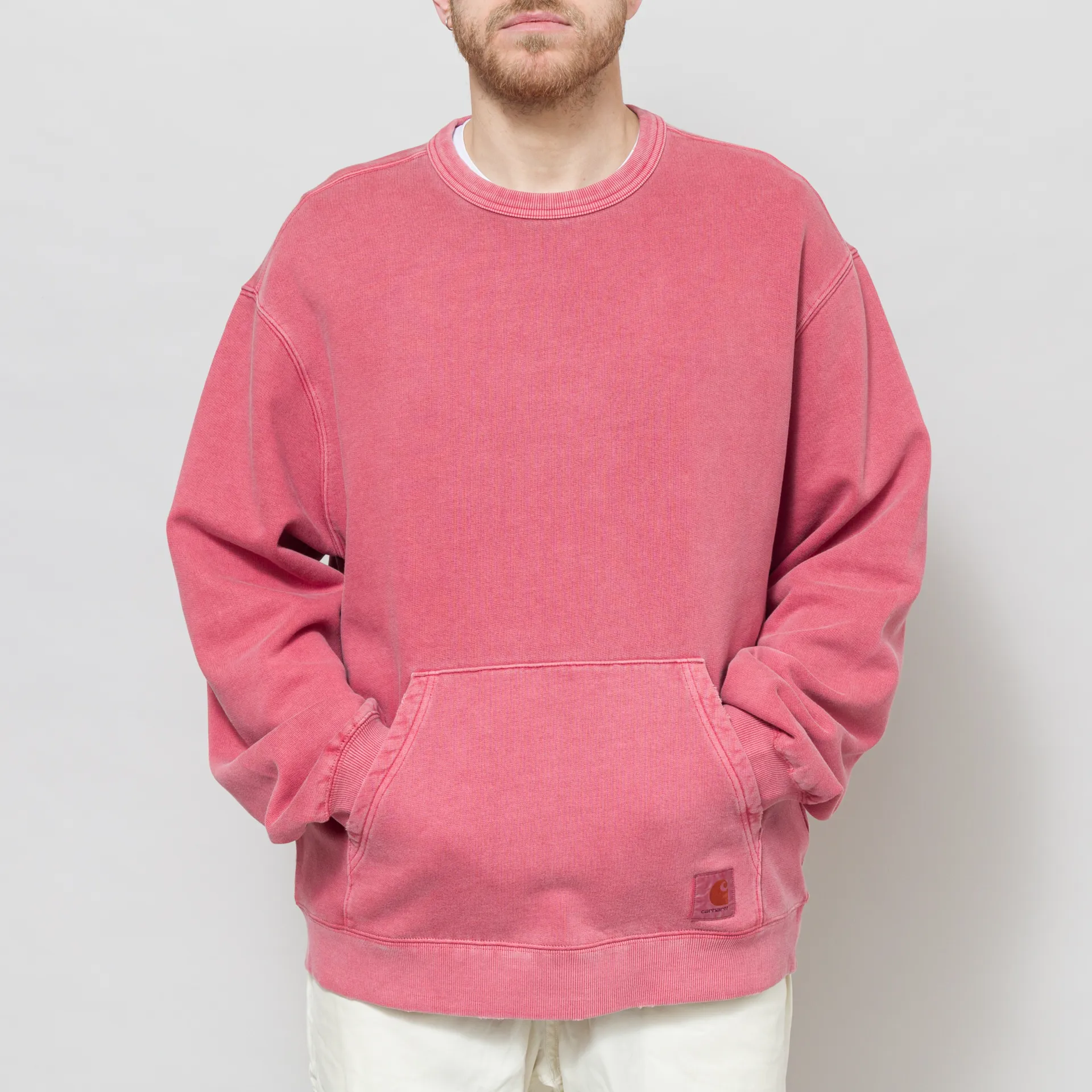 A crewneck from Carhartt WIP, constructedfrom a heavyweight, unbrushed cotton fabric that has undergone a grind wash, a process which results in a slightly distressed, worn-in finish.