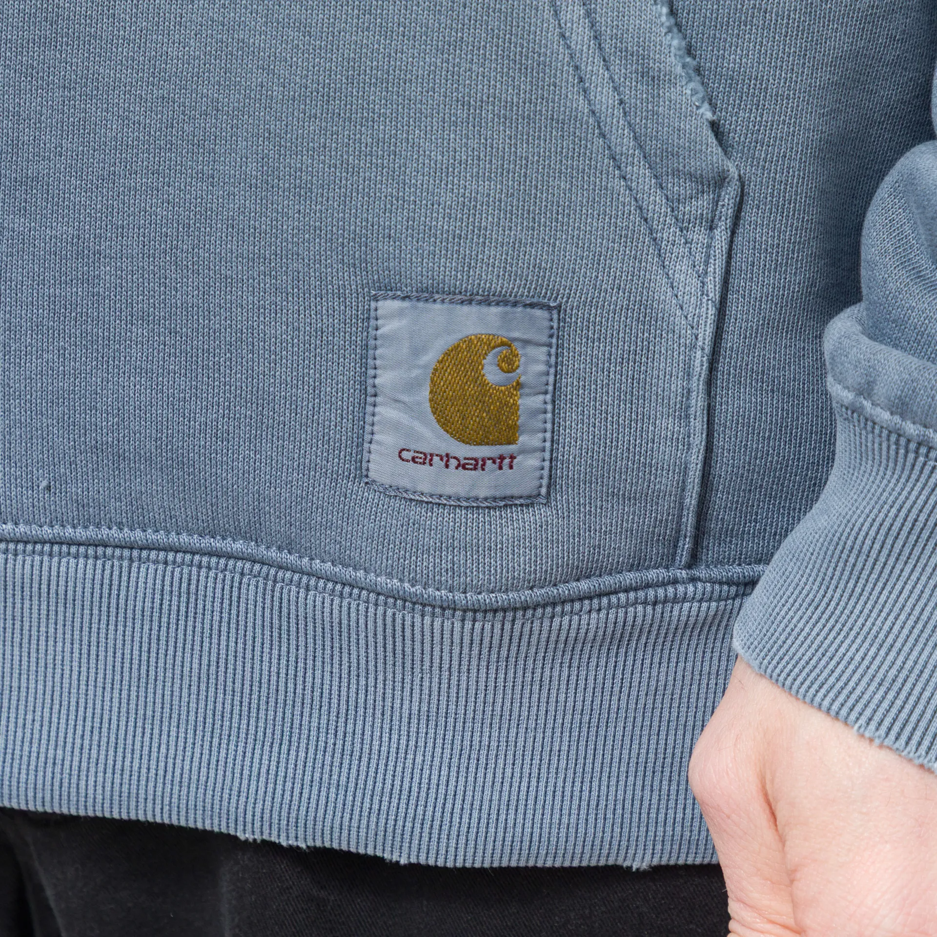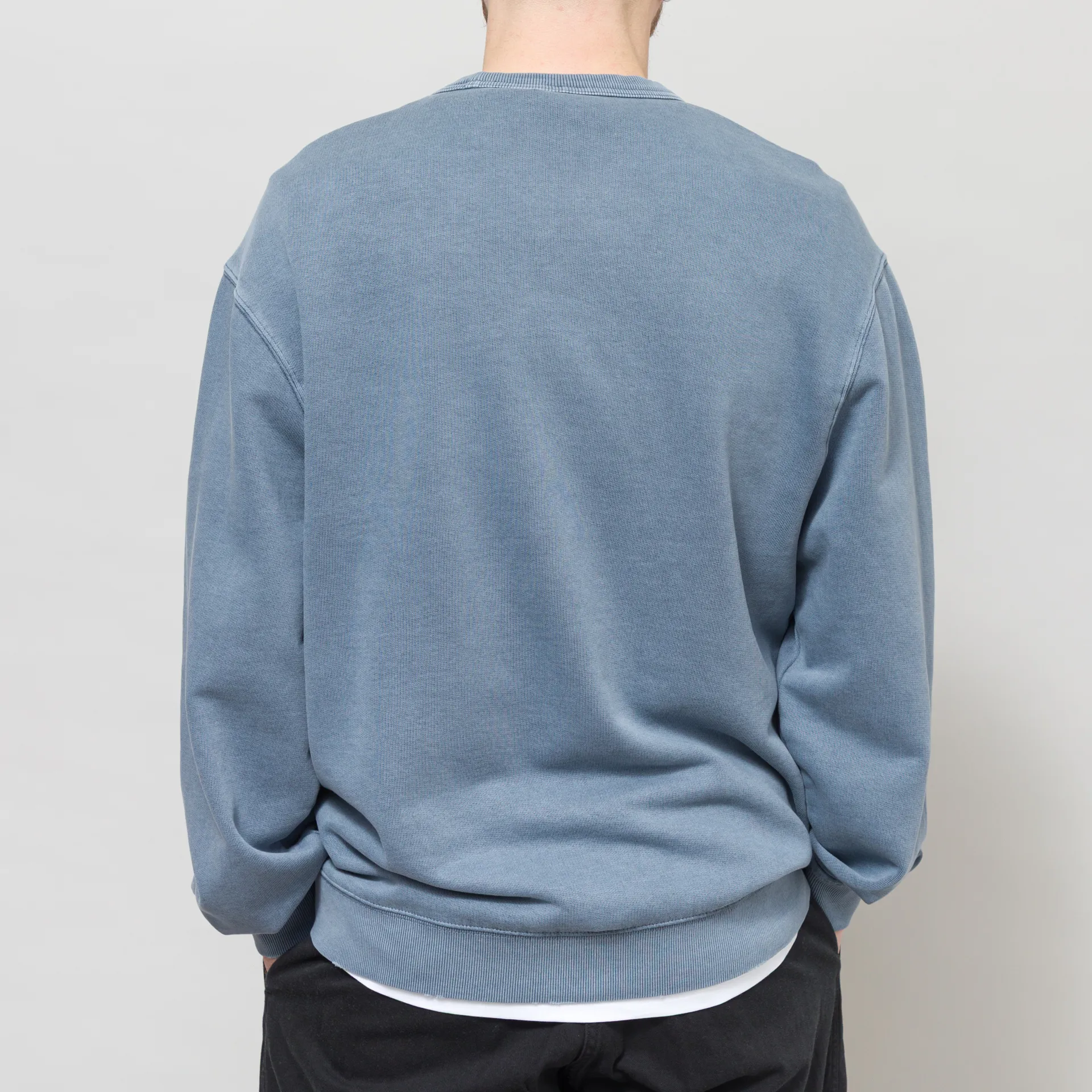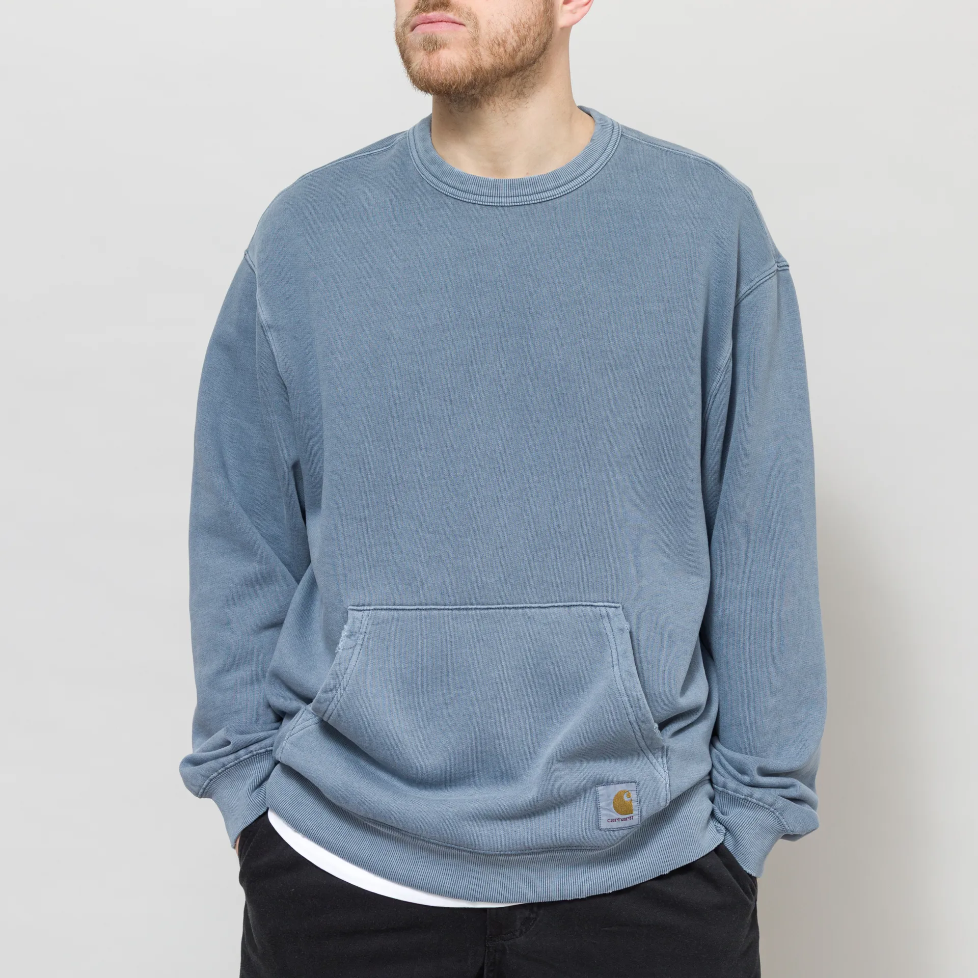 A crewneck from Carhartt WIP, constructedfrom a heavyweight, unbrushed cotton fabric that has undergone a grind wash, a process which results in a slightly distressed, worn-in finish.