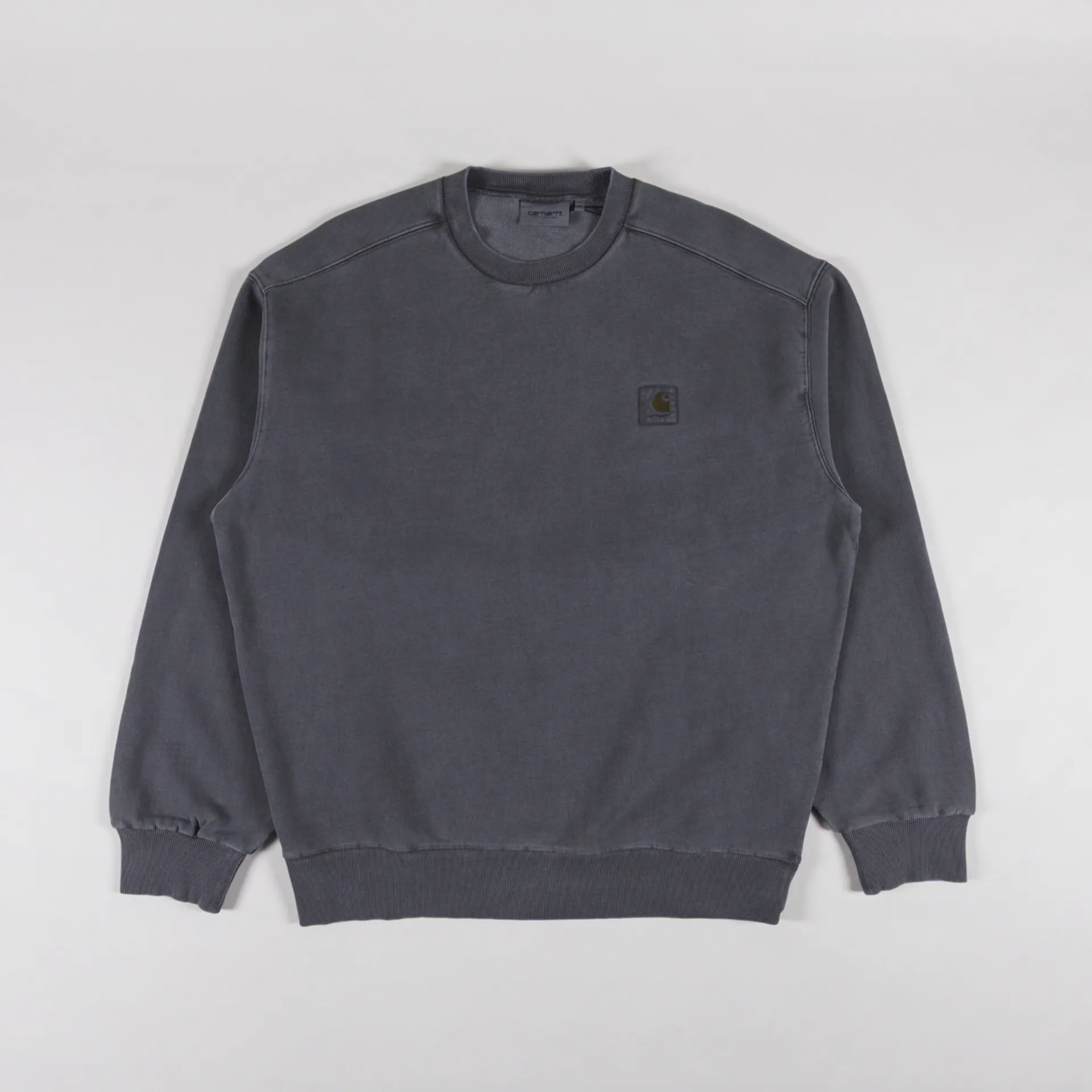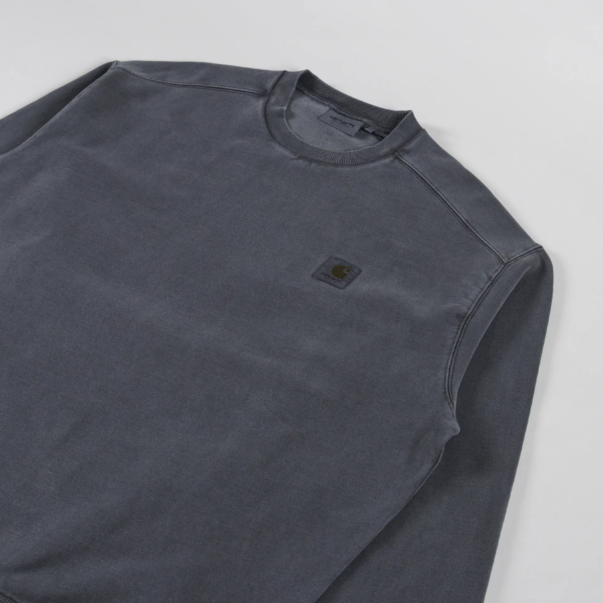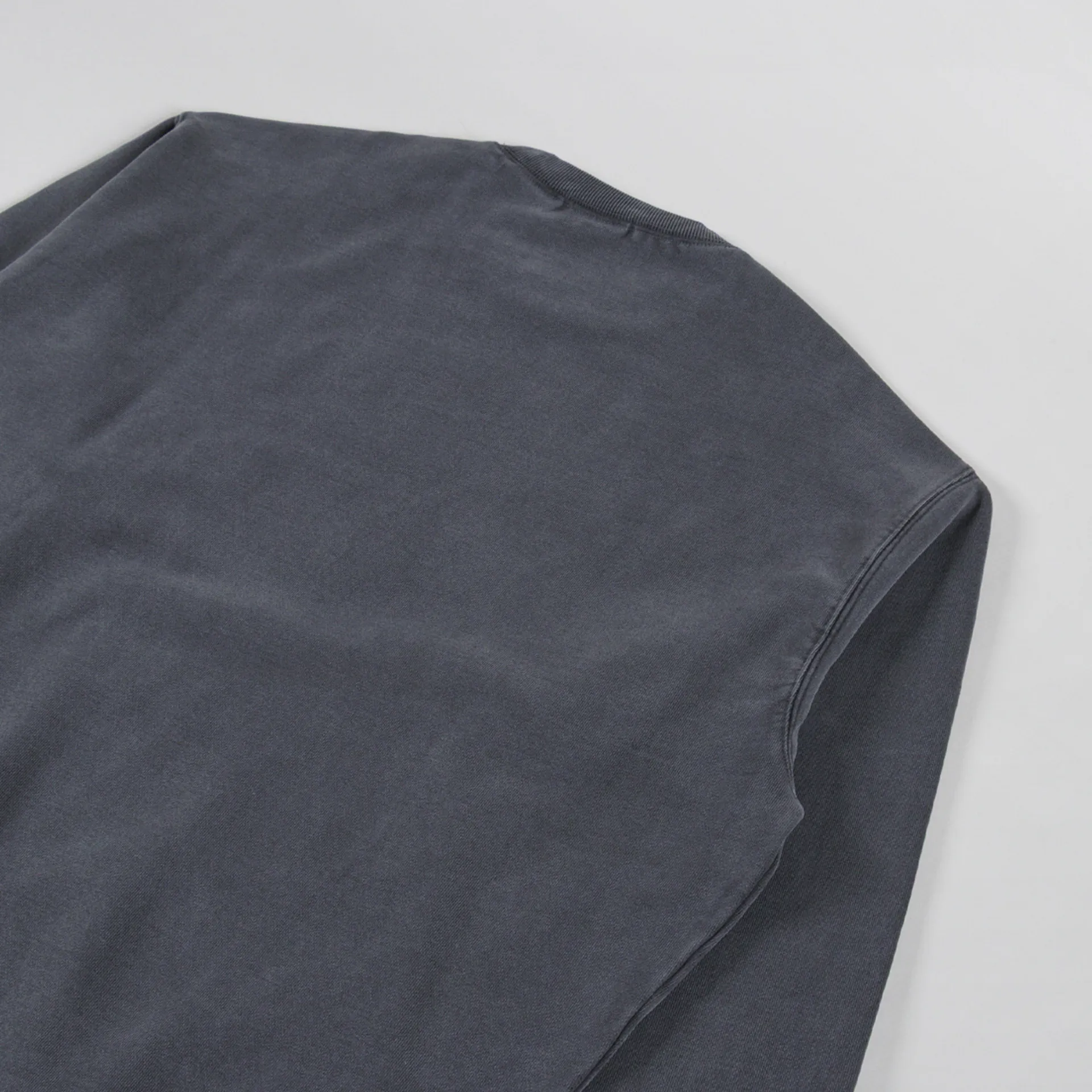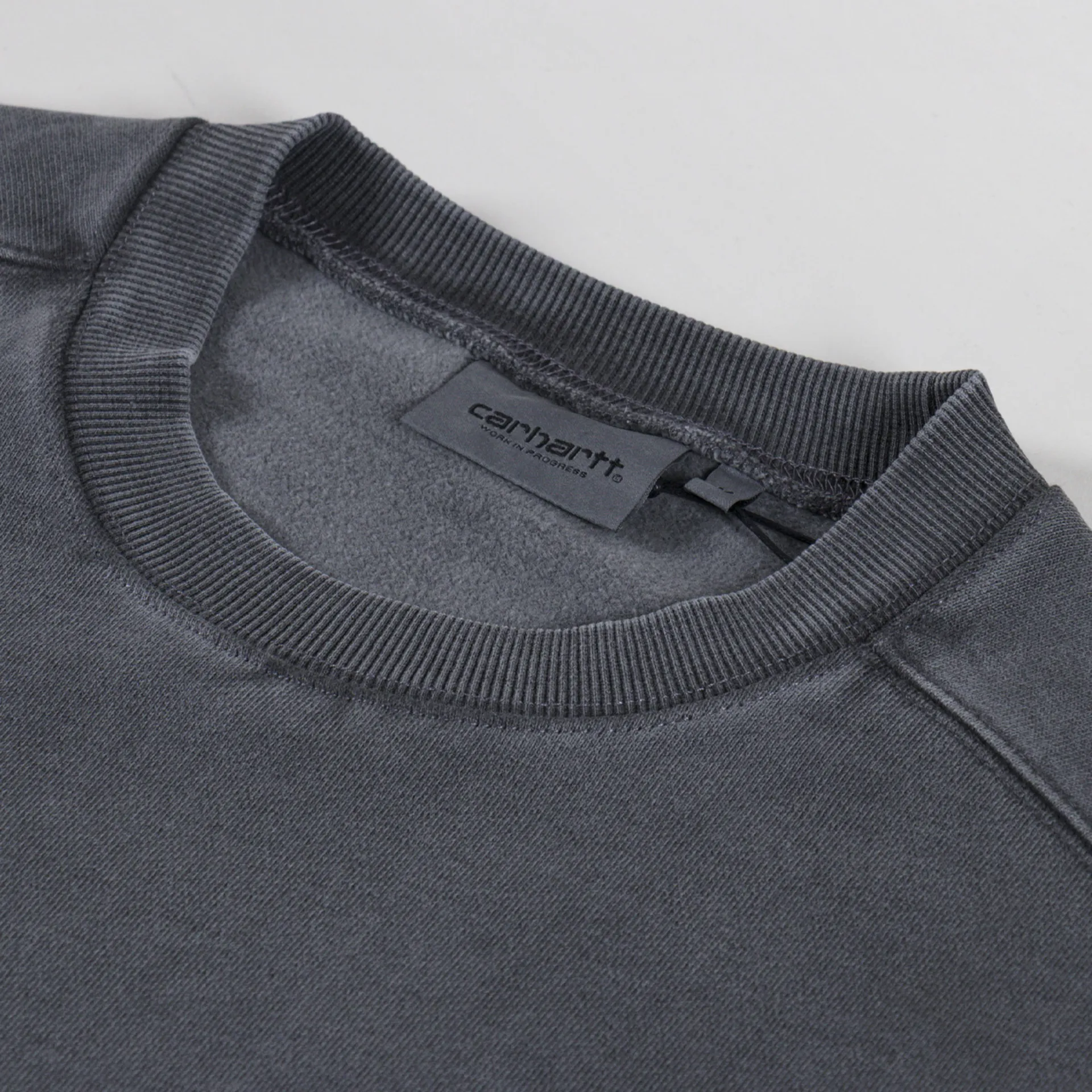 A sweatshirt from Carhartt WIP made from a super soft and comfortable 100% cotton with a brushed fleece lining, ribbed crew neck, cuffs and hem and a woven logo patch to the chest. The silhouette has been given a pigment overdye.
