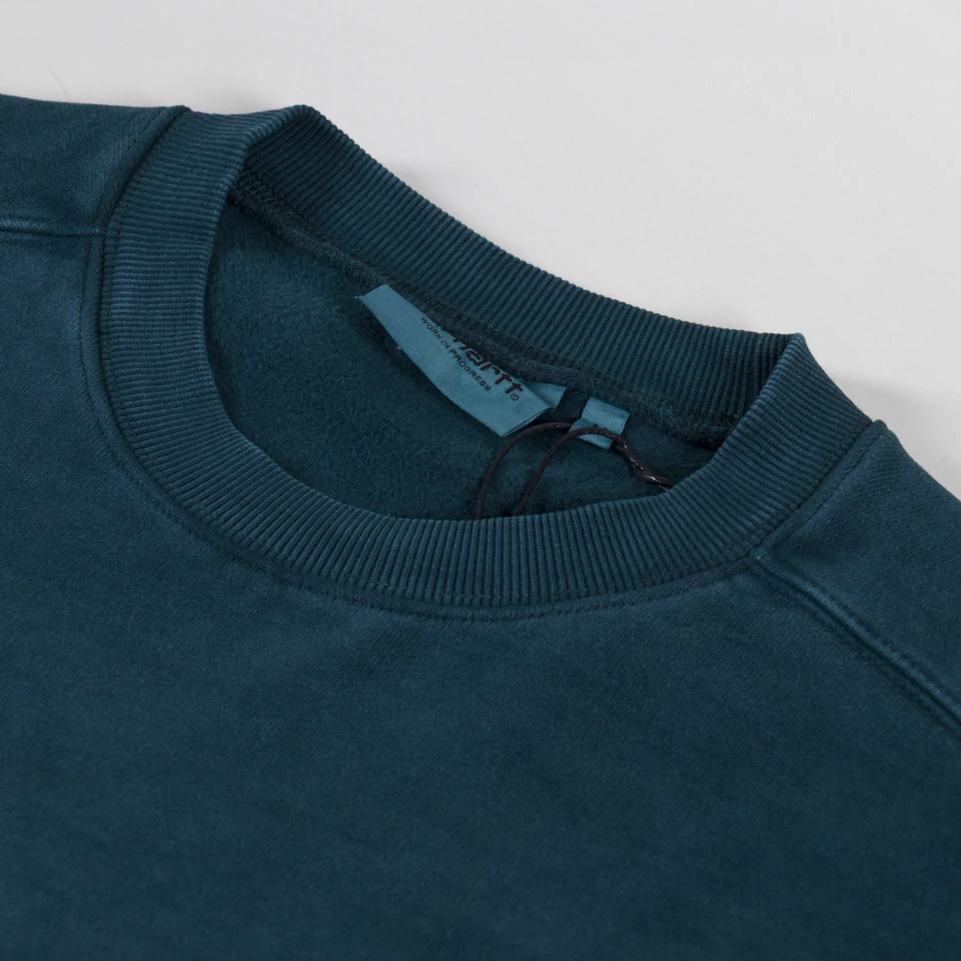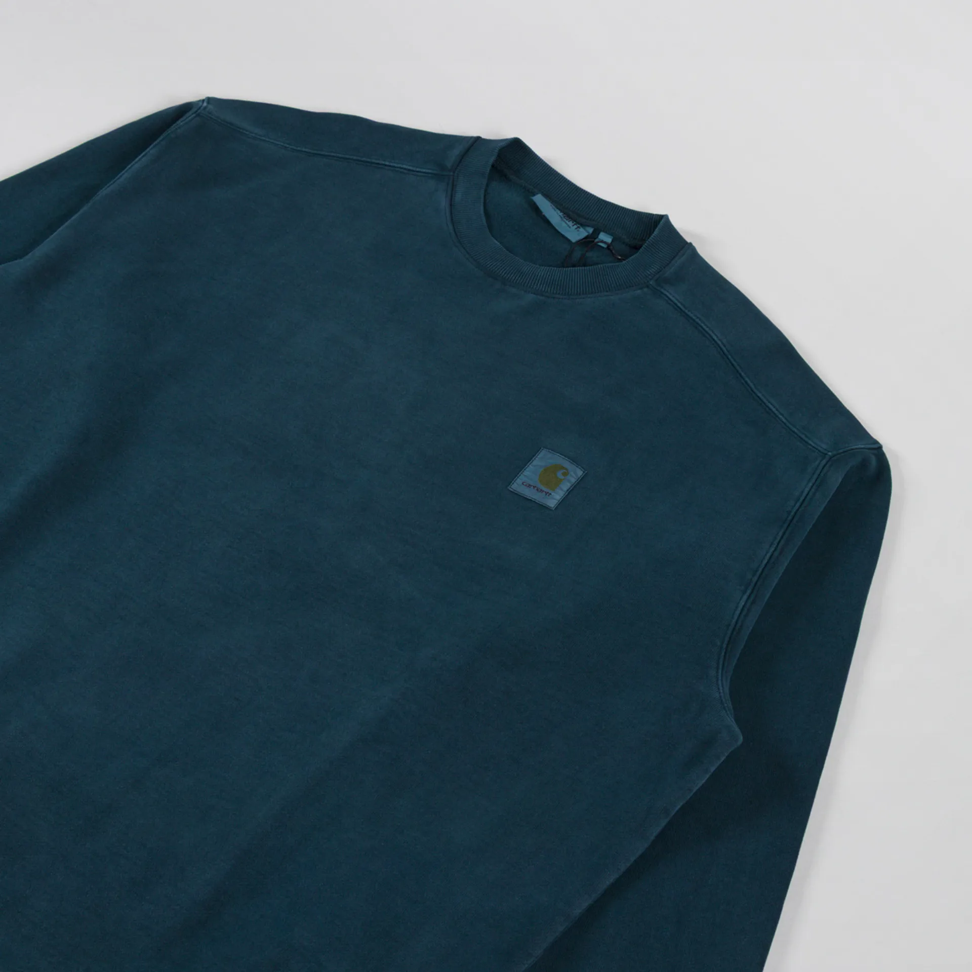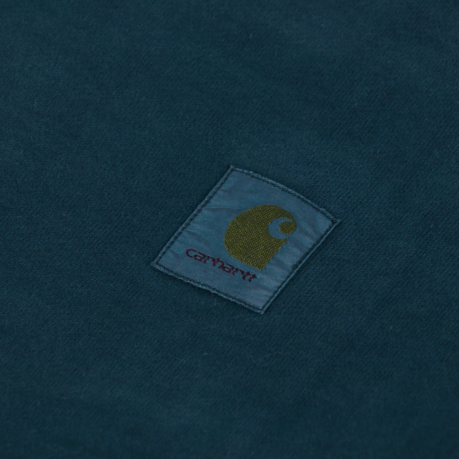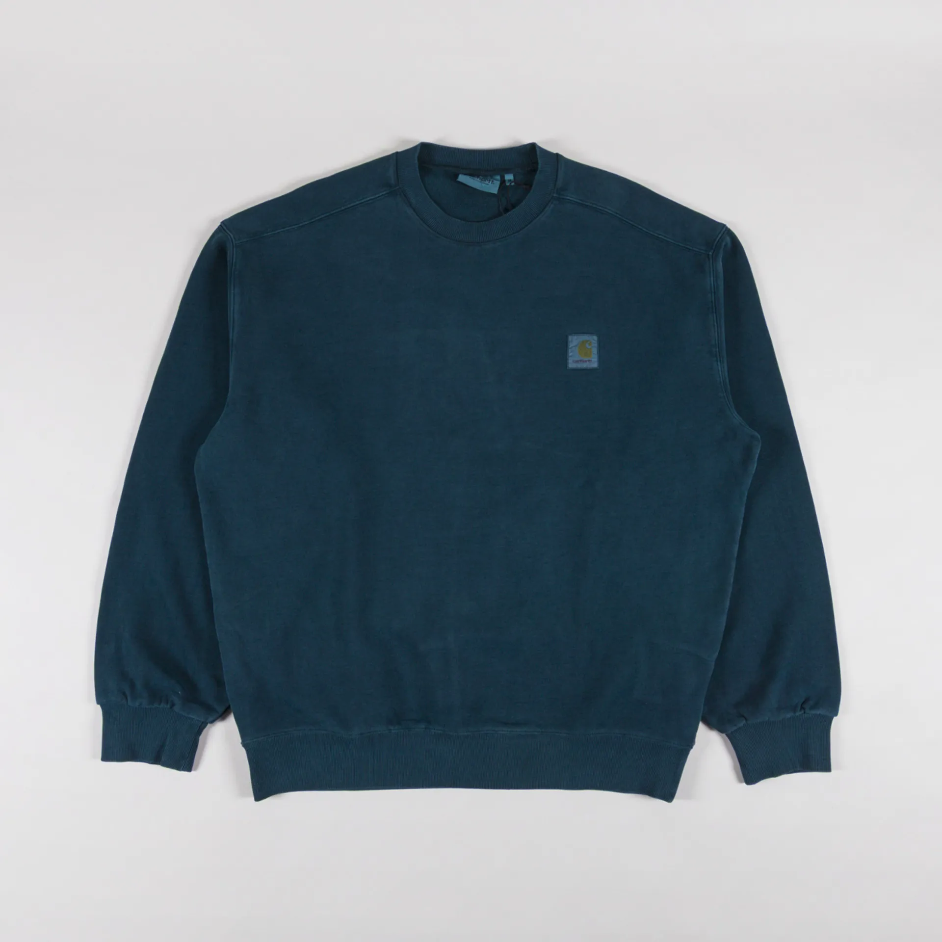 A sweatshirt from Carhartt WIP made from a super soft and comfortable 100% cotton with a brushed fleece lining, ribbed crew neck, cuffs and hem and a woven logo patch to the chest. The silhouette has been given a pigment overdye.