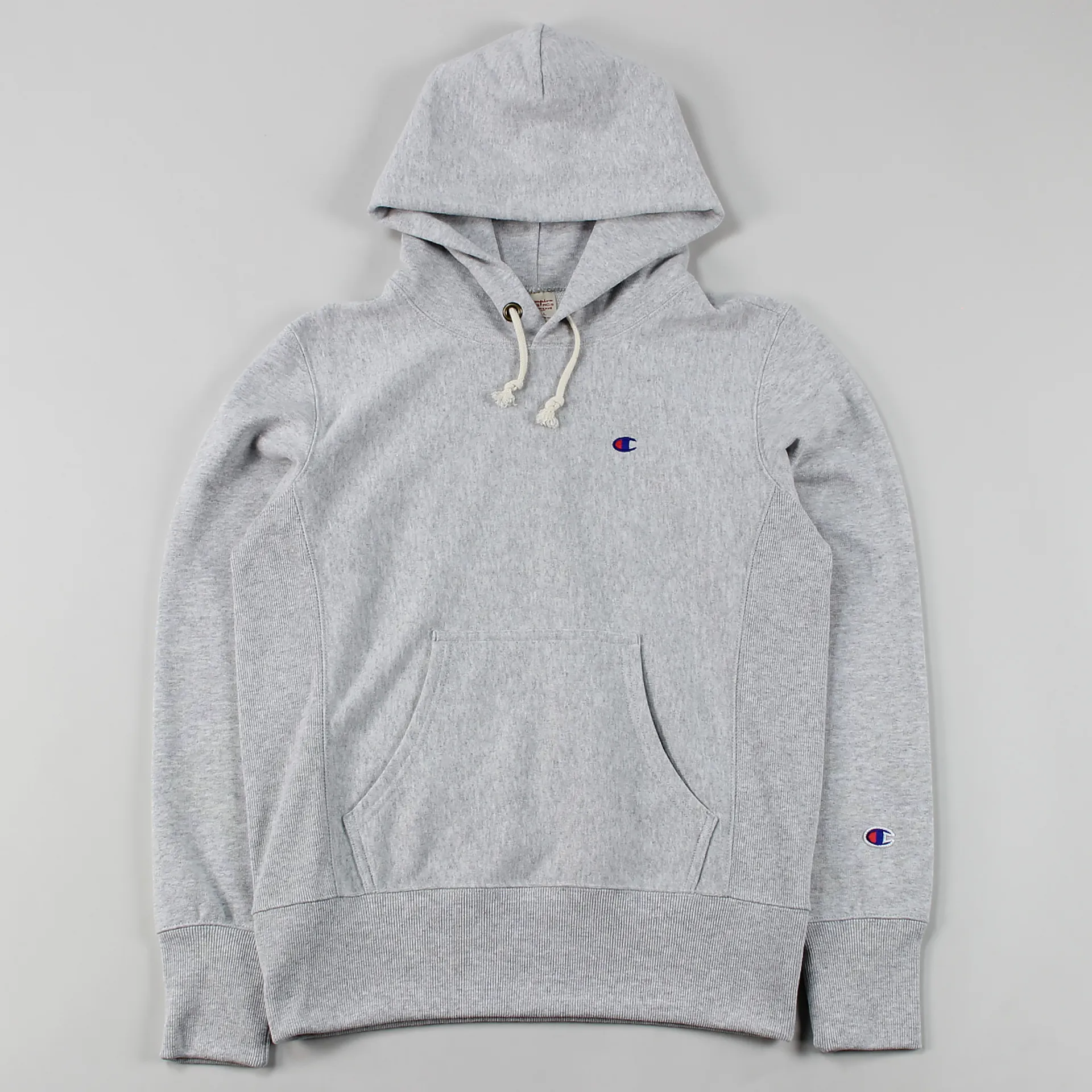 This is one of Champion's more understated designs, with small embroidered chest and sleeve logos. It is made from their heavy weight Reverse Weave fabric and features a kangaroo hand warmer pocket at the front. The hood is adjustable with metal eyelets and a contrasting drawstring.
