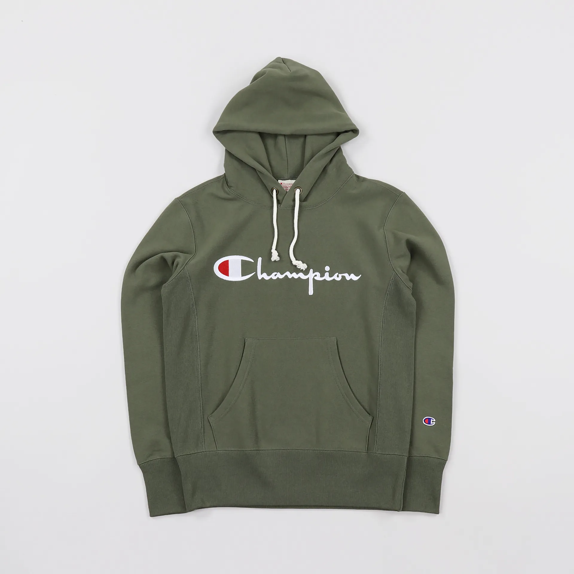 Champion Reverse Weave Script Logo Hooded Sweatshirt Dusty Olive