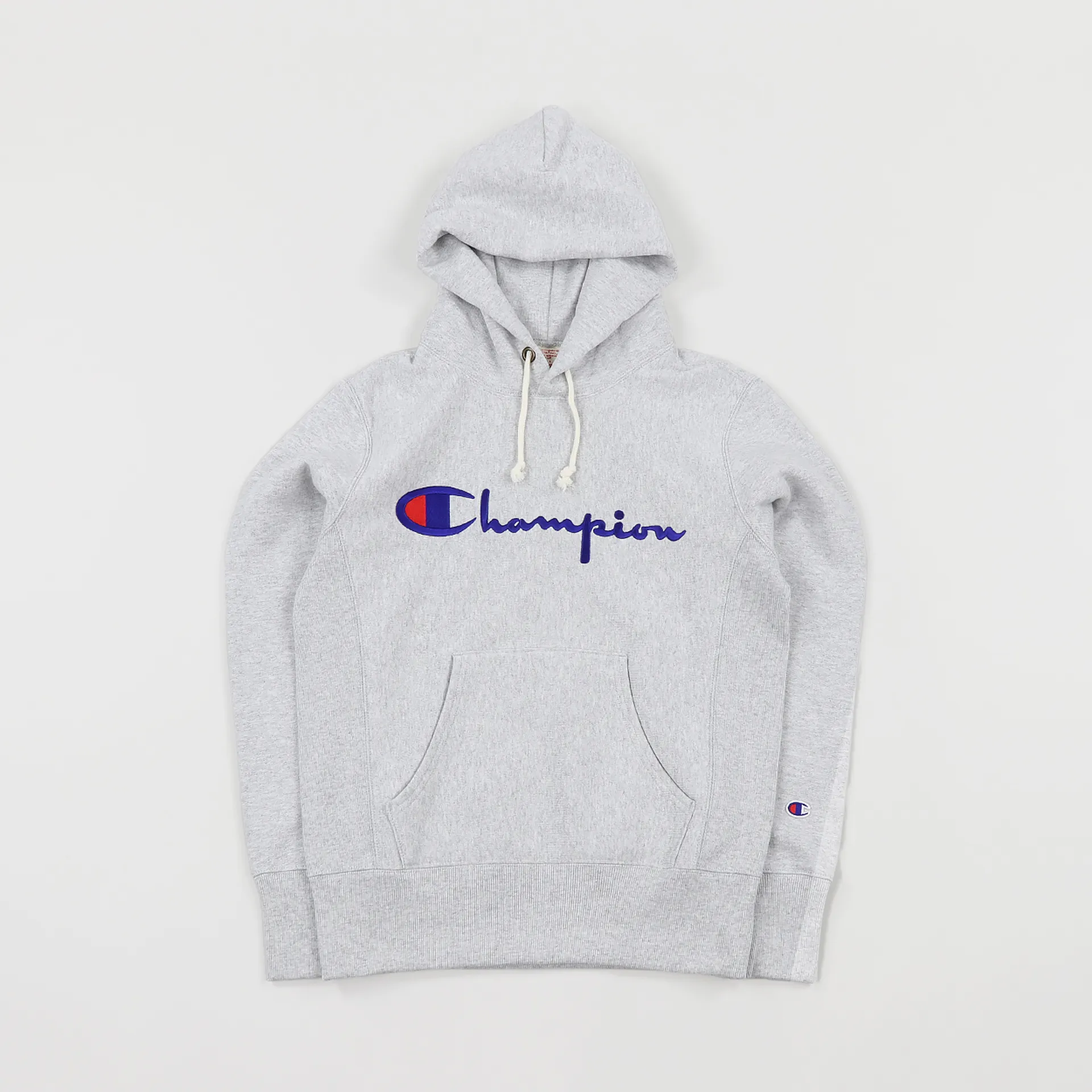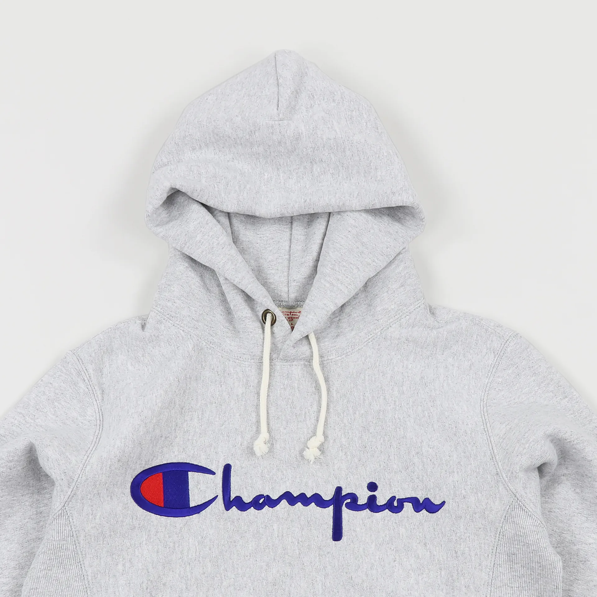 Champion Reverse Weave Winter Weight Script Hooded Sweatshirt Grey