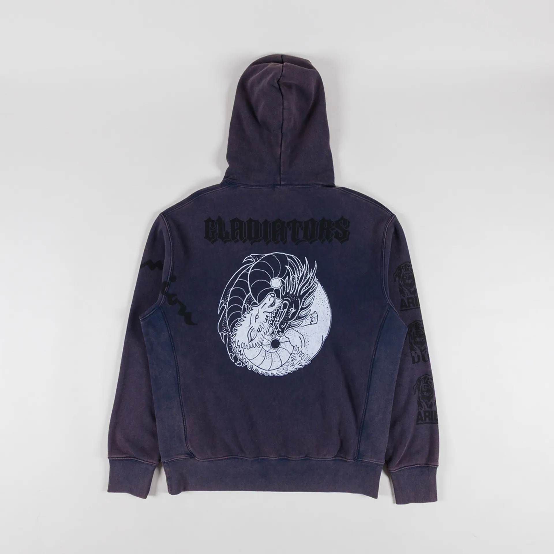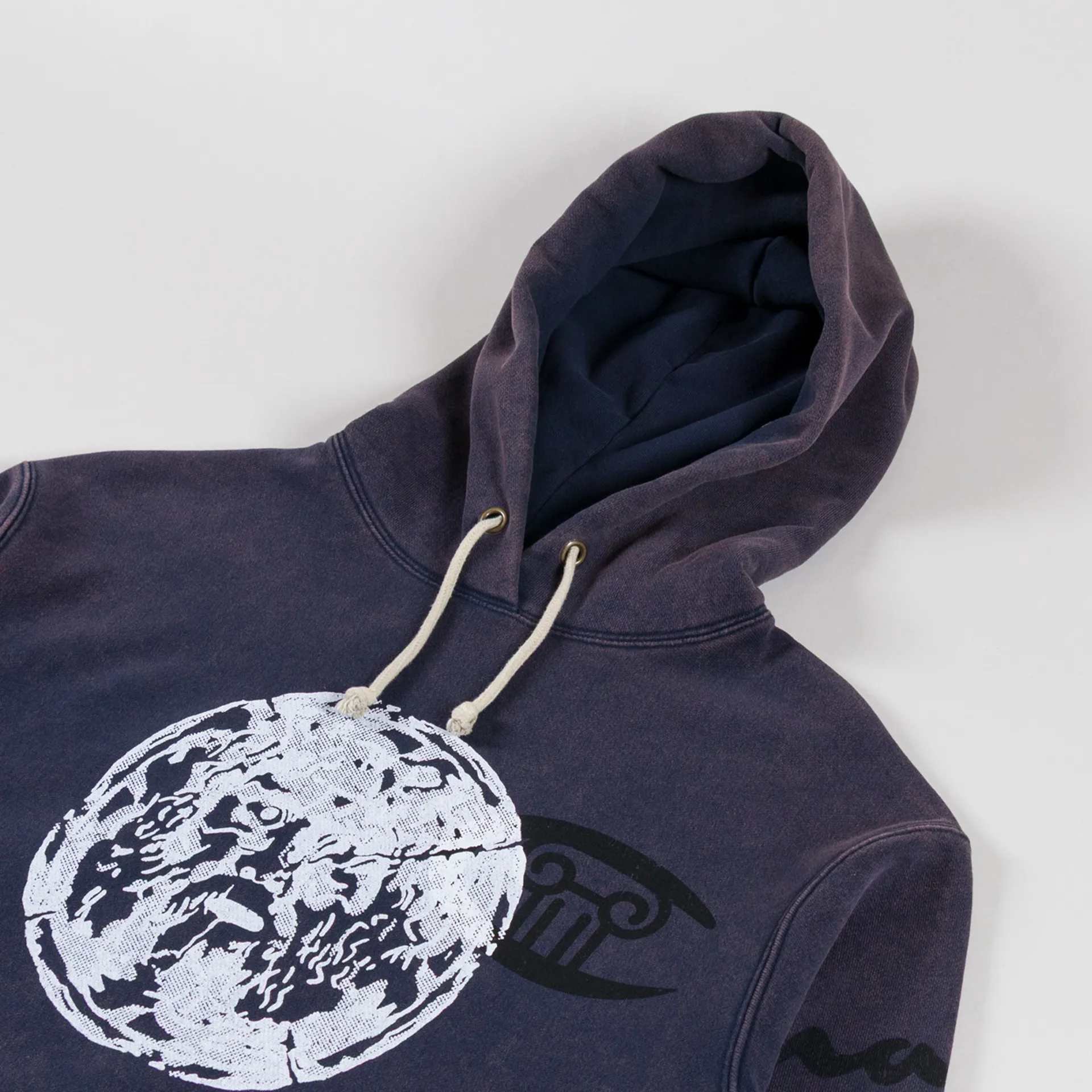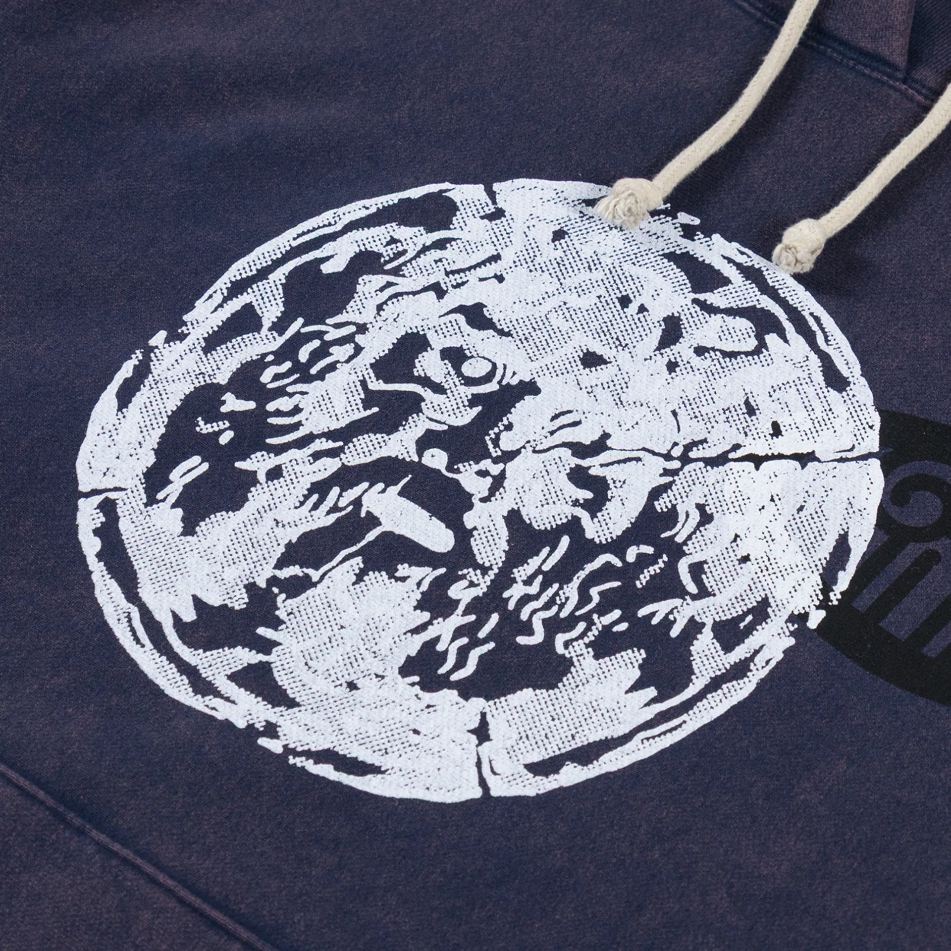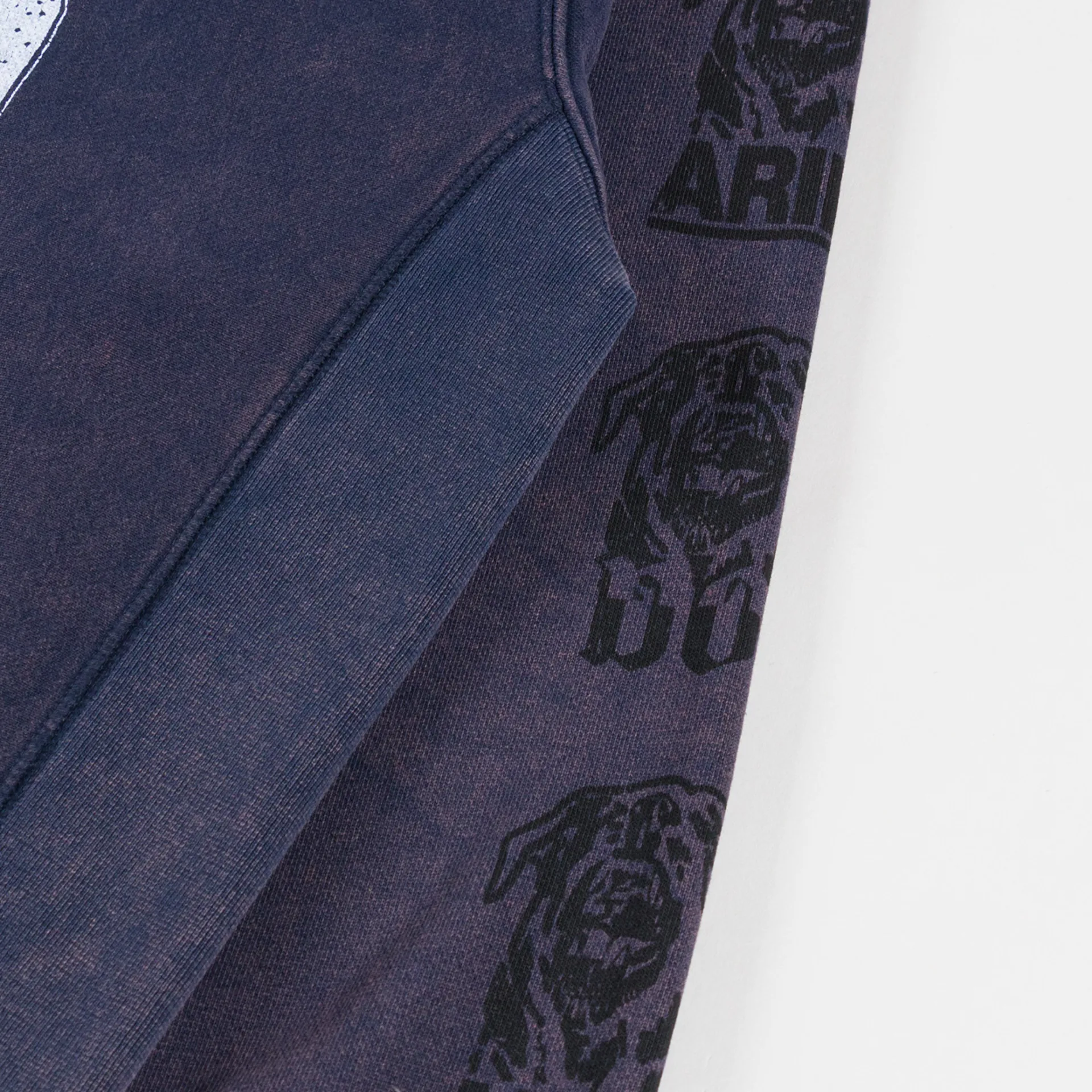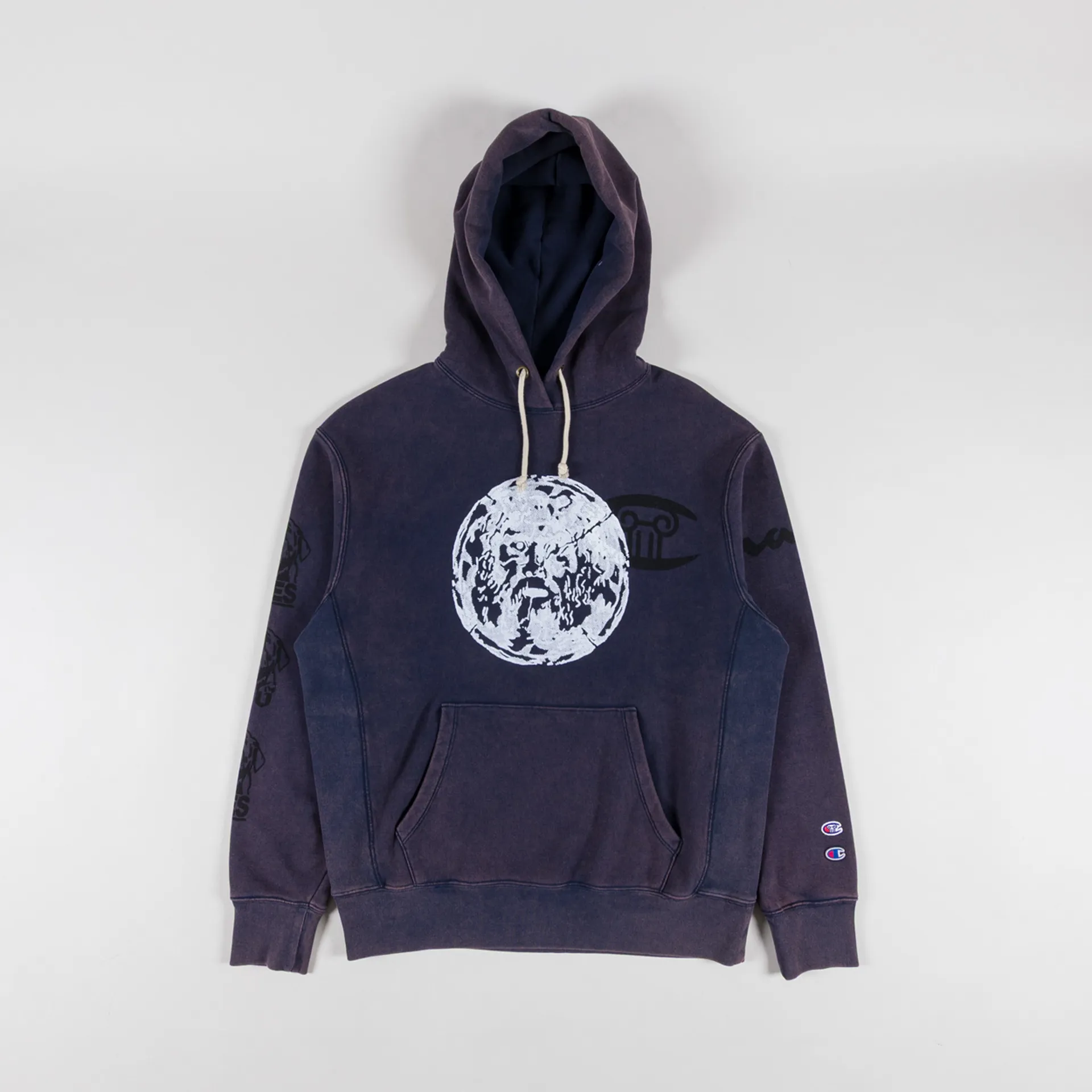 A hoodie from the collaboration of Champion x Aries, cut in a relaxed fit for a casual silhouette and constructed from a soft cotton stretch blend, garment-washed for a unique appearance. It features a large hood with adjustable drawstrings, a ribbed hem and cuffs, with a classic kangaroo pocket. The design is complete with various pieces of artwork by Aries, and the signature Champion logo patch on the sleeve.