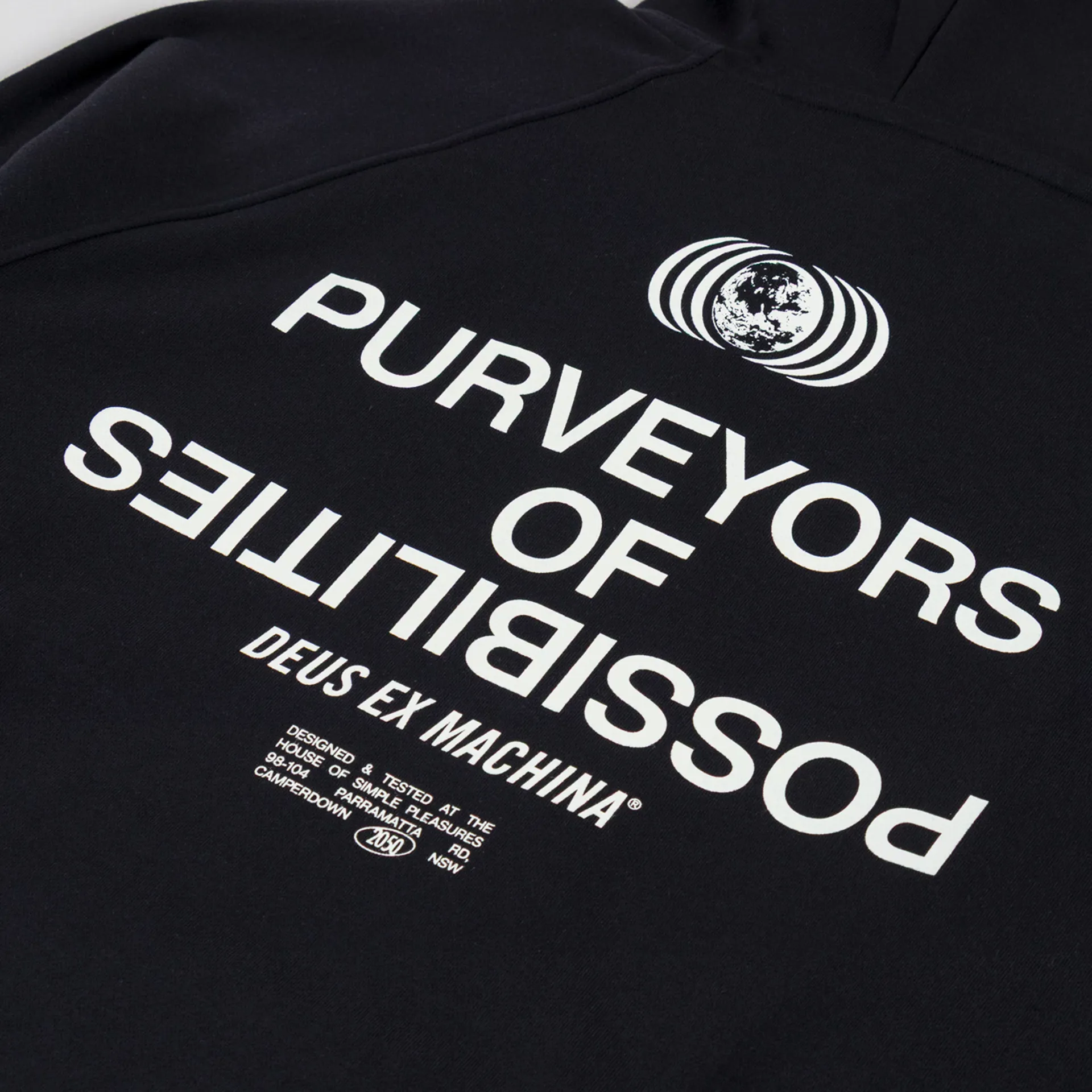 A pullover from Deus, cut in a loose fit for a laidback silhouette and constructed from a soft cotton blend with nylon panels at the elbows. It has been garment-washed for a softer hand feel and has a fleece-back lining for comfort. It features a classic drawstring hood, with a kangaroo pocket, ribbed hem and cuffs. The design is complete with some cool graphic prints at the chest and back.
