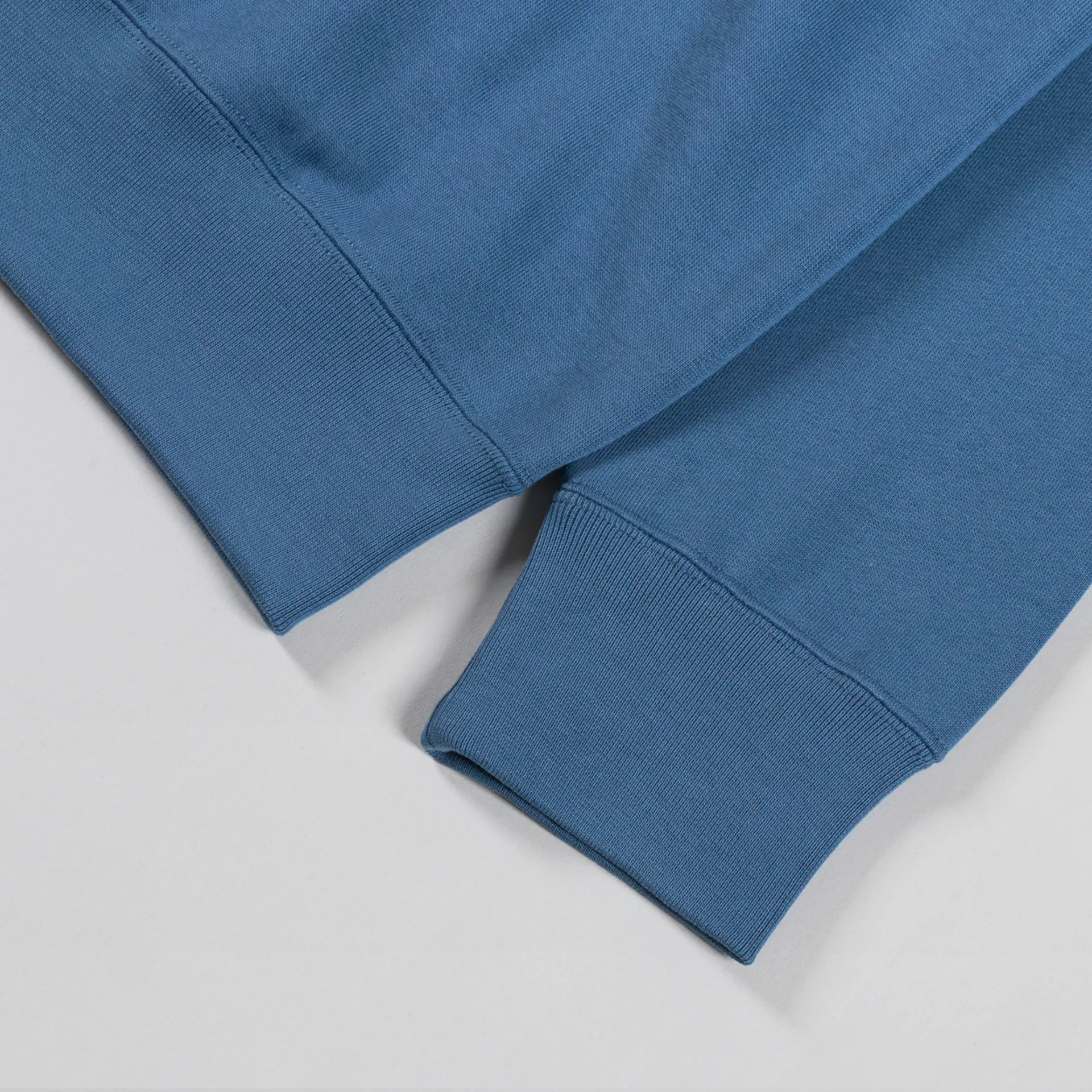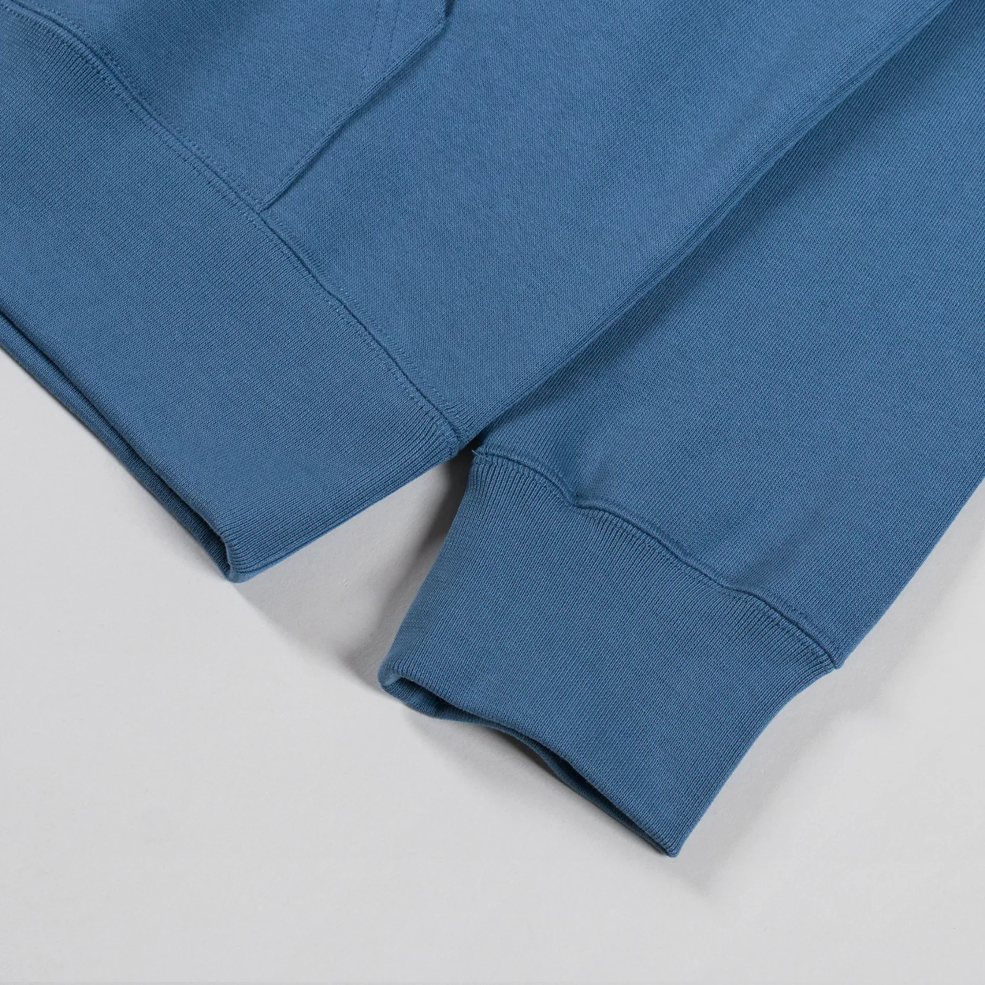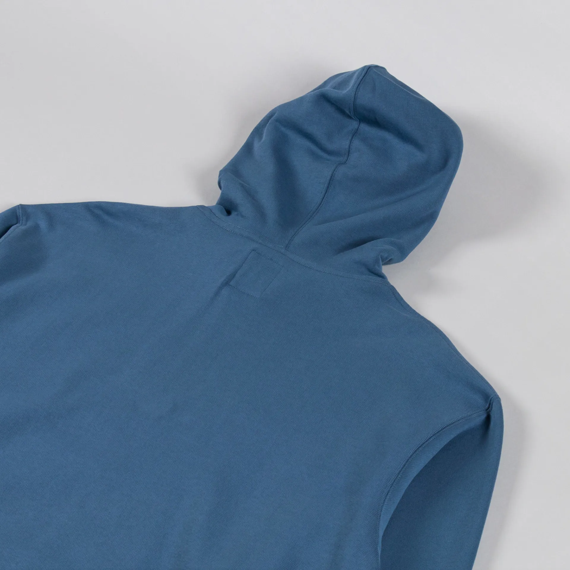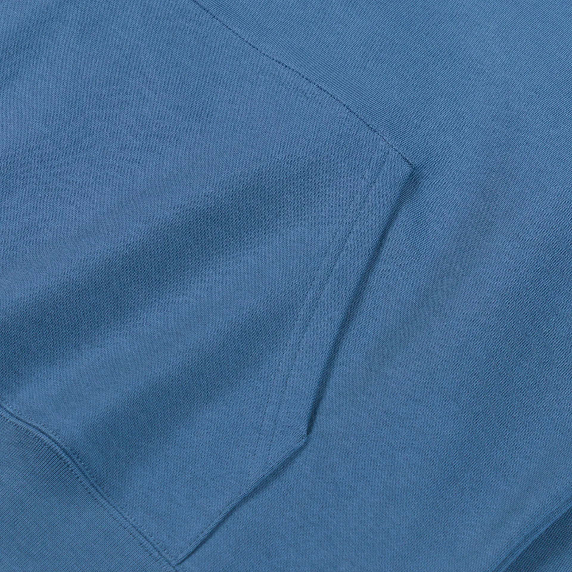 A loose fitting hoodie from Double A, constructed from 100% organic cotton with a fleece-back lining for comfort. It features a drawstring hood, a kangaroo pocket, with a ribbed hem and cuffs. Finished with a large Double A logo printed across the front.