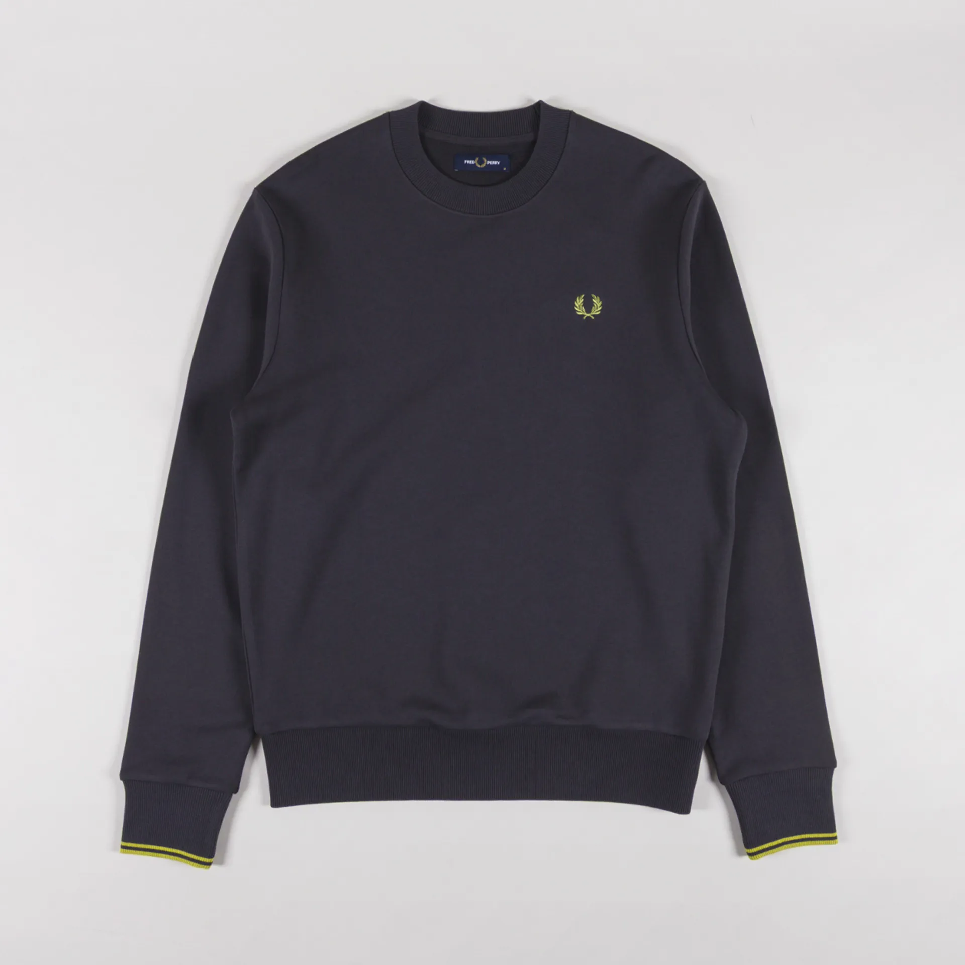 Fred Perry Crew Neck Sweatshirt Grey Tennis Ball Yellow
