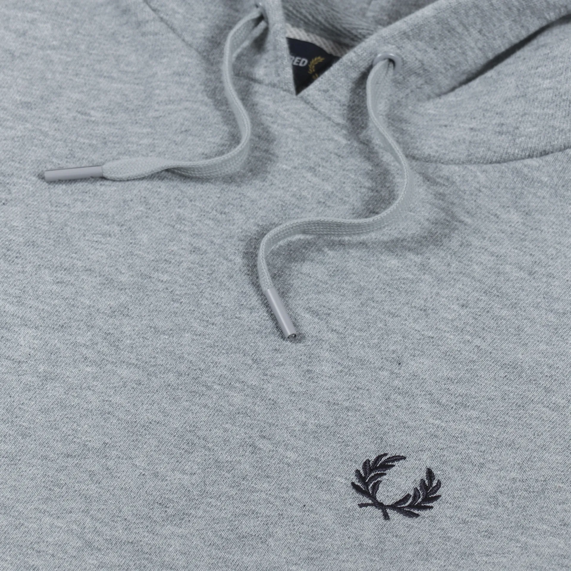 A pullover hoodie from Fred Perry made from a comfortable 100% cotton with a loopback lining, a ribbed hem and cuffs, kangaroo pocket and drawstring hood. It has an embroidered chest logo and logo tape to the shoulders.