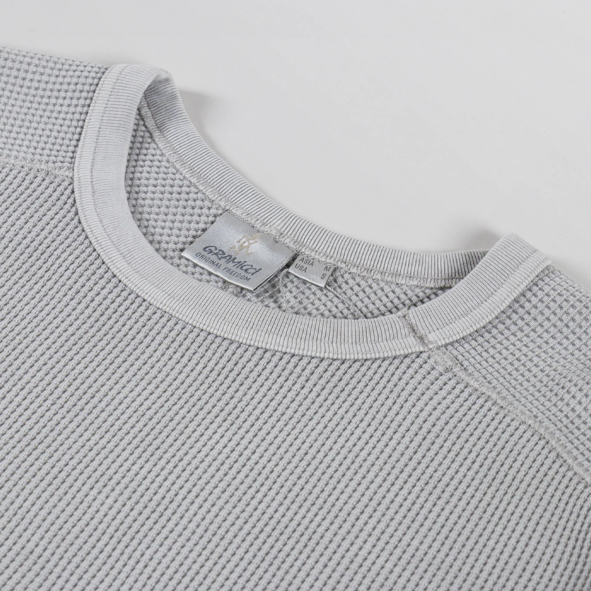 A waffle knit crewneck from Gramicci, constructed from soft 100% cotton and cut in a regular fit for everyday comfort. Featuring a ribbed crewneck, hem and cuffs, with raglan sleeves for freedom of movement and a tonal embroidered logo at the hem.