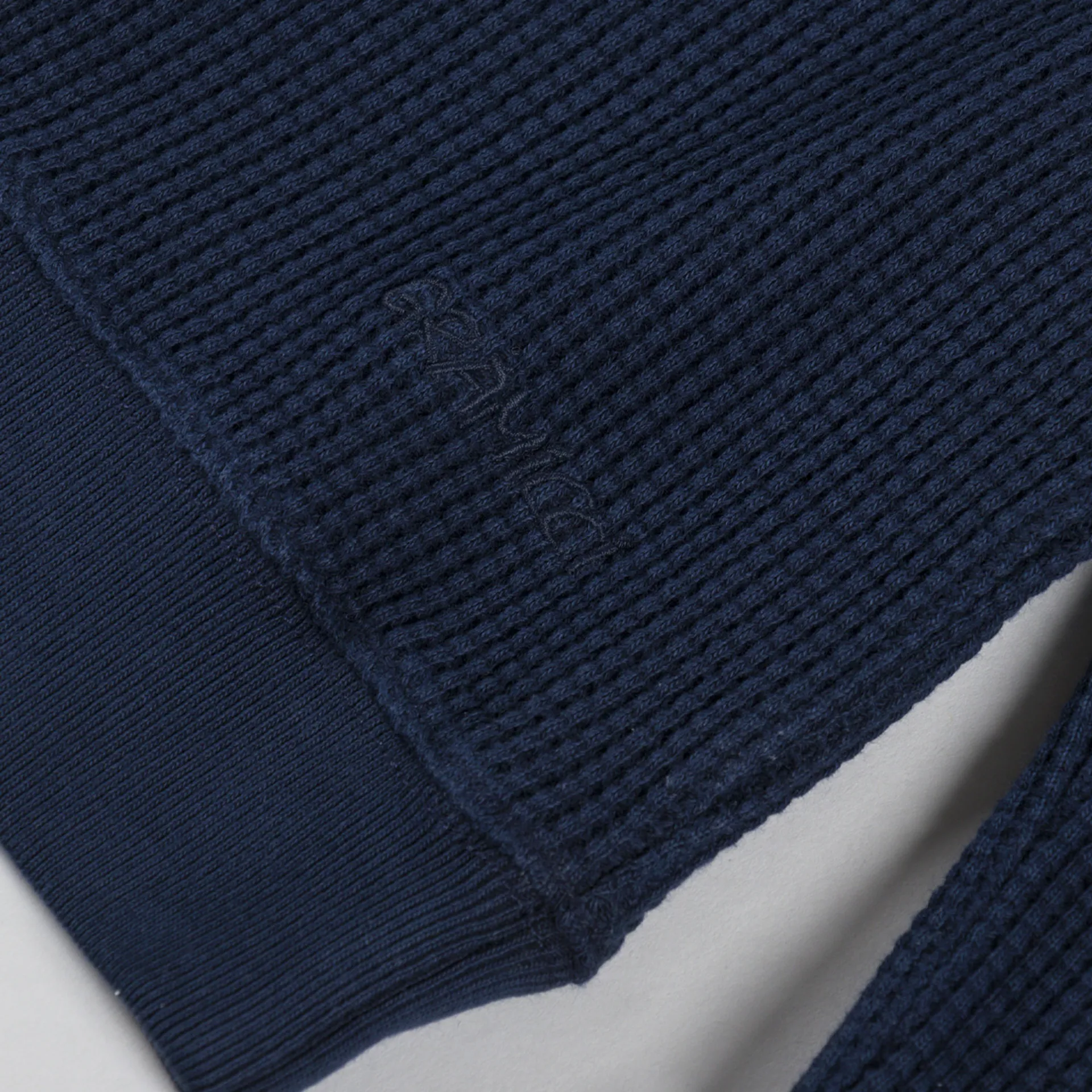 A waffle knit crewneck from Gramicci, constructed from soft 100% cotton and cut in a regular fit for everyday comfort. Featuring a ribbed crewneck, hem and cuffs, with raglan sleeves for freedom of movement and a tonal embroidered logo at the hem.