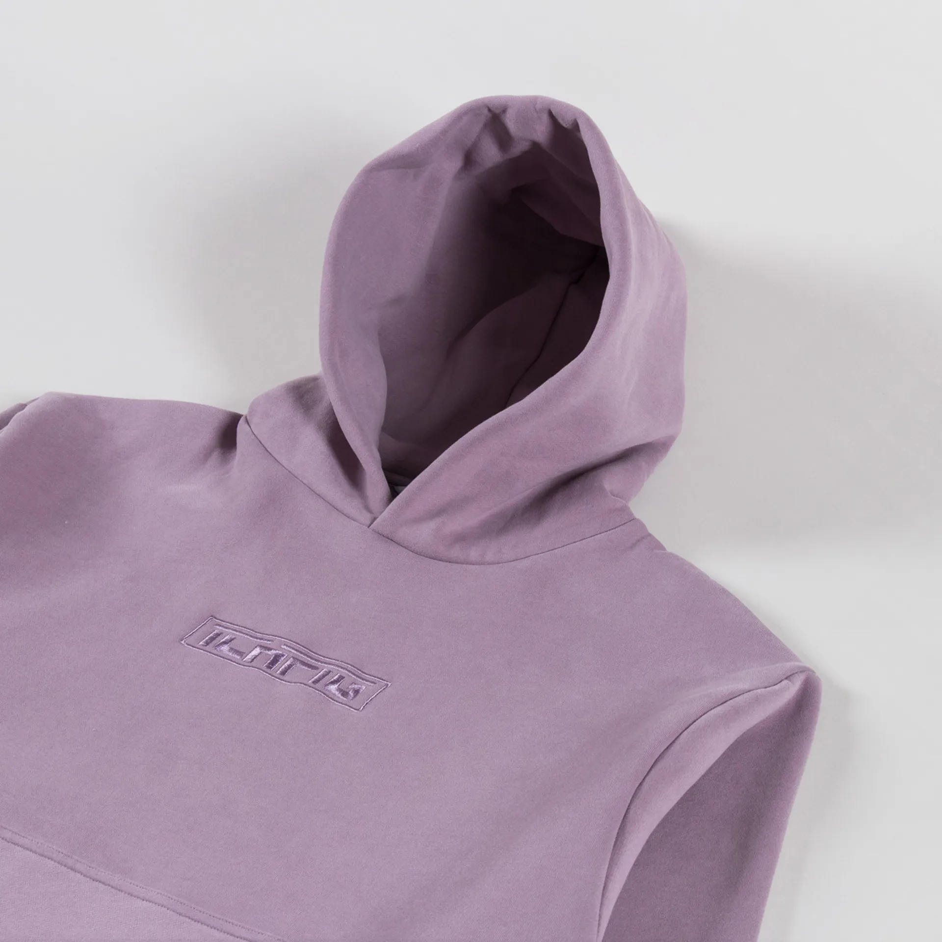 A boxy hoodie from ICHPIG, constructed from 360gsm brushed poly-cotton with a fleece-back lining and super soft hand feel.