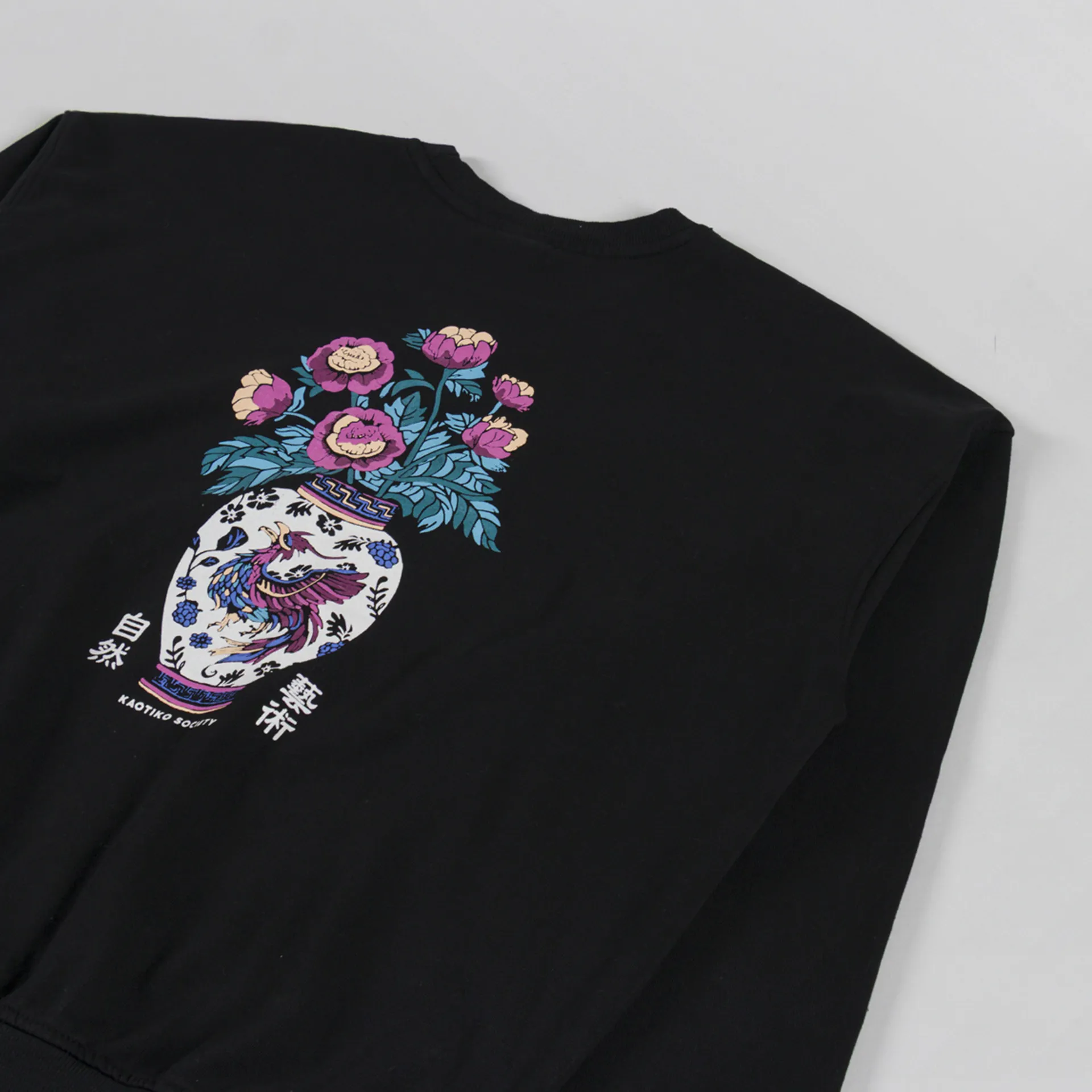 A boxy sweatshirt from Kaotiko, constructed from cotton with a fleece-back lining for comfort. It features a ribbed crewneck, hem and cuffs, with some awesome graphics to the chest and back.
