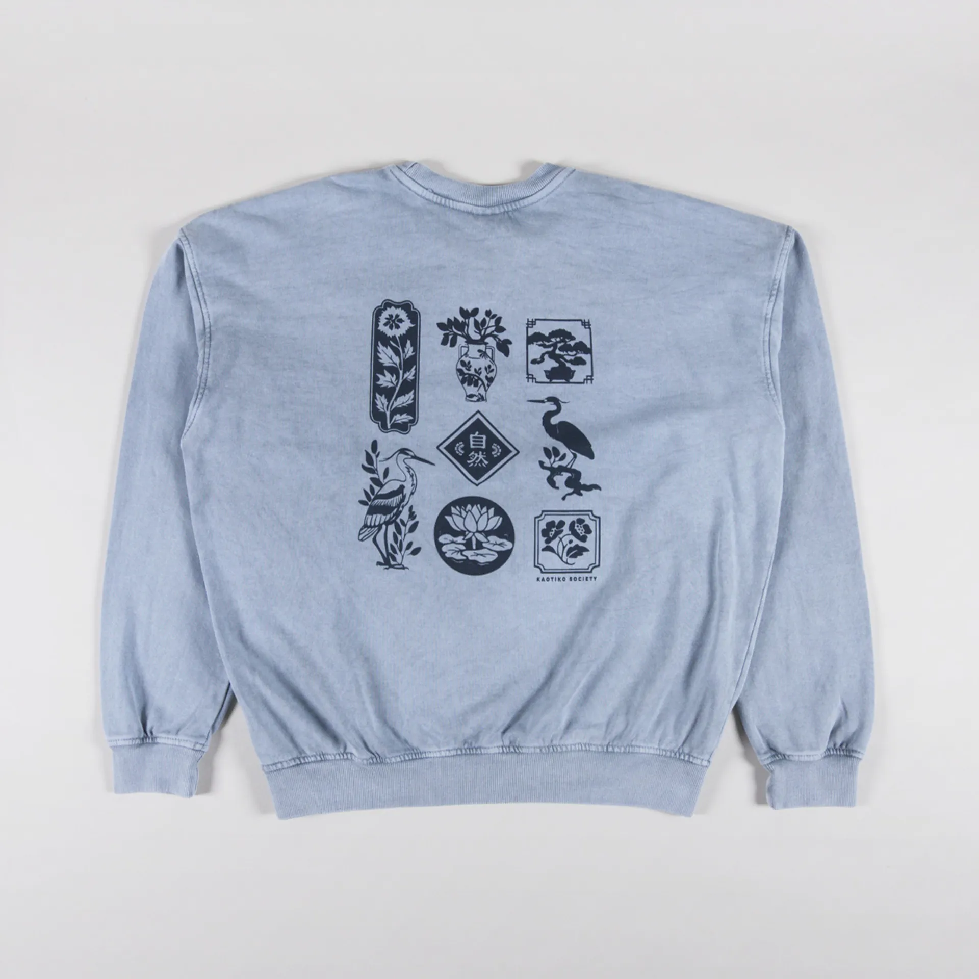 A boxy sweatshirt from Kaotiko, constructed from cotton that has been garment-washed for a softer hand feel and unique appearance. It features a ribbed crewneck, hem and cuffs, with some awesome graphics to the chest and back.