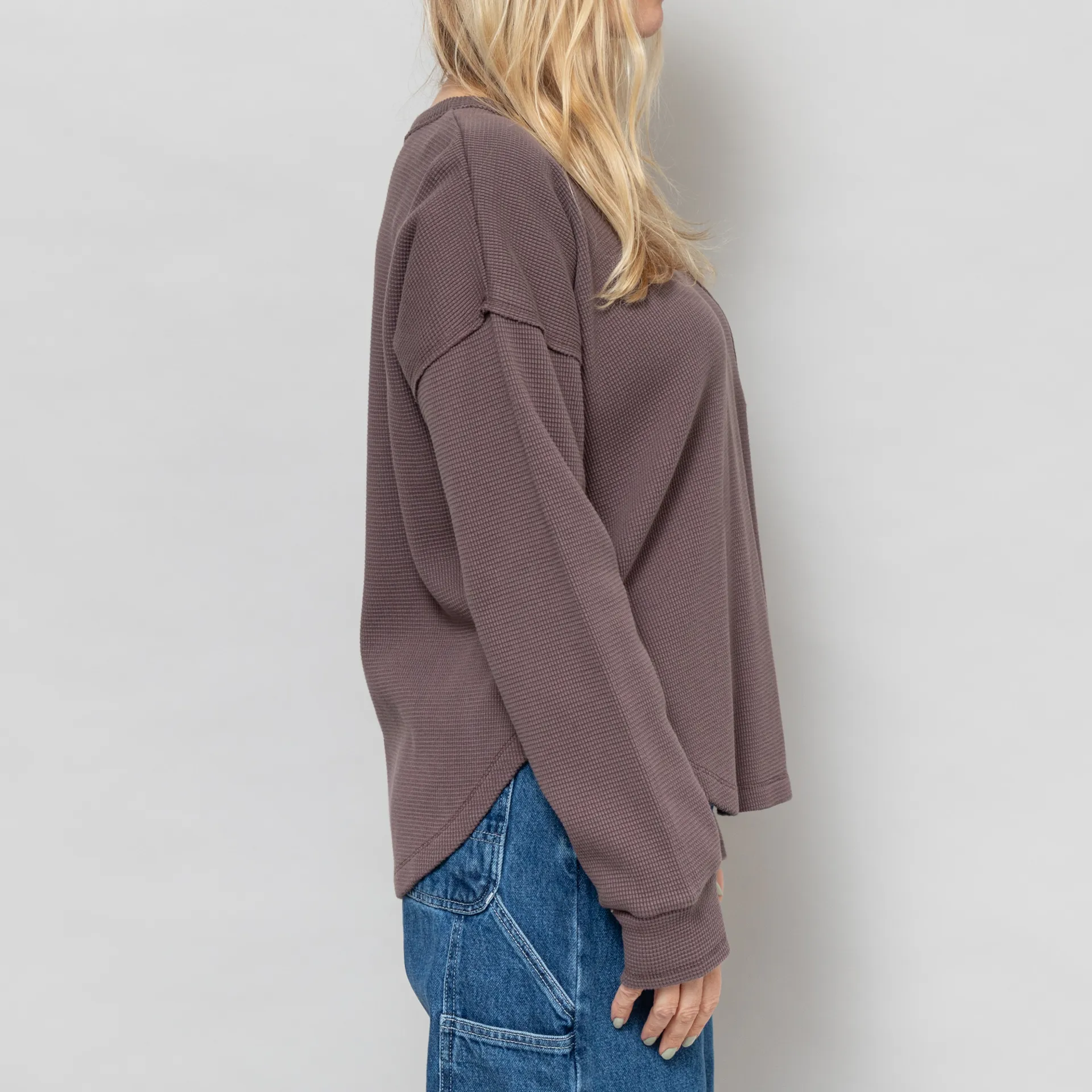 A waffle textured sweatshirt from Kavu, constructed from 100% cotton heavy thermal knit and cut in a relaxed fit with dropped shoulders.