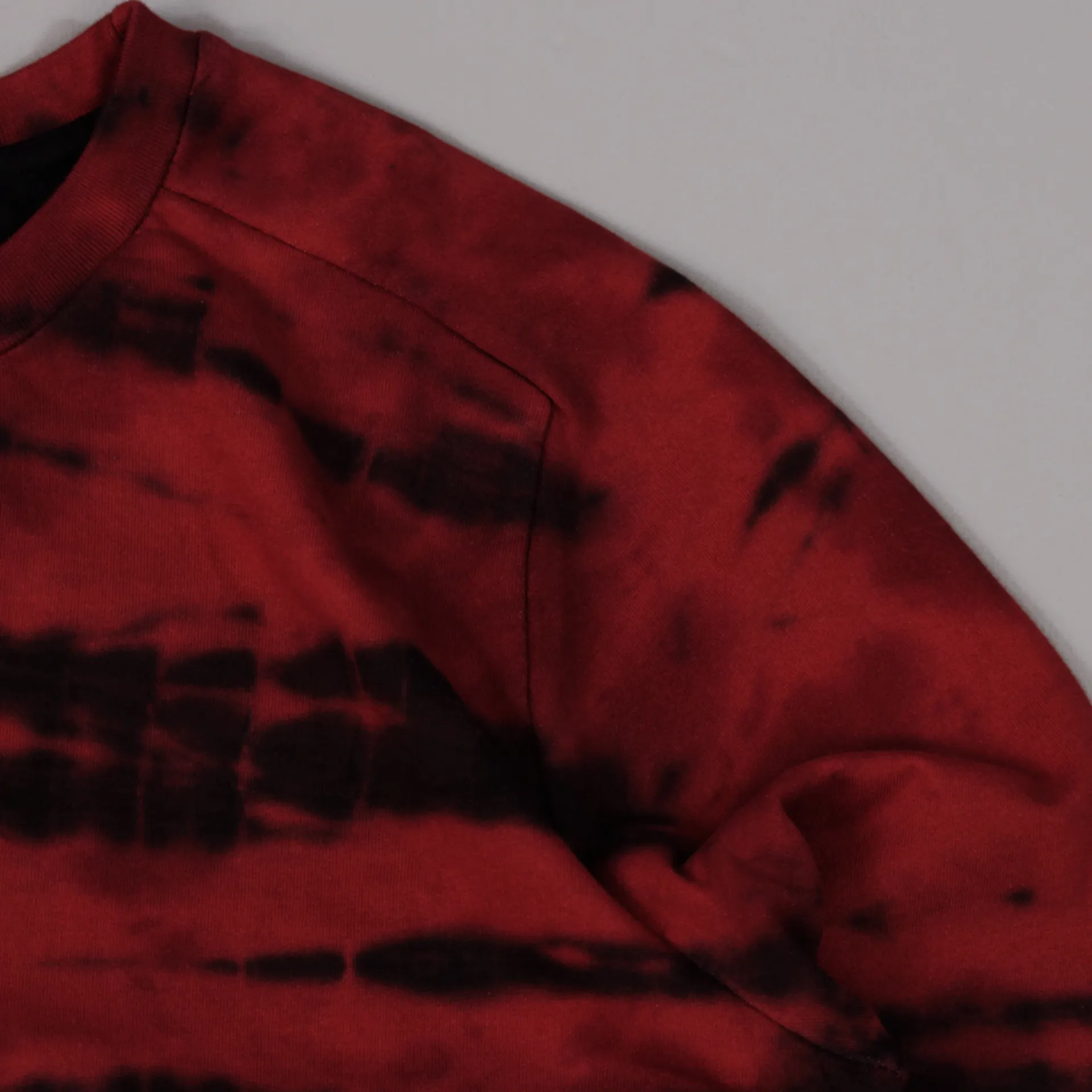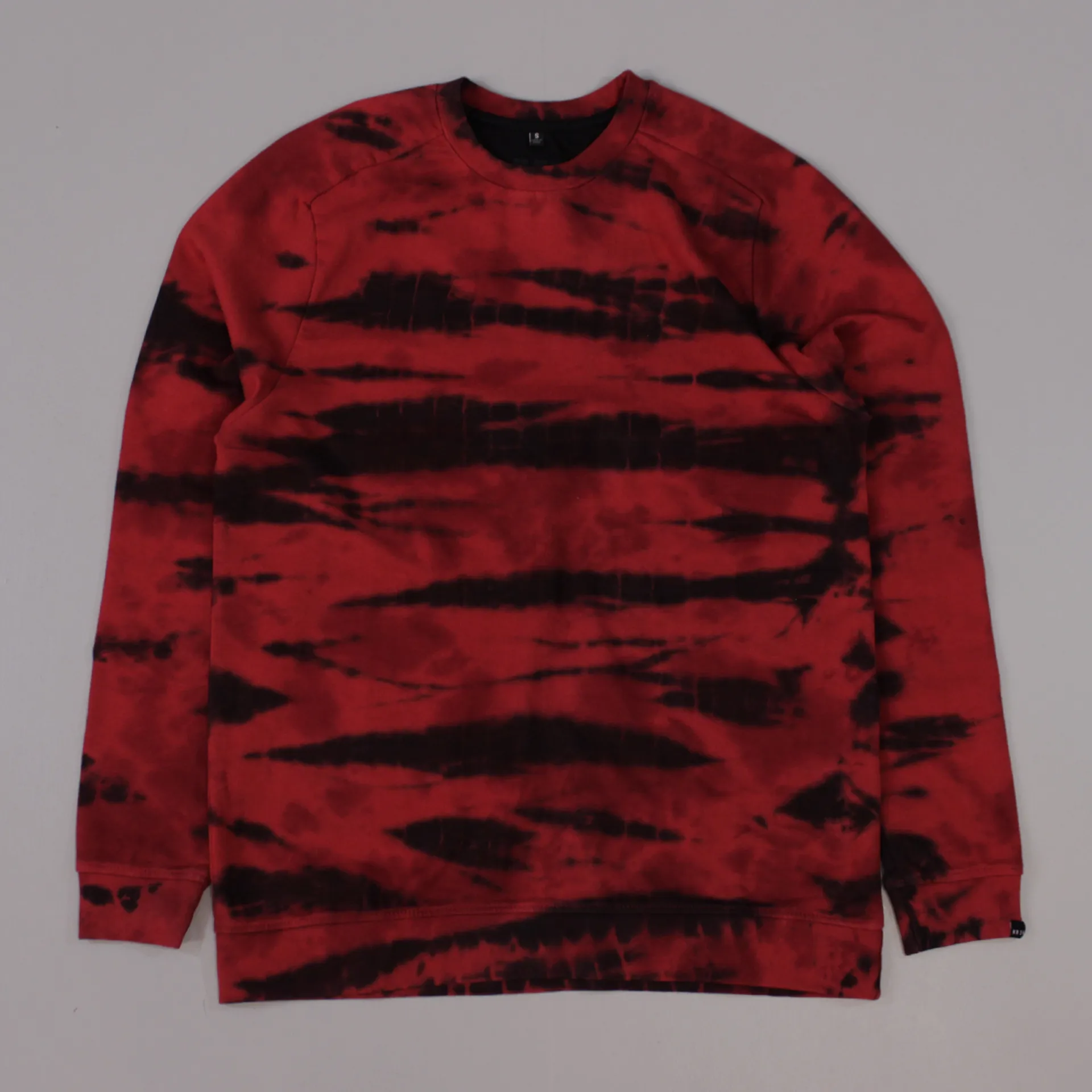Simple overall tie dye print pattern, with a small woven label on a ribbed cuff, with a thick ribbed crew neck collar. A comfortable 80%/20% Cotton and Polyester mix, giving warmth, as well as style for a night out or a casual sweat.