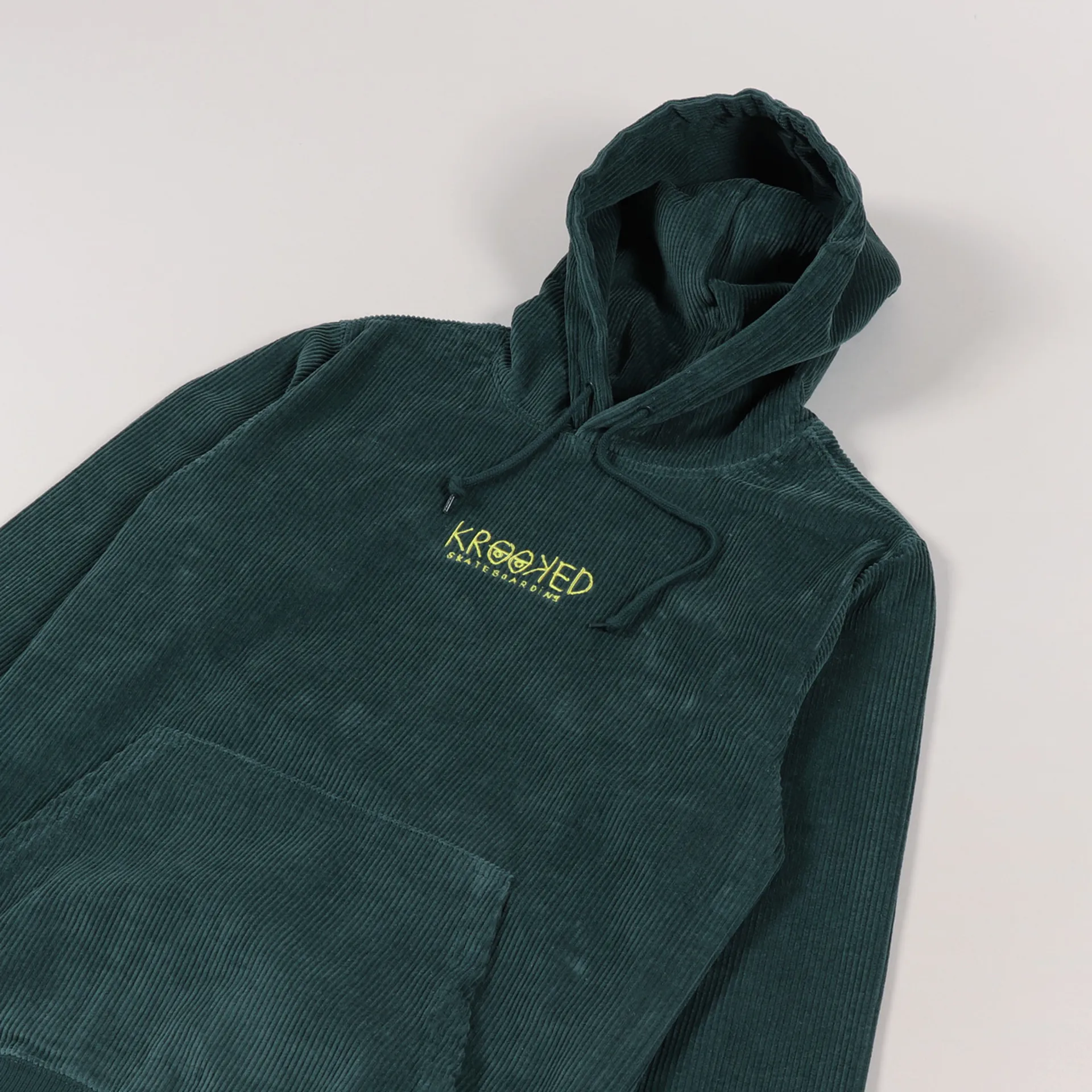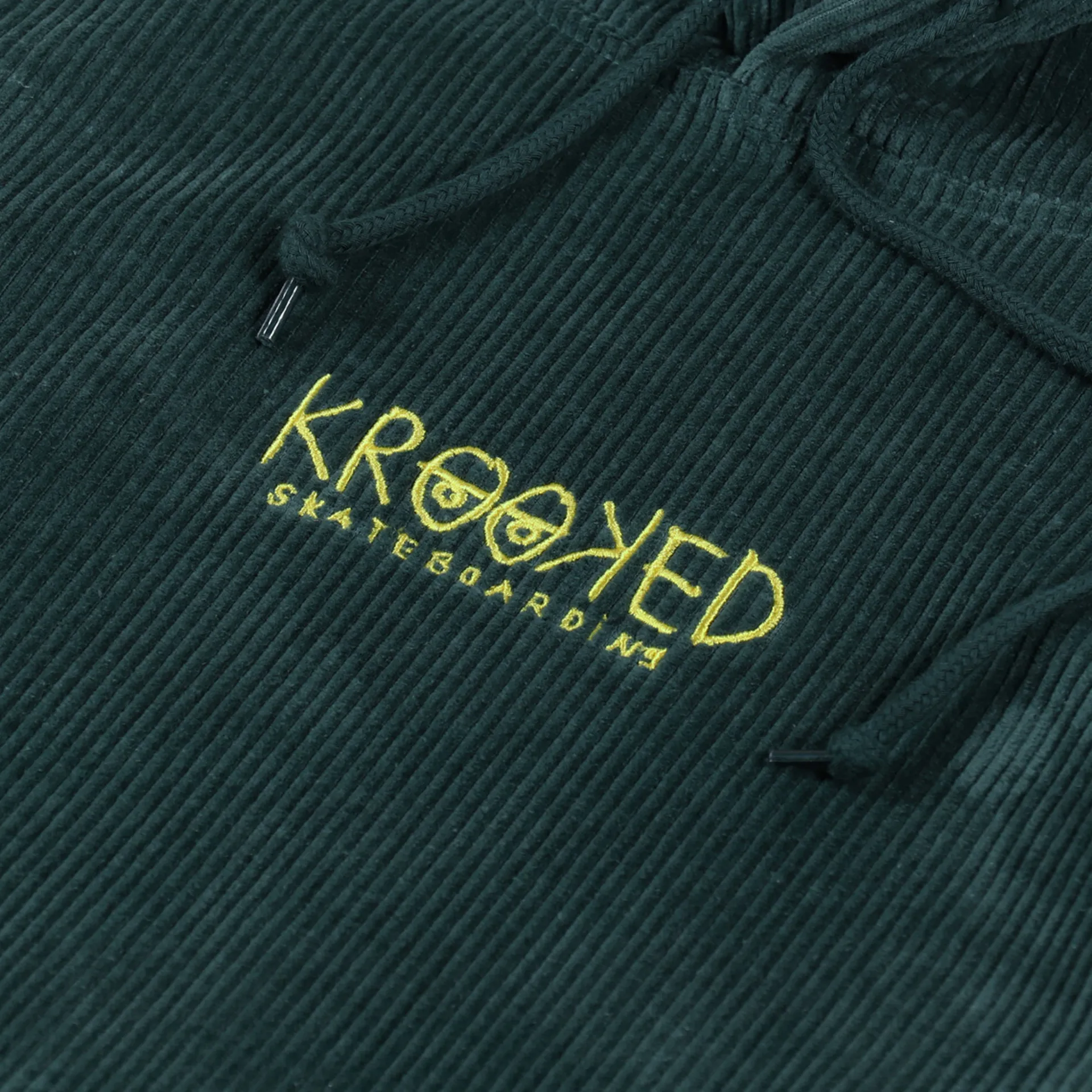 Krooked Eyes Embroidered Hoodie Green Corduroy