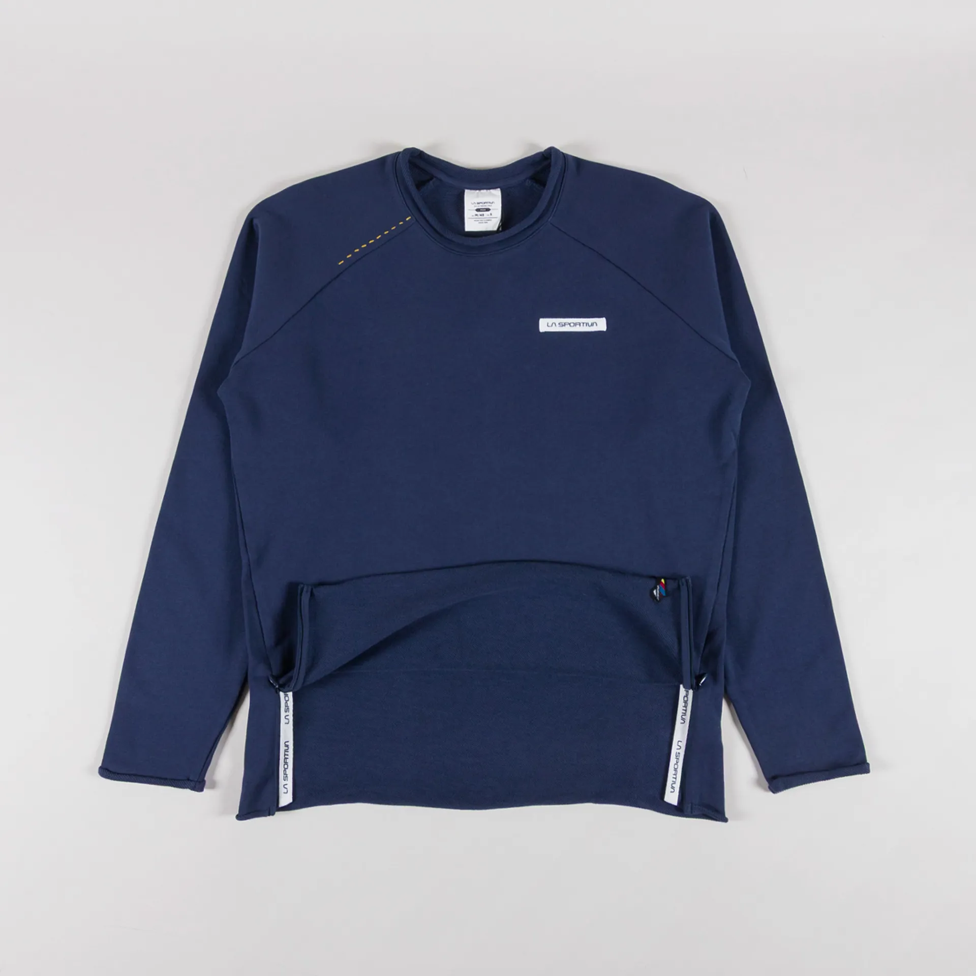 A crewneck from La Sportiva, constructed with climbing in mind from soft organic cotton with a loopback lining and is cut in a regular fit for everyday comfort. Featuring a rolled crewneck, hem and cuffs, with side zips to access the harness and manoeuvre in the safety phase, and a simple stitched logo at the chest.
