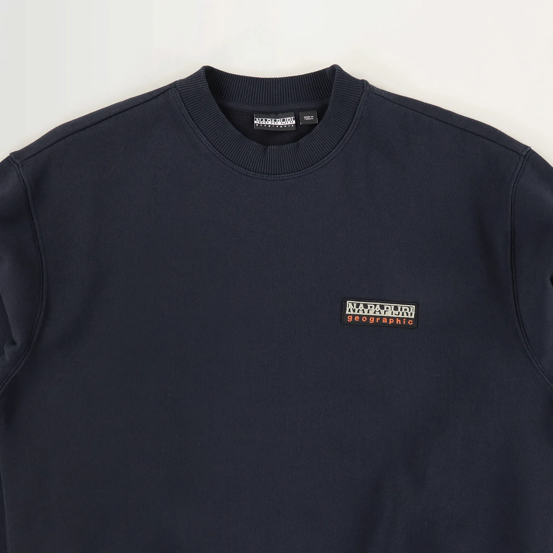 A sweatshirt from Napapijri made from a comfortable blend of 80% cotton and 20% polyester with a brushed fleece lining which is proper soft, and a flexible fit with a ribbed crew neck, cuffs and hem. It has an embroidered logo patch sewn to the chest for some simple branding.