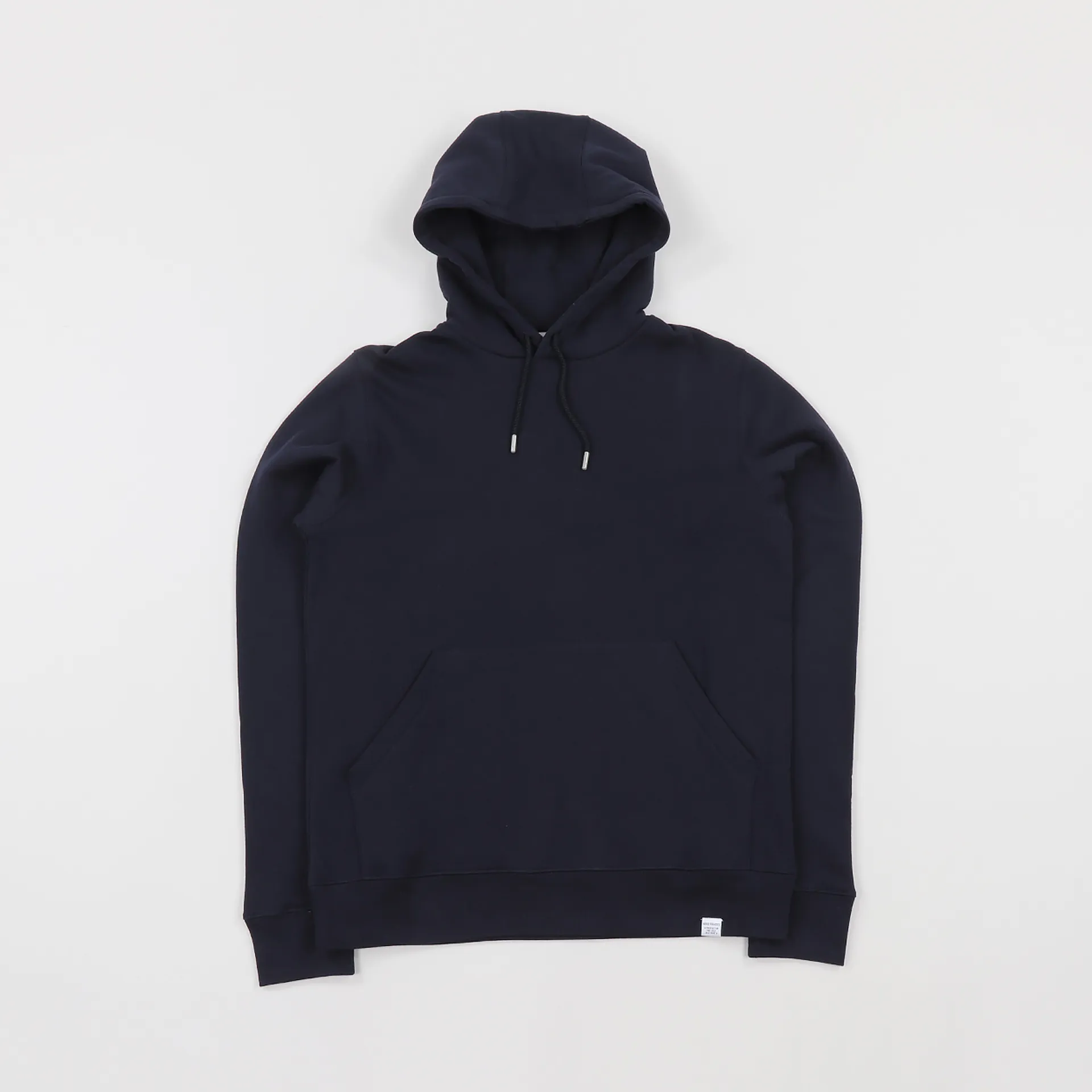 It's made from 100% brushed cotton which is warm and durable and features an extremely comfortable fleece lining. It has a ribbed hem and cuffs for a flexible fit and the hood has a drawstring. To the front it has a kangaroo pocket for convenience and the hem features a small woven Norse Projects tag.