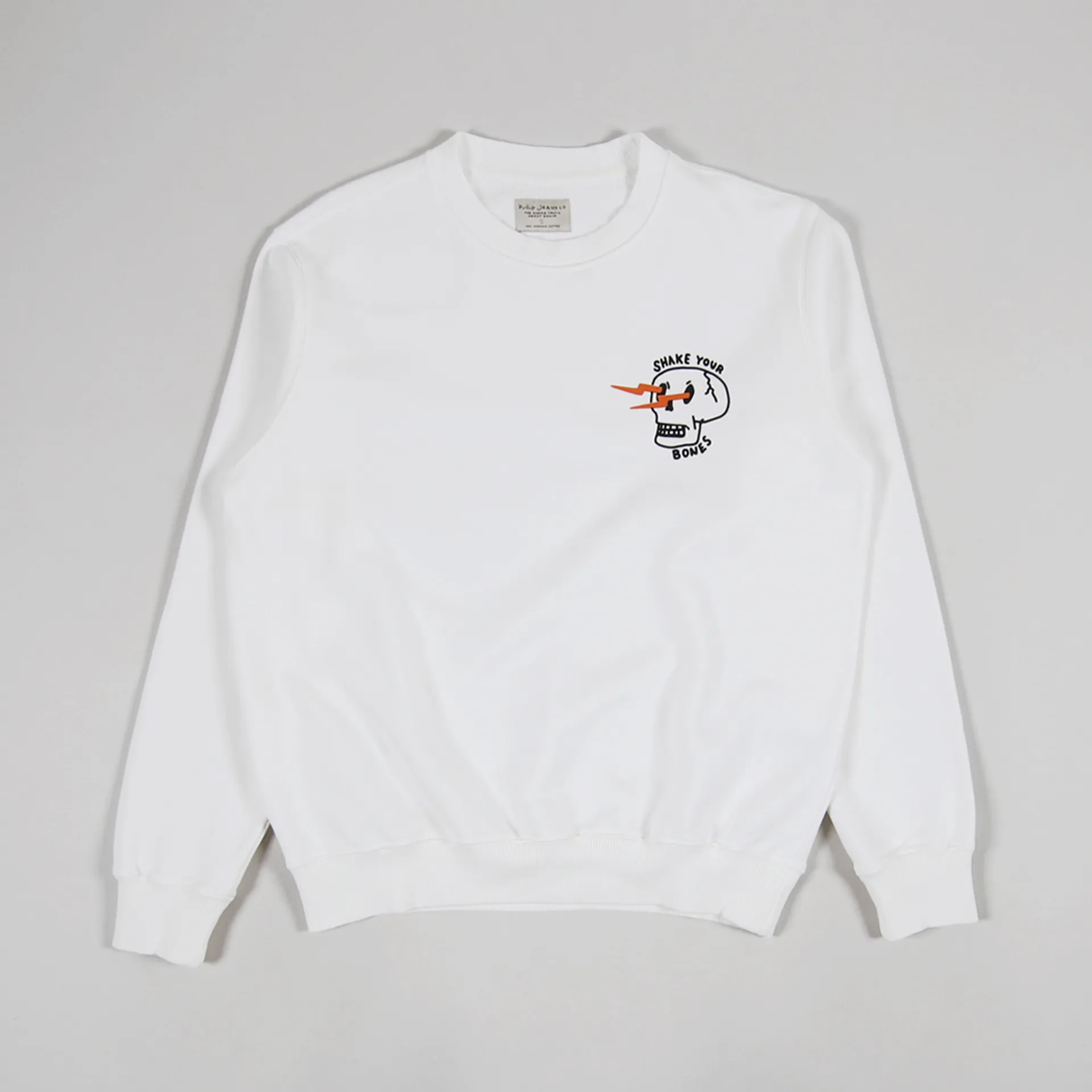Nudie Jeans Lasse Shake Your Bones Sweat Chalk White