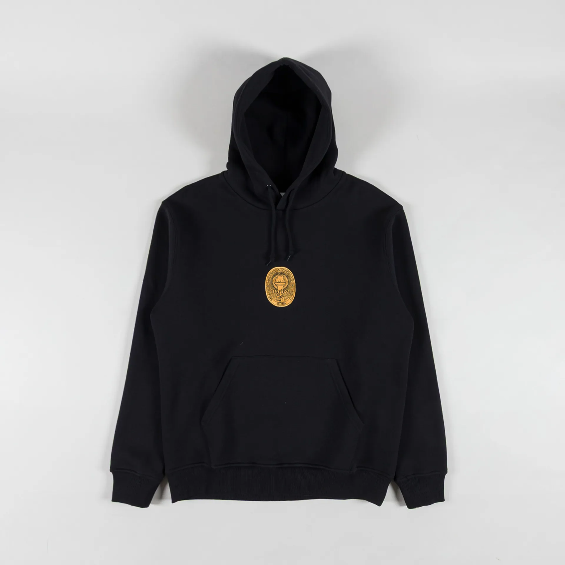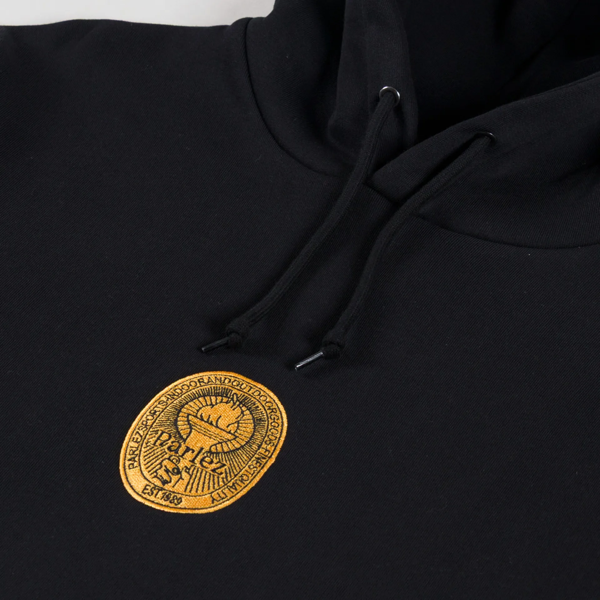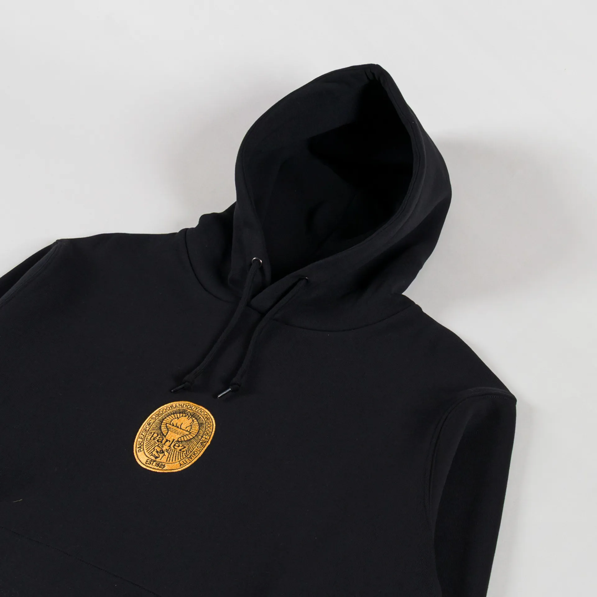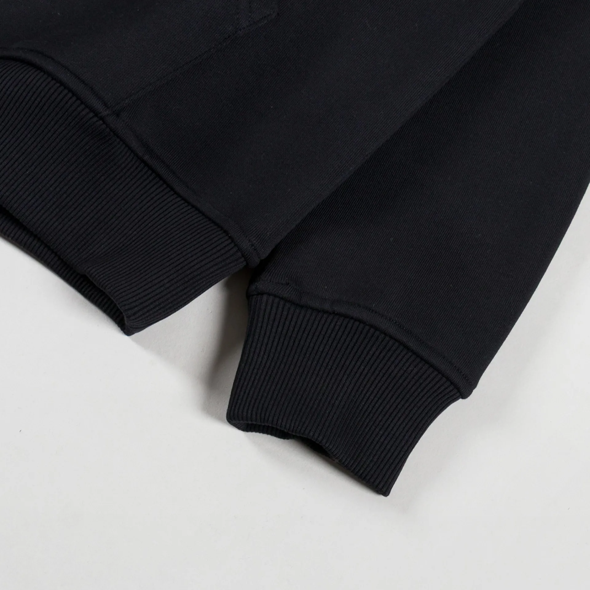 A pullover from Parlez, cut in a regular fit for everyday wear and constructed from a heavyweight blend of organic cotton and recycled polyester. It features a fleece-back lining for comfort, a double-layered hood with adjustable drawstrings and a classic kangaroo pocket. Finished off with some standard ribbed trims and a cool embroidered logo to the centre front.
