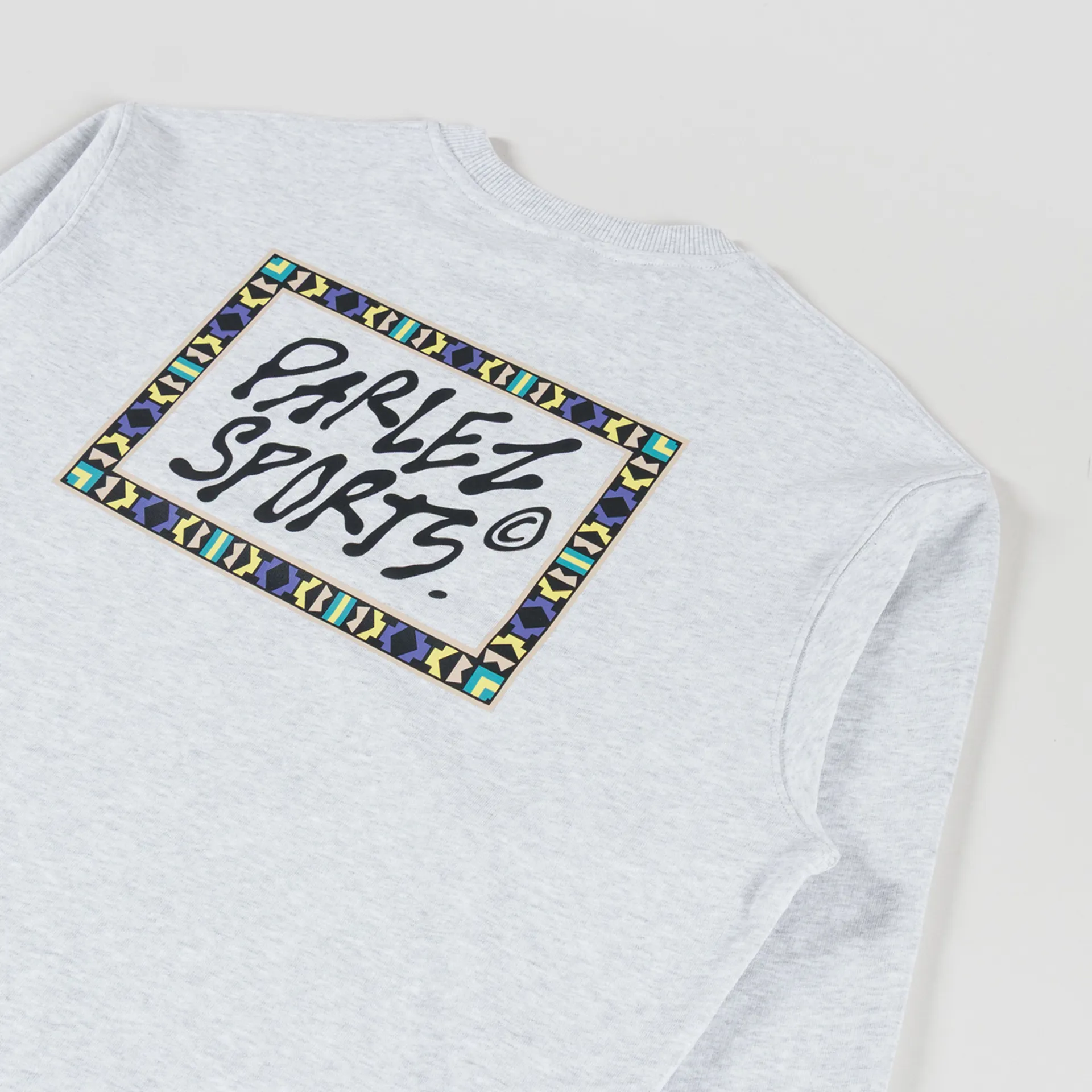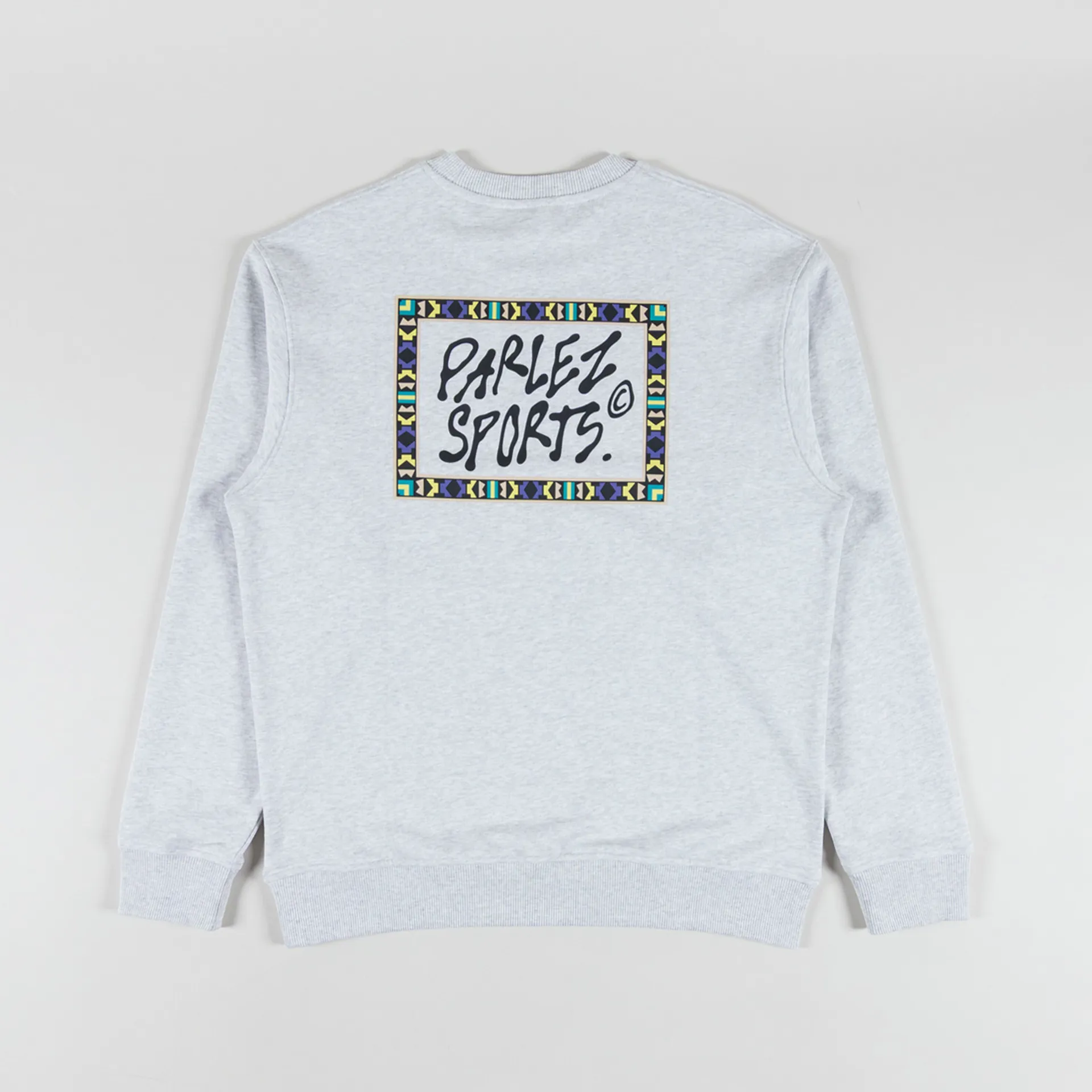 A graphic crewneck from Parlez, constructed from a soft organic cotton/recycled polyester blend with a loopback lining for comfort.