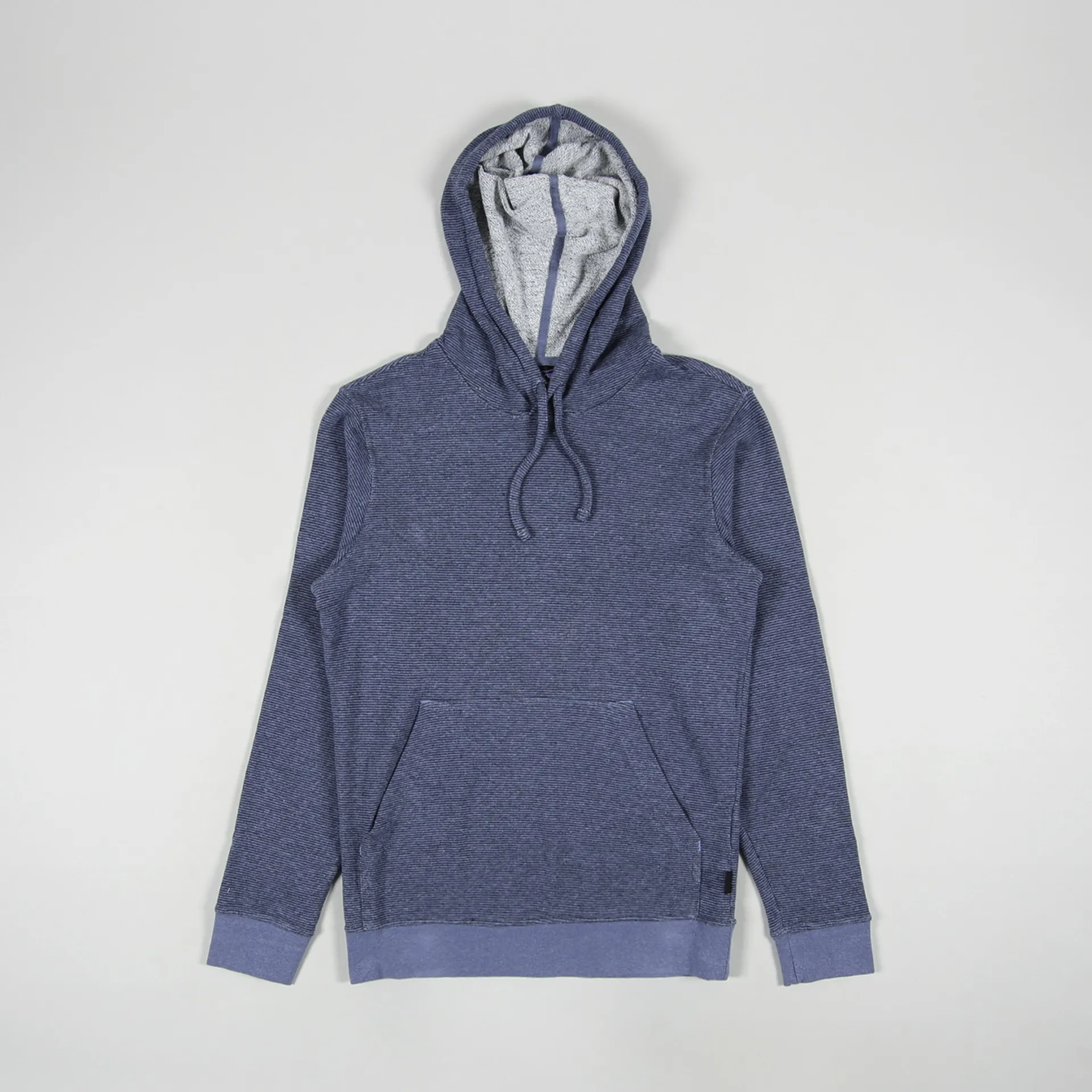 A pullover hoodie from Patagonia made from a blend of organic cotton and hemp with a loopback lining, ribbed hem and cuffs, a kangaroo pocket and drawstring hood.