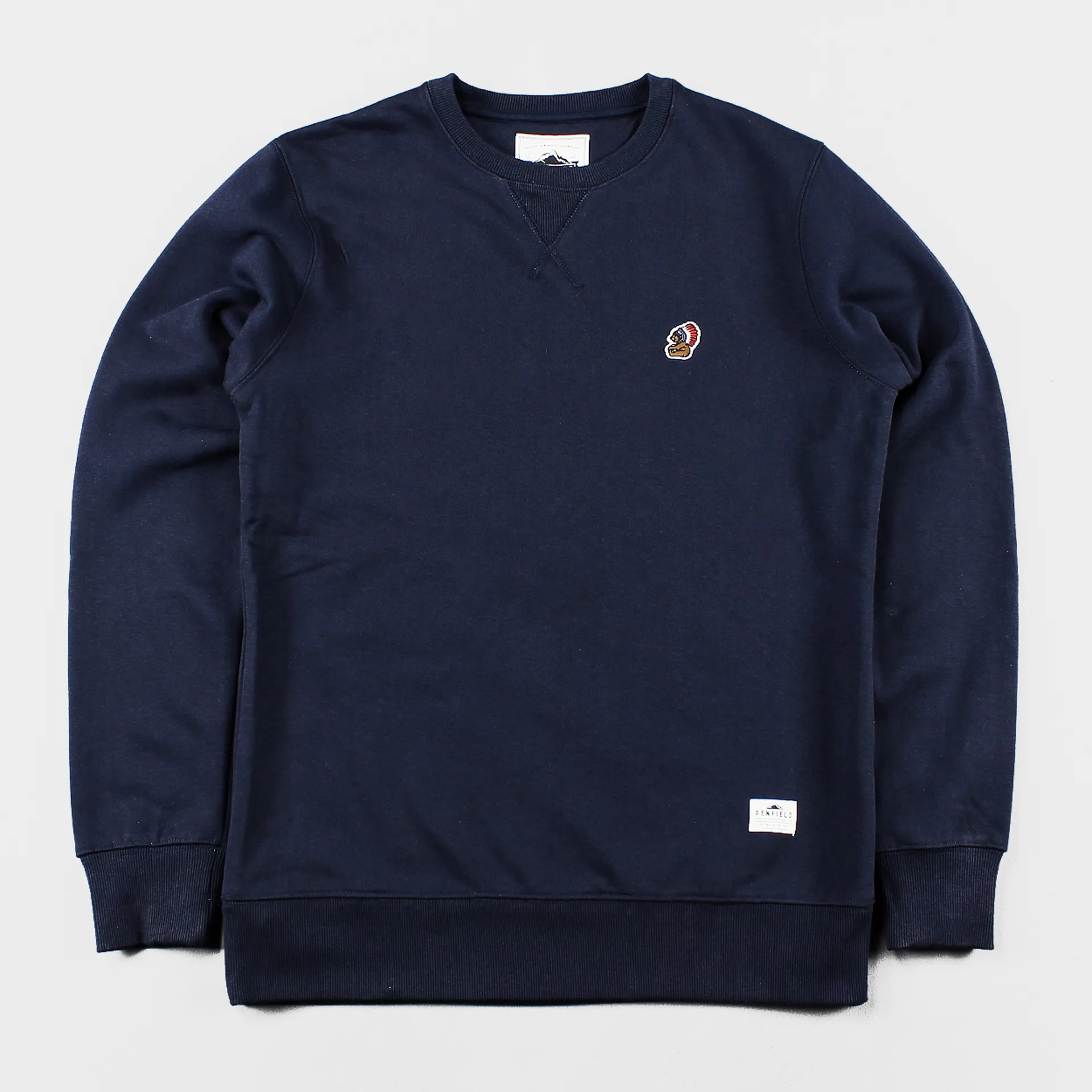 This comfortable sweater from Penfield is made from a cotton polyester blend and has a cool little bear patch wearing a native Indian head dress. Another nice detail includes the classic "V" insert at the neck.