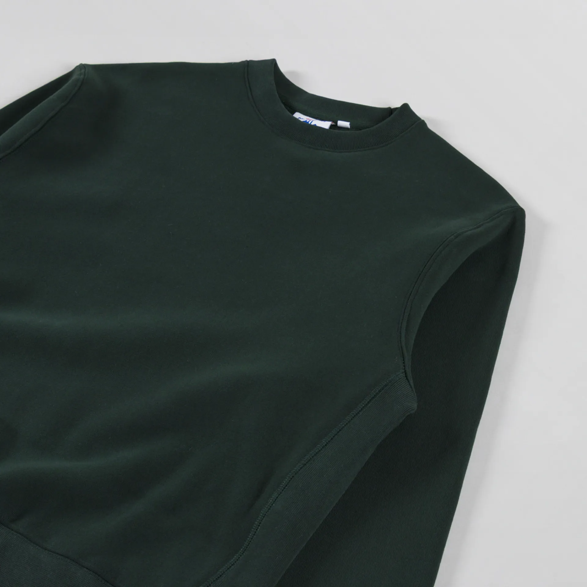 A heavyweight sweatshirt from Power Goods, cut in a slightly boxy fit for a more casual look and constructed from GOTS-certified 16oz 100% cotton with a brushed-back fleece lining. It features a ribbed crewneck and sides, with a chunky ribbed hem and cuffs. This sweatshirt has been pre-shrunk, helping to minimize further shrinkage when washed/dried, prolonging the garment's lifespan.