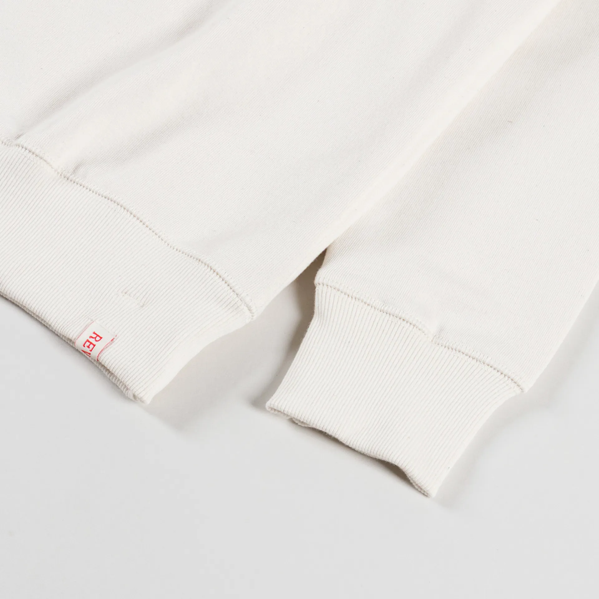 A plain crew from Revolution, constructed from heavyweight organic cotton fabric with a loopback lining for comfort. It's cut in a relaxed fit for a casual silhouette and has a dry hand feel. It features a ribbed crewneck, hem and cuffs, finished with a tonal embroidered R logo just above the hem.