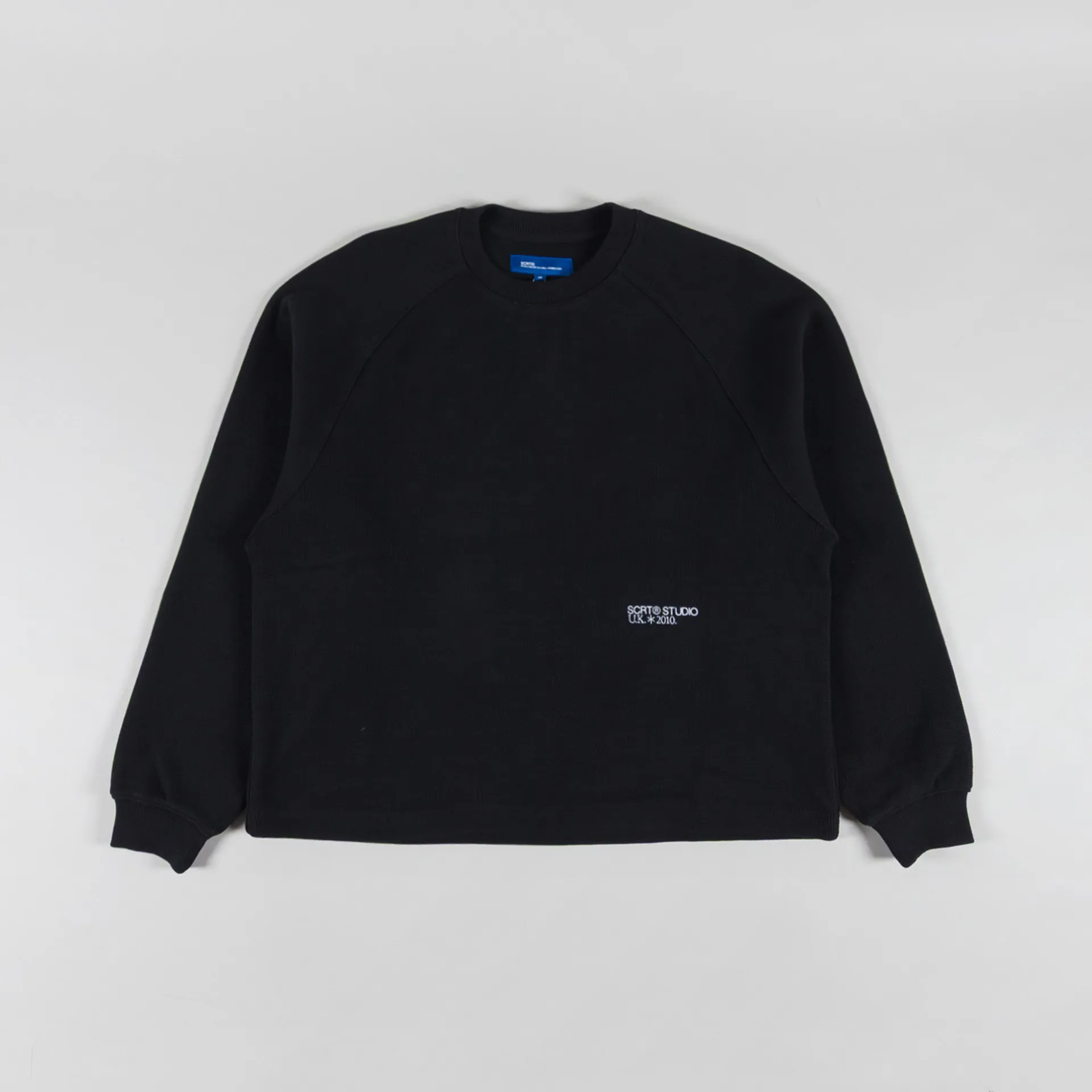 A waffle sweat from SCRT, cut in a loose, boxy fit for a casual silhouette and constructed from heavyweight 100% cotton waffle knit, a textured fabric offering breathability, subtle stretch and long-lasting structure. It features a ribbed crewneck and cuffs, with raglan sleeves for freedom of movement and a slouchy appearance. Finished off with a SCRT Studio screen-print to the stomach.