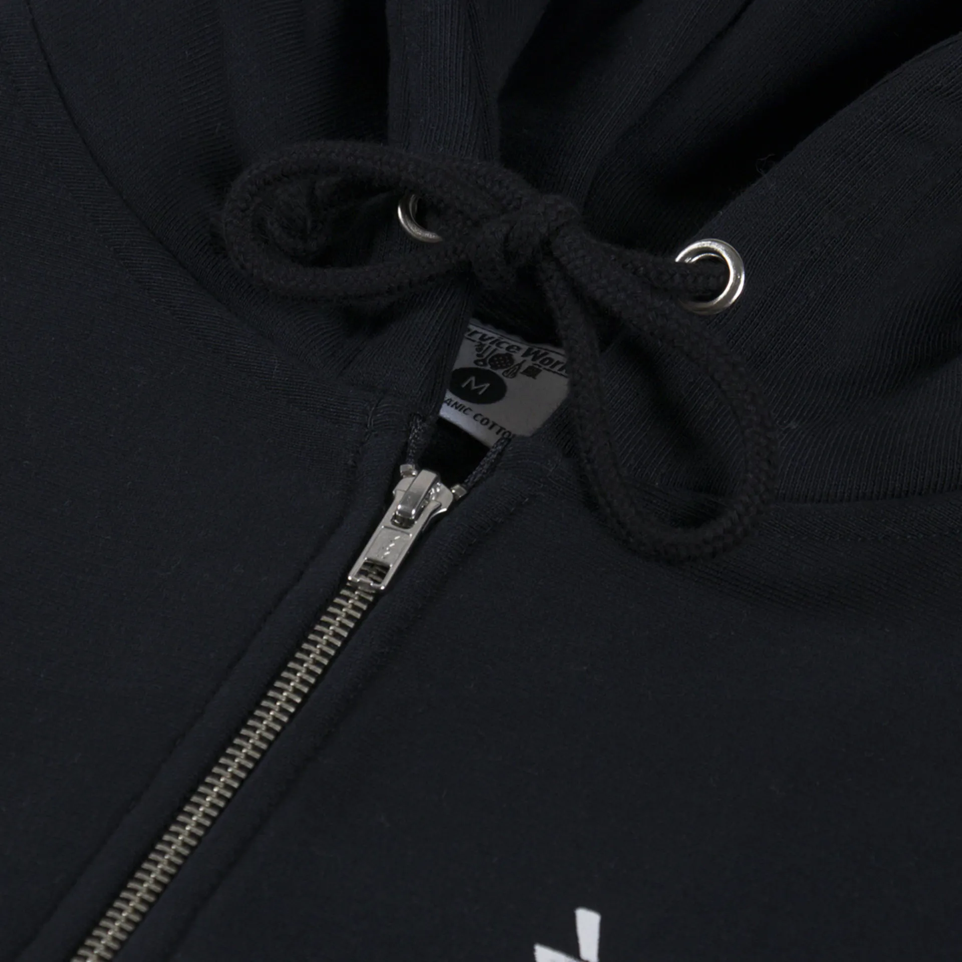 A zip-through hoodie from Service Works, constructed with 550GSM GOTS-Certified organic cotton and cut in a regular fit for everyday wear. It has a soft loopback lining for comfort, a full zip-through front leading to an adjustable hood, with a ribbed hem and cuffs. Finished off with two standard hand pockets and puff print graphics at the chest and back.