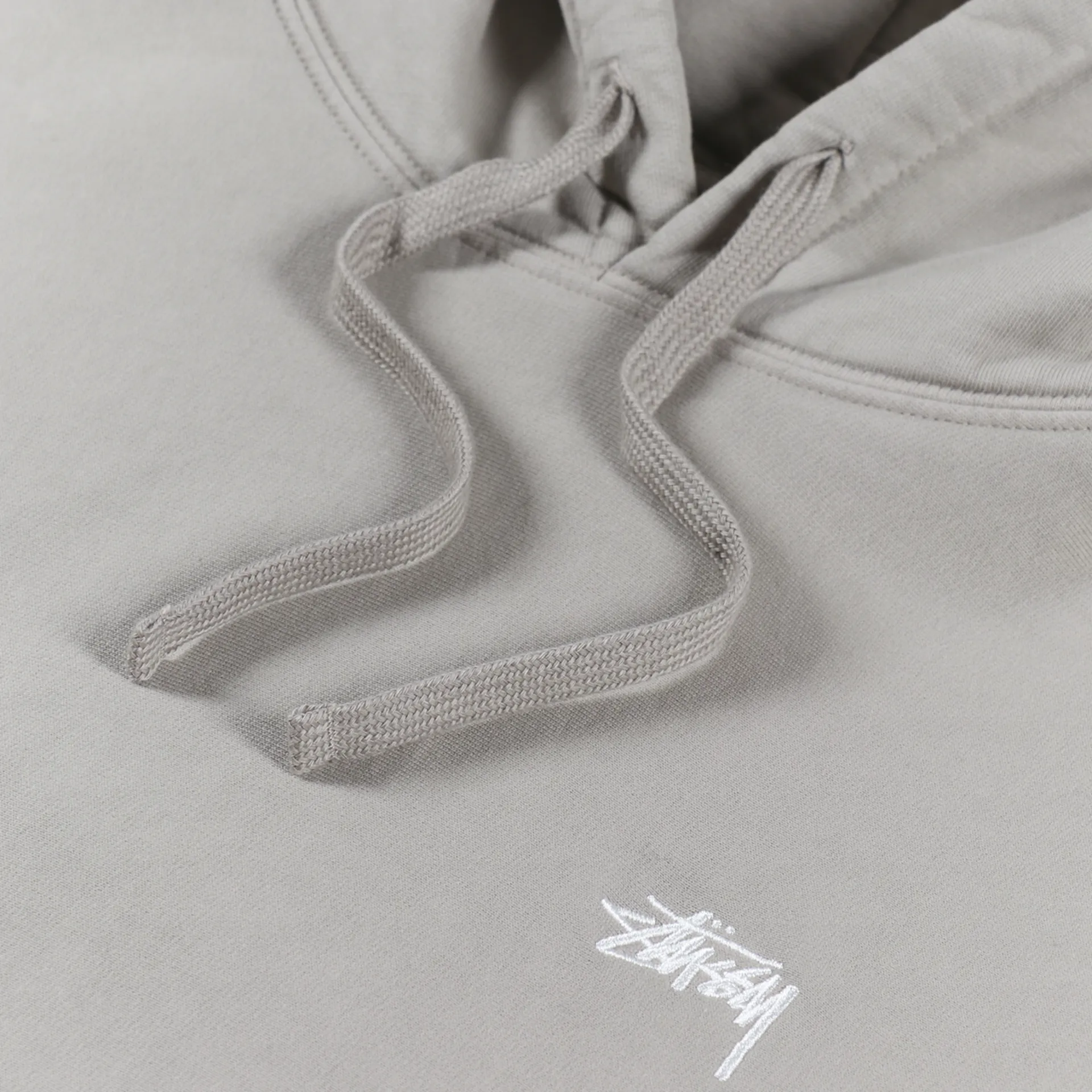 A pullover hoodie from Stussy made from a warm and comfortable 100% cotton with a soft brushed fleece lining. It has a kangaroo pocket, drawstring hood and a ribbed hem and cuffs. Branding is simple with an embroidered Stock logo to the chest.