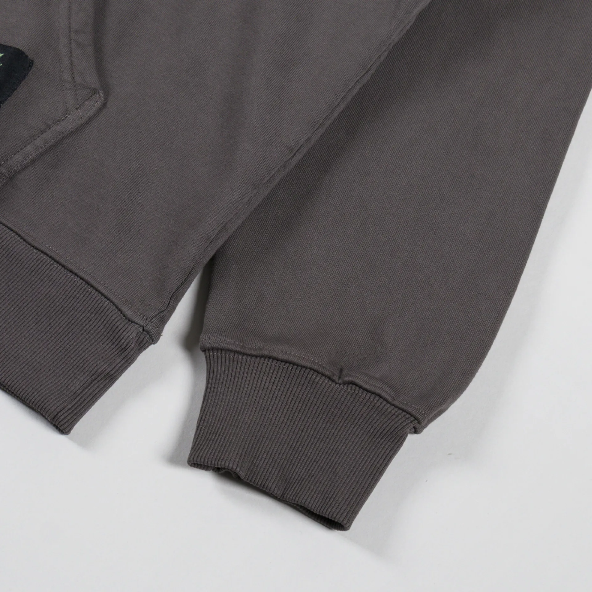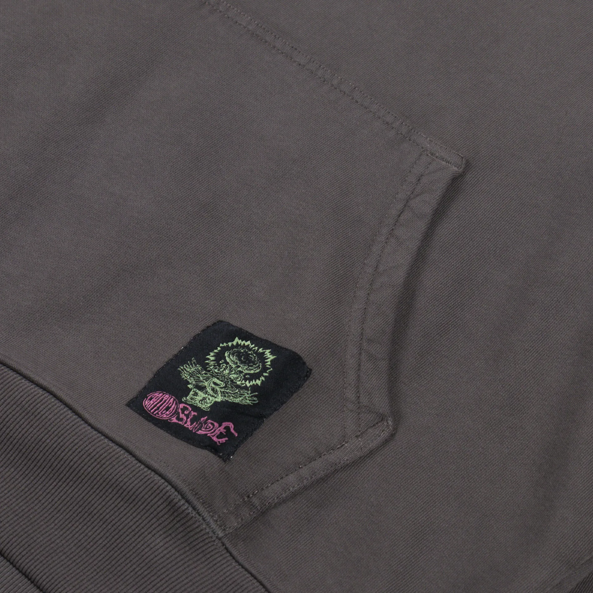 A loose, boxy hoodie from Critical Slide, constructed from 420gsm brushed cotton fleece and garment-dyed/washed for a softer hand feel and worn-in look.