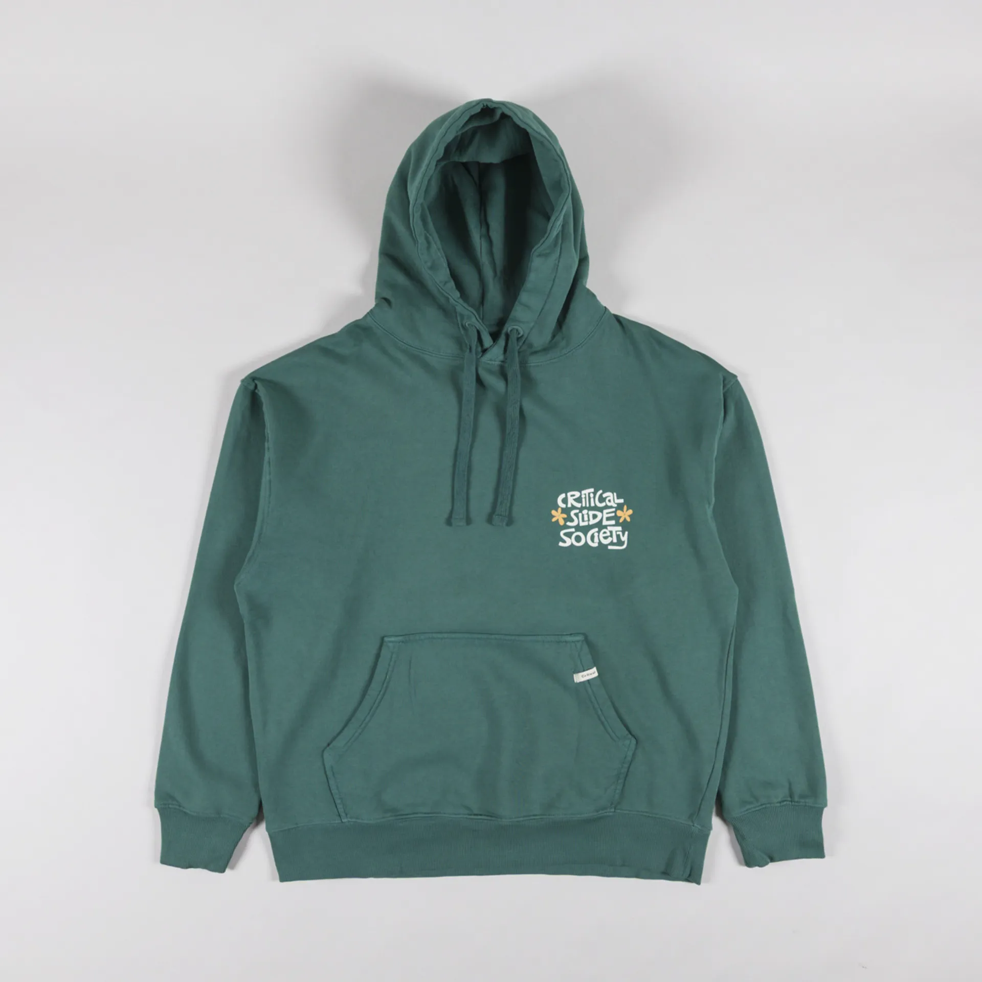 A loose hoodie from Critical Slide, constructed from 420gsm brushed cotton fleece and garment-dyed/washed for a softer hand feel and worn-in look. It features a ribbed hem and cuffs, with a drawstring hood, kangaroo pocket and woven logo. Finished off with some cool graphic prints to the chest and back.