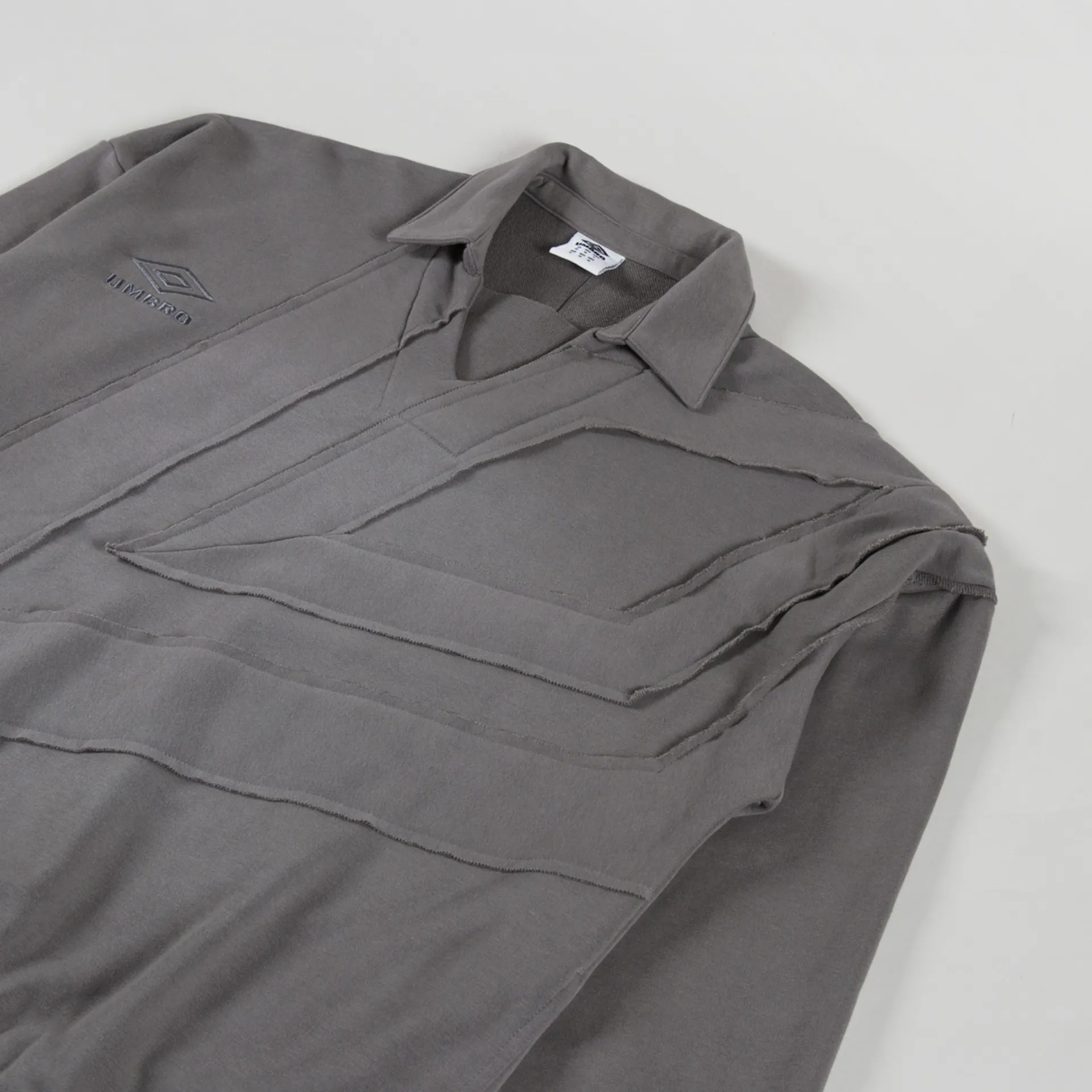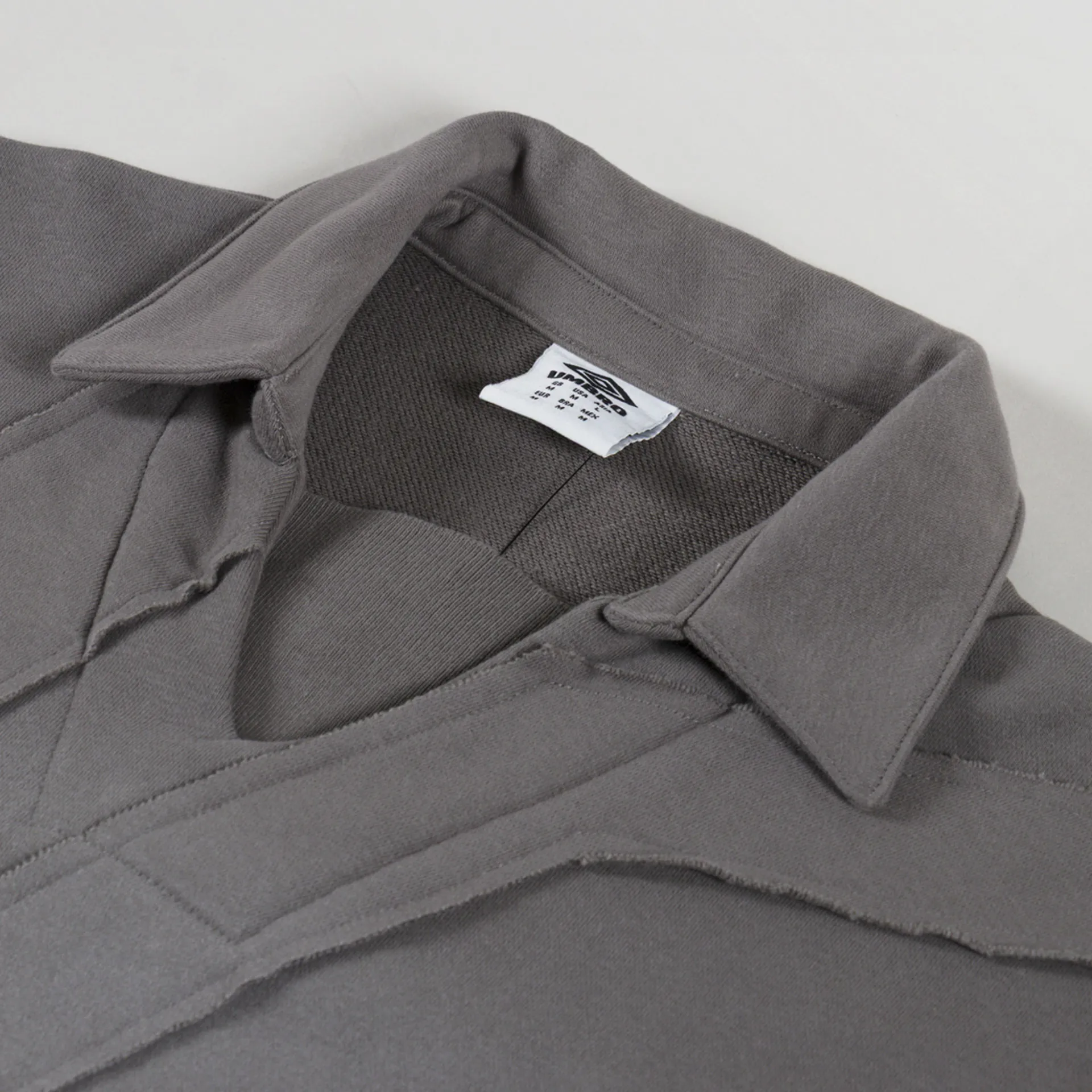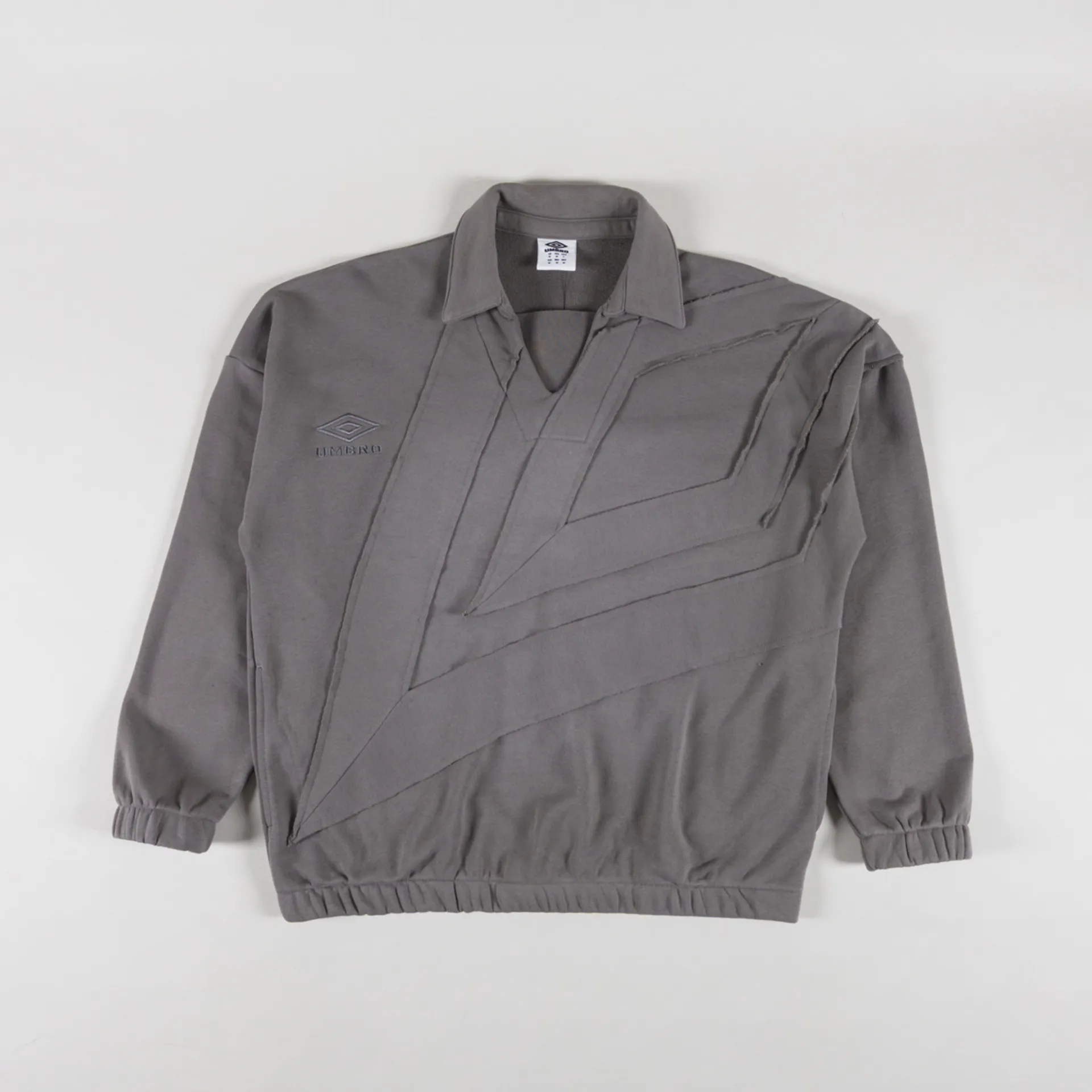 A sweatshirt from Umbro, cut in a boxy fit for a laidback silhouette and constructed from a soft poly/cotton blend with raw edge detailing throughout. It features an open neck with a ribbed insert, an oversized collar, with an elasticated hem and cuffs. Finished off with a tonal embroidered Umbro logo to the chest.