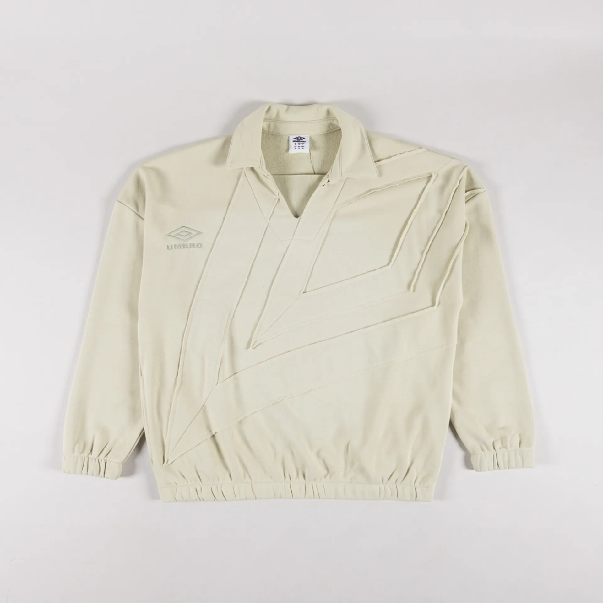 A sweatshirt from Umbro, cut in a boxy fit for a laidback silhouette and constructed from a soft poly/cotton blend with raw edge detailing throughout. It features an open neck with a ribbed insert, an oversized collar, with an elasticated hem and cuffs. Finished off with a tonal embroidered Umbro logo to the chest.