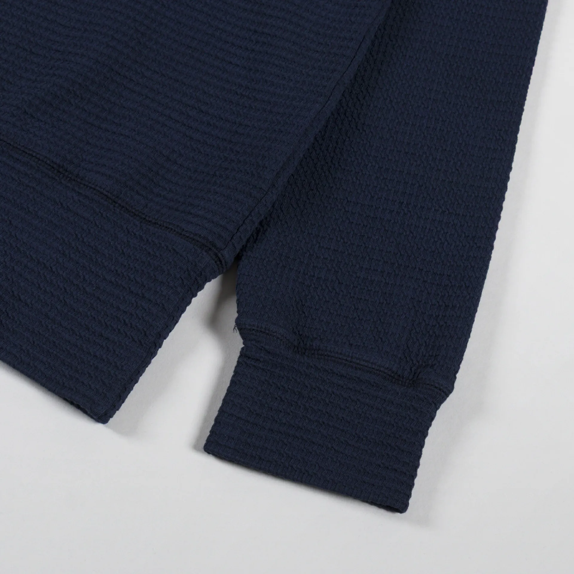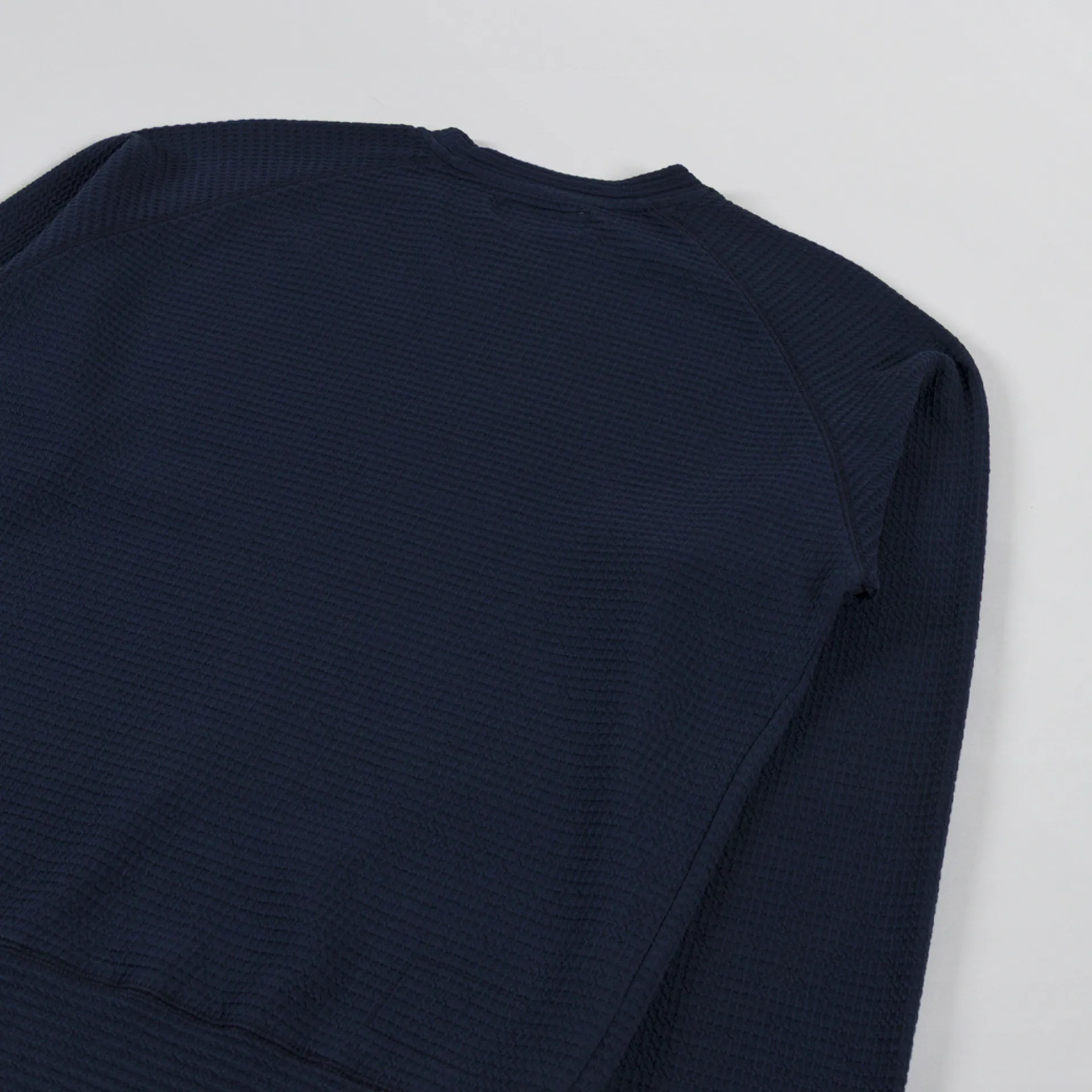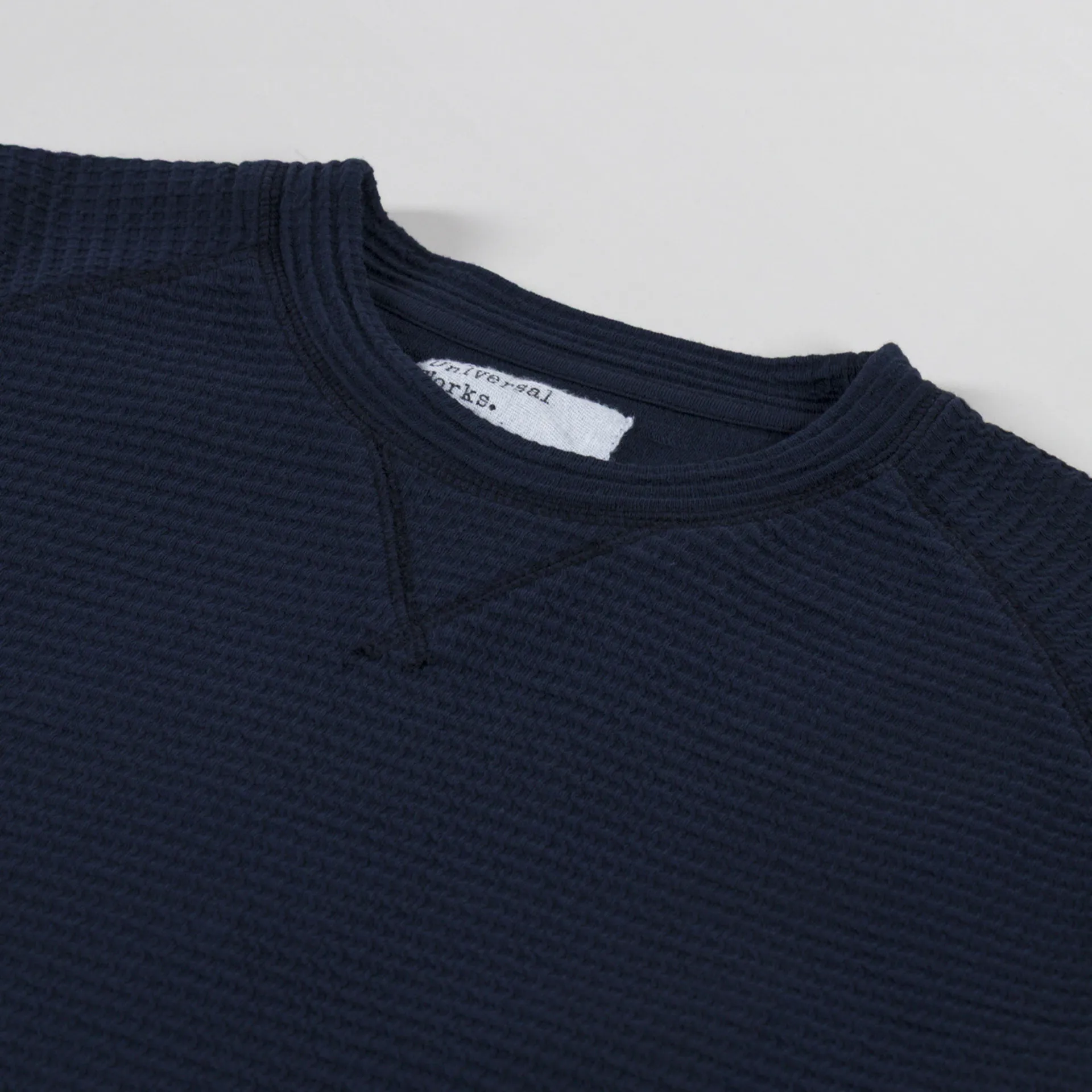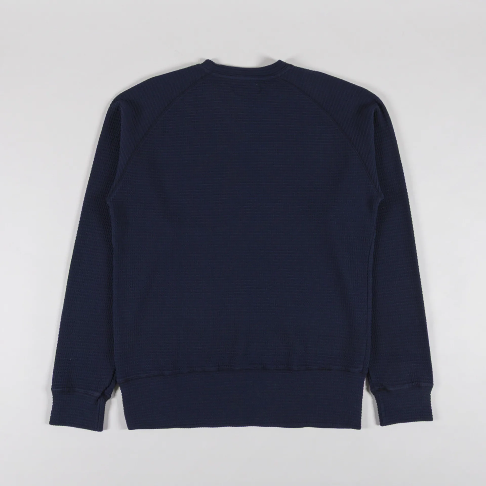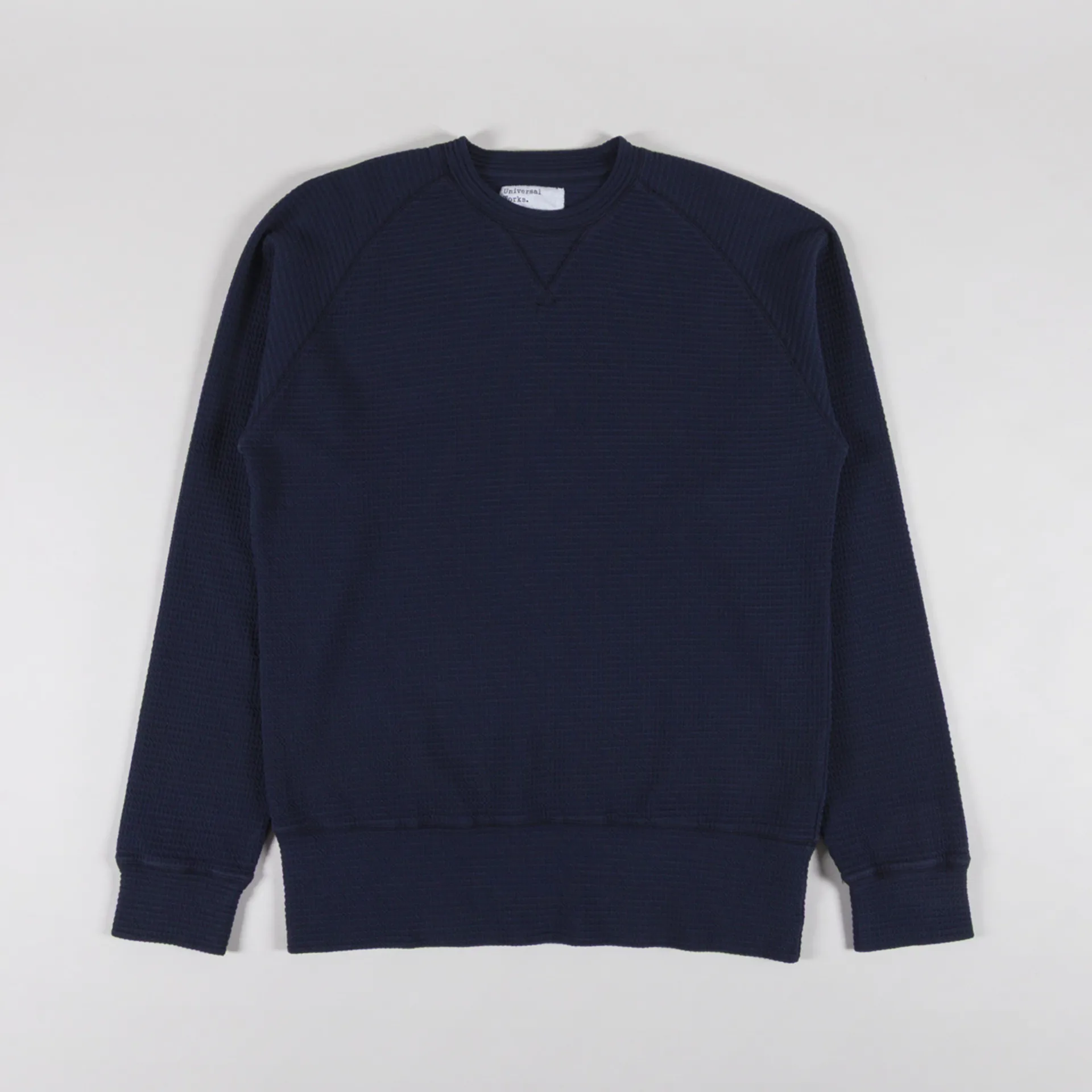 A waffle-textured sweatshirt from Universal Works, constructed from a soft organic cotton and elastane blend.