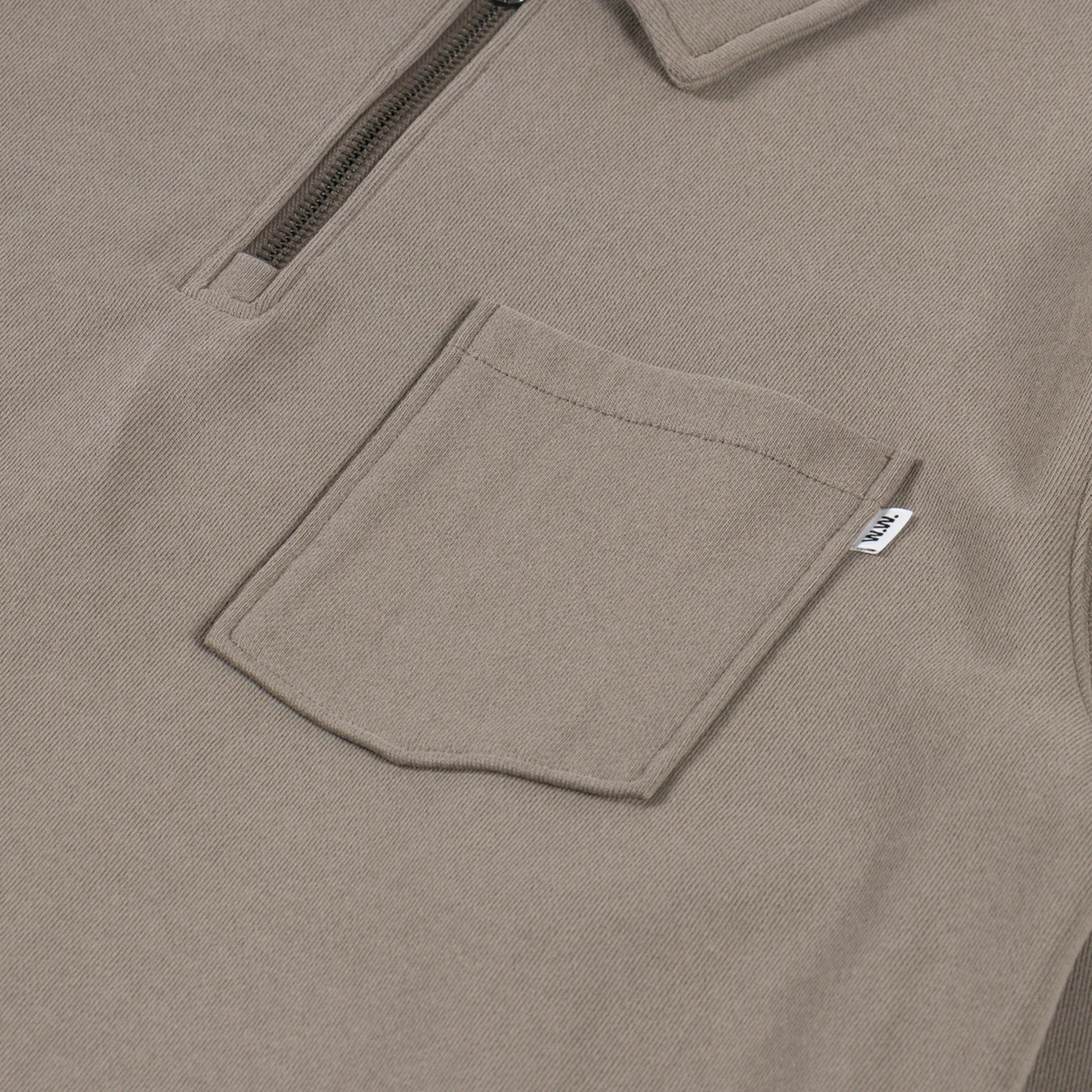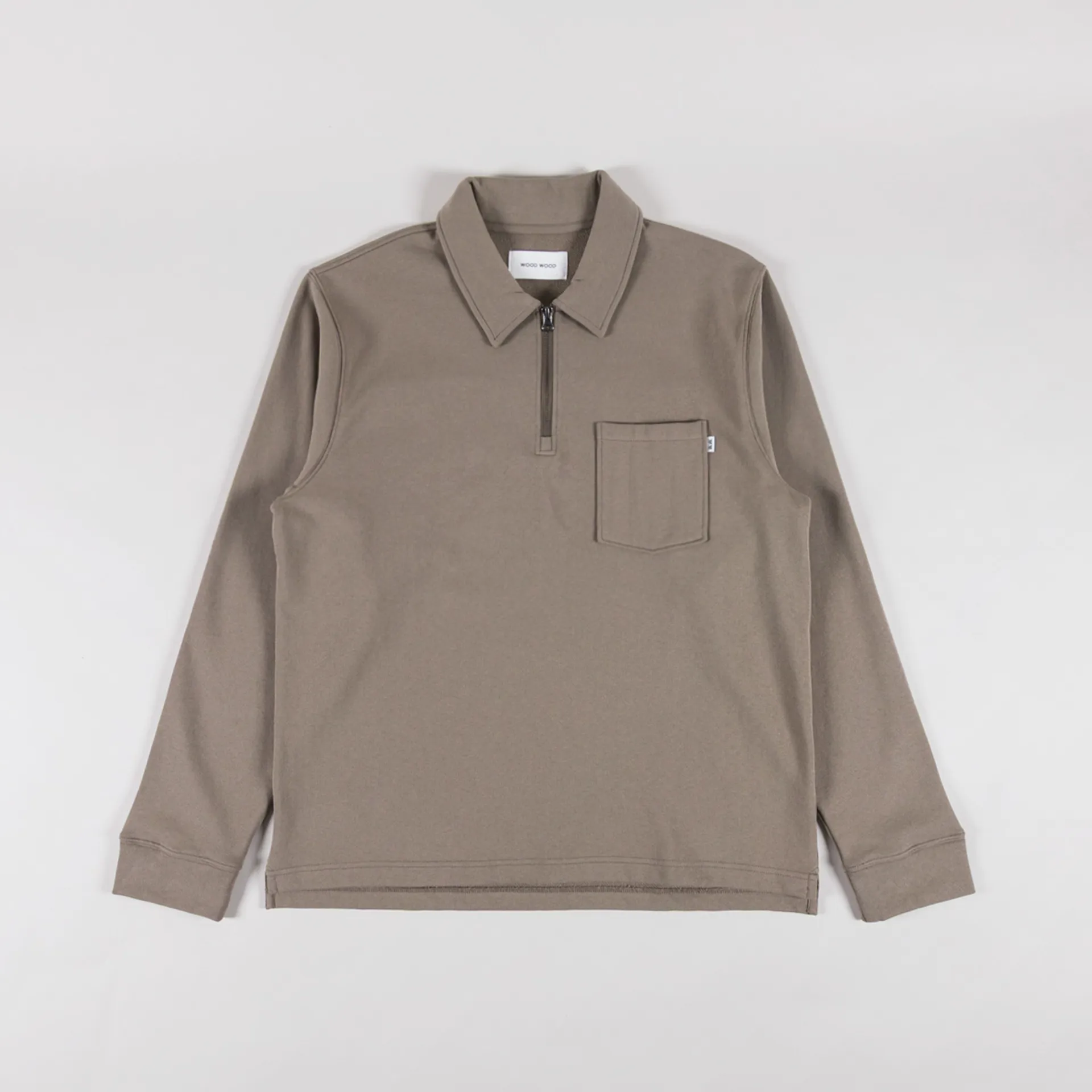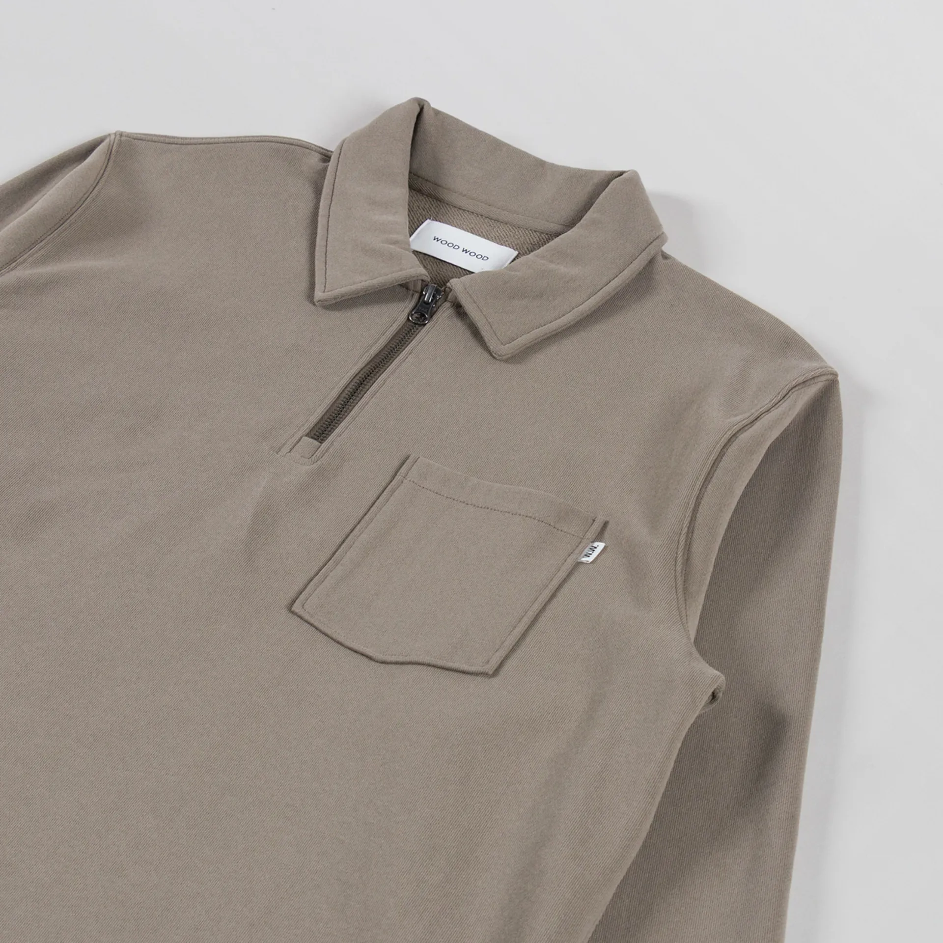 A polo shirt from Wood Wood, cut in a relaxed fit for a casual silhouette and constructed from soft cotton with a loopback lining. It features a quarter-zip, leading to a classic polo collar, with ribbed cuffs and a straight hem. Finished off with a single patch pocket at the chest and a flag label.