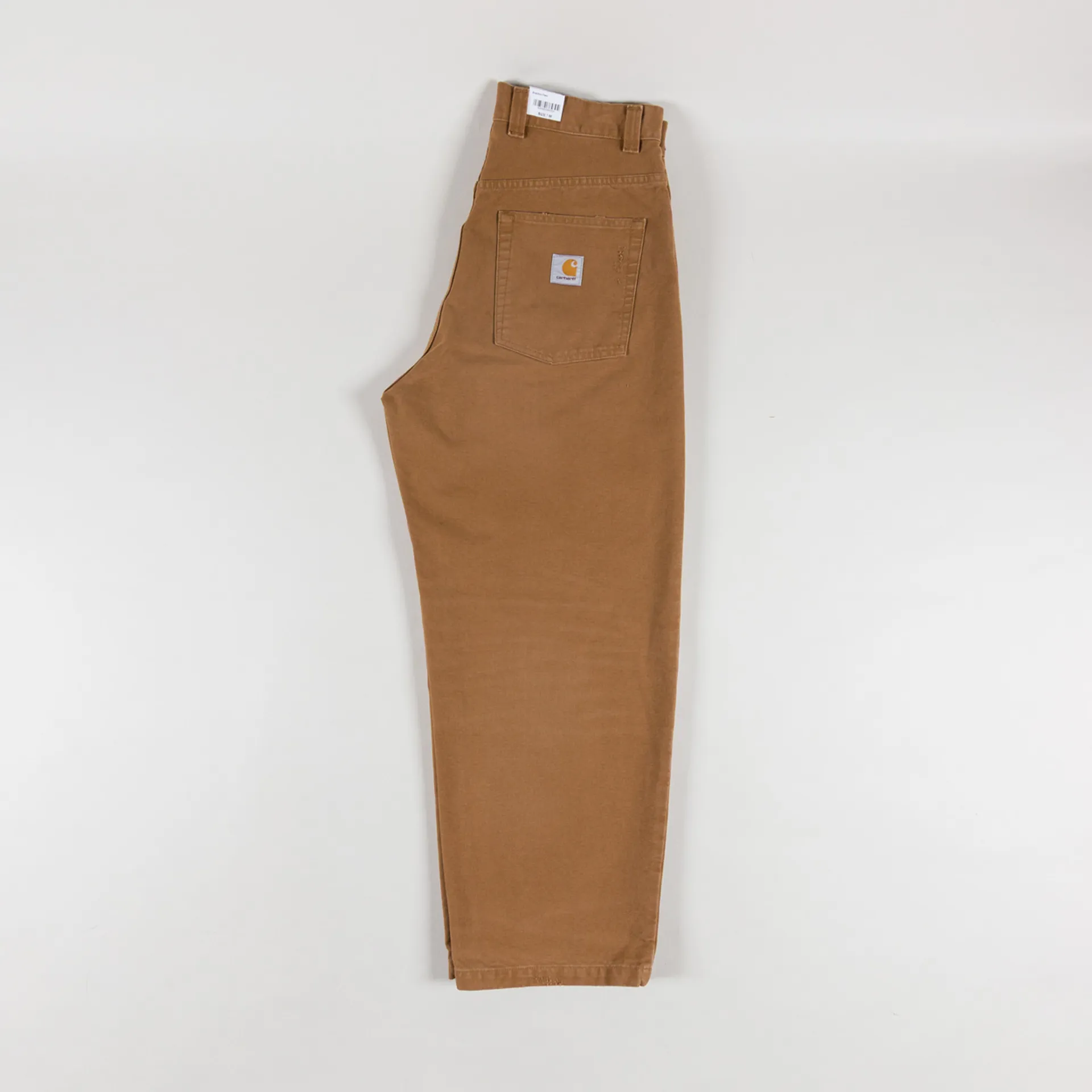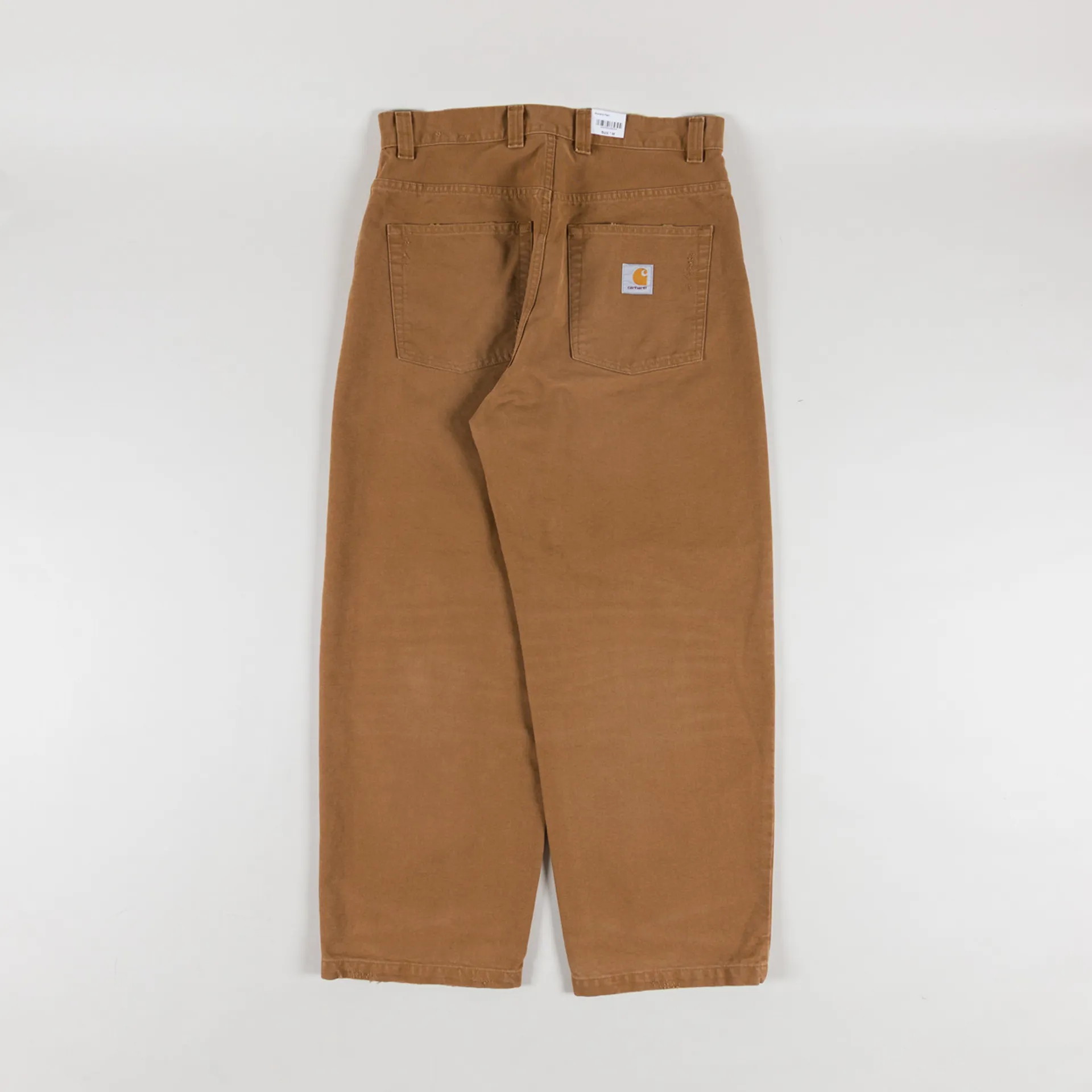 The Brandon Pant from Carhartt WIP, cut with a super loose silhouette and a low crotch. Constructed from Dearborn Canvas, a heavyweight cotton fabric that has undergone a grind wash,a process which results in a slightly distressed, worn-in finish. Featuring a zip and button fly, leading to a classic belt loop waistband, with a back yoke and five pockets throughout. Finished with the signature Carhartt square label at the rear.