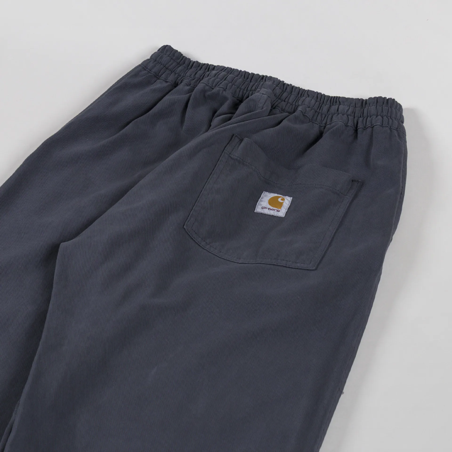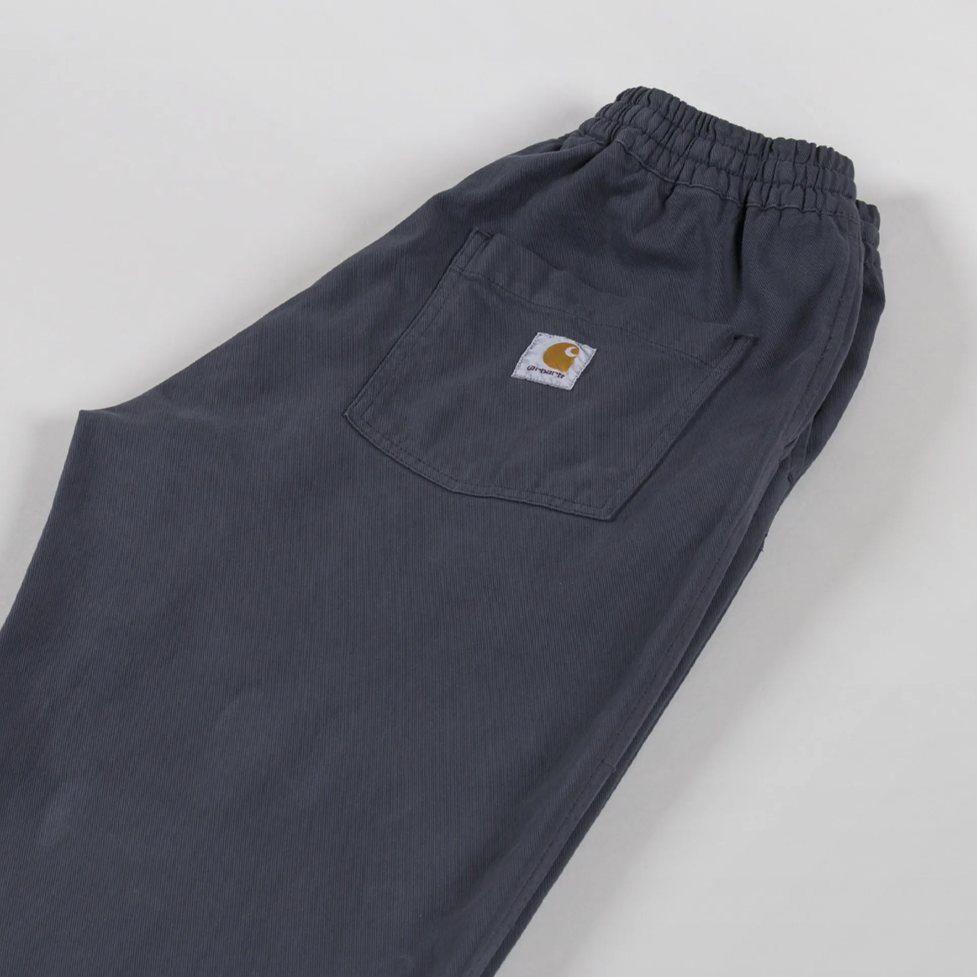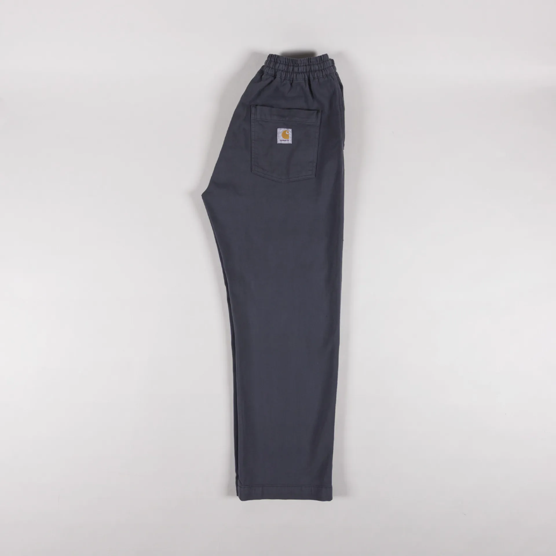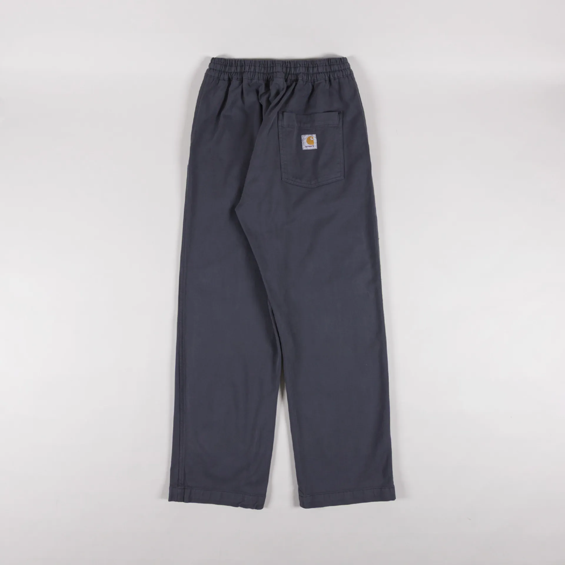 The Floyde Pant from Carhartt WIP has been cut with a relaxed, straight leg and a regular-fitting waist. Crafted from a heavyweight stretch-twill fabric that has been garment-dyed for a softer feel and a more complex colour configuration. They feature an elasticated waist with an adjustable drawstring, two slant pockets to the front and a single patch pocket at the rear which features the signature Carhartt woven logo.