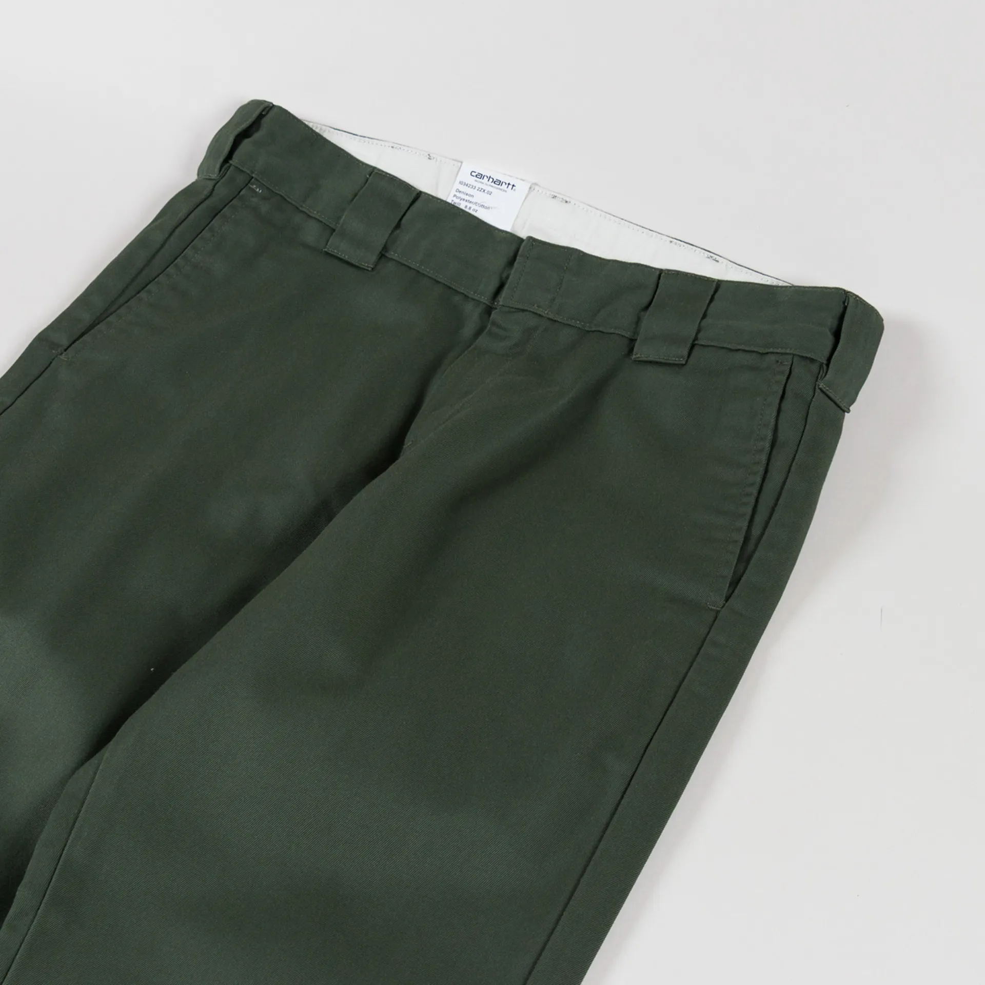 A pair of classic work pants from Carhartt WIP, made from a comfortable yet durable blend of 65% polyester and 35% cotton in their 'Denison' twill, with bartack stitching at vital stretch points for added resistance.