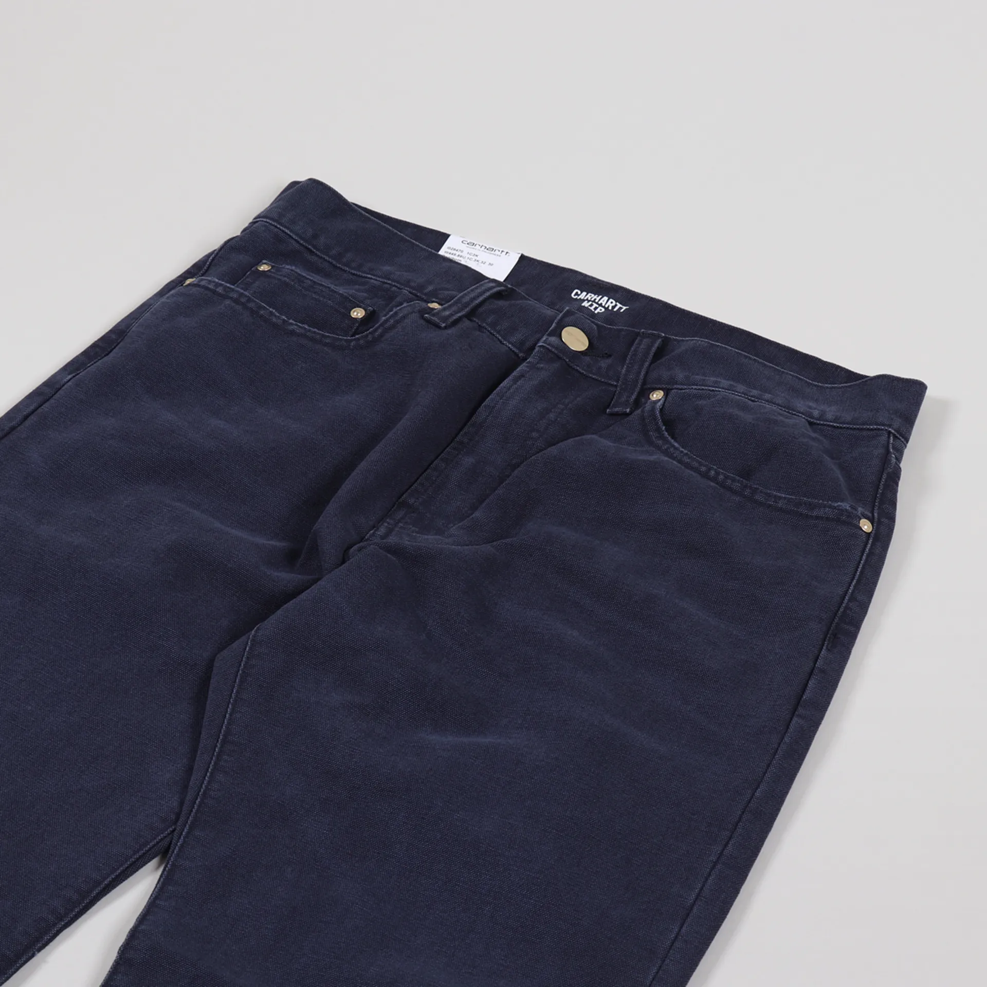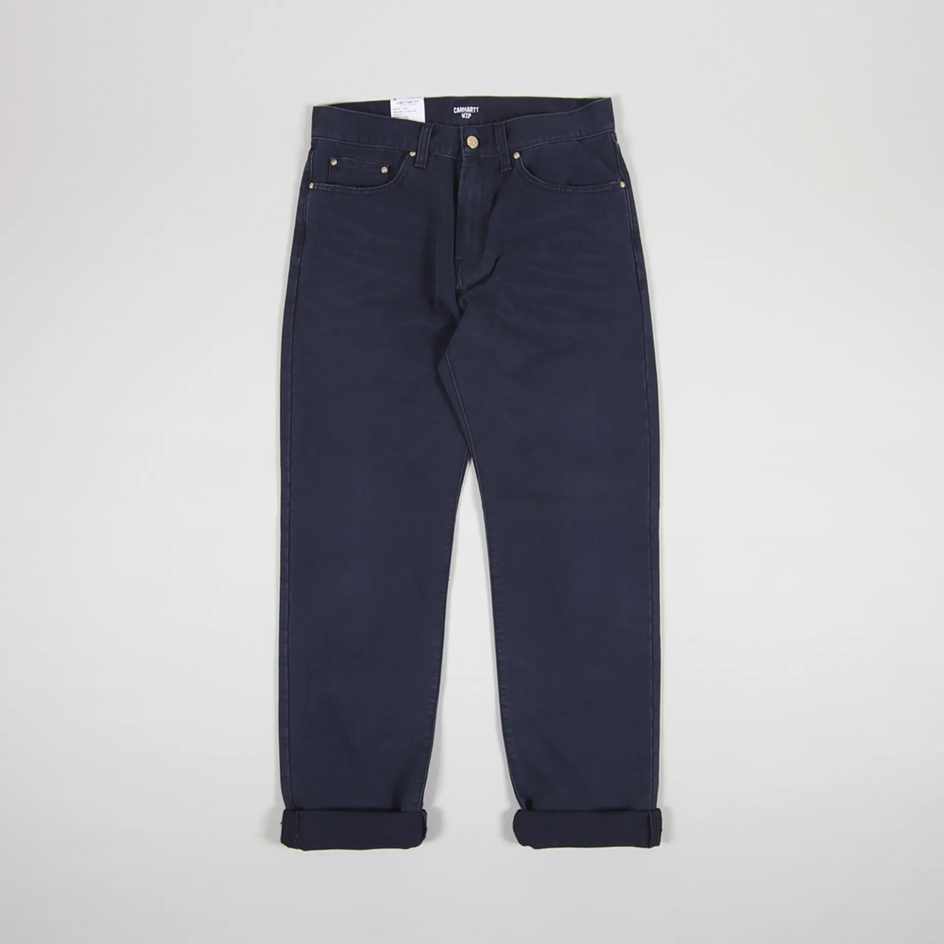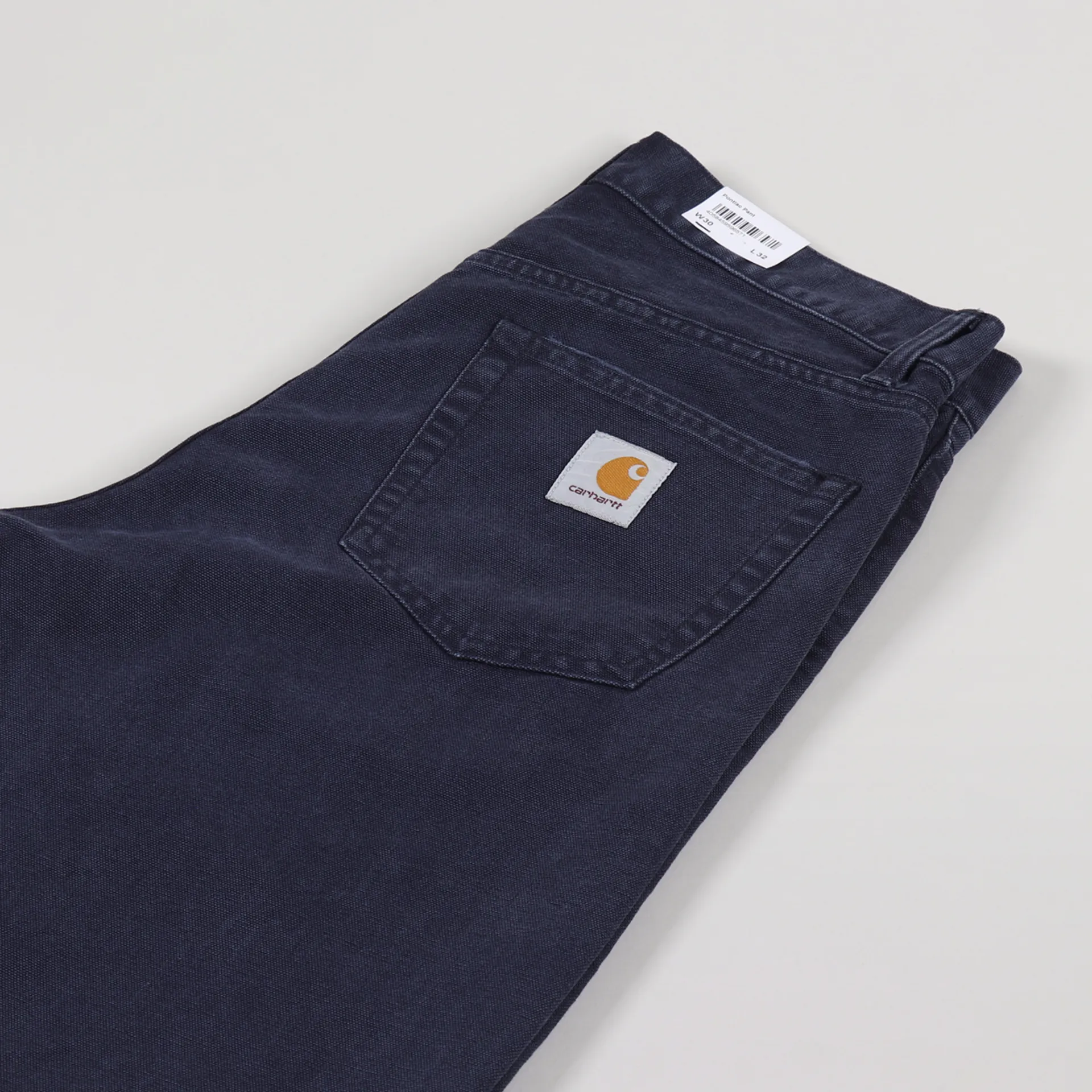A pair of trousers from Carhartt WIP made from 100% cotton in a tough canvas with a five pocket design, zip and button fly and a woven logo patch to the rear.