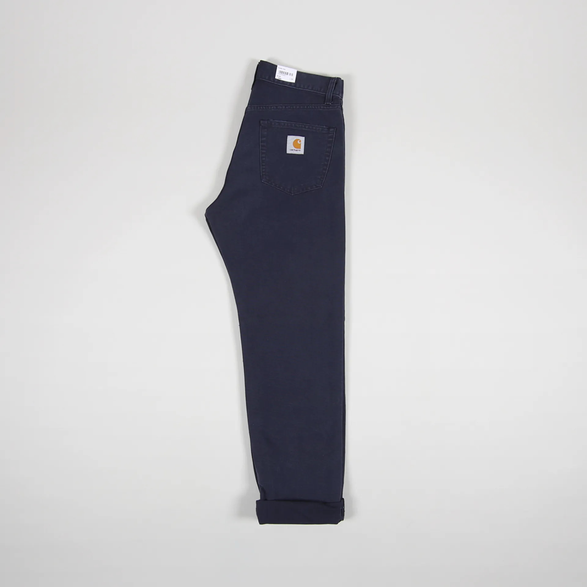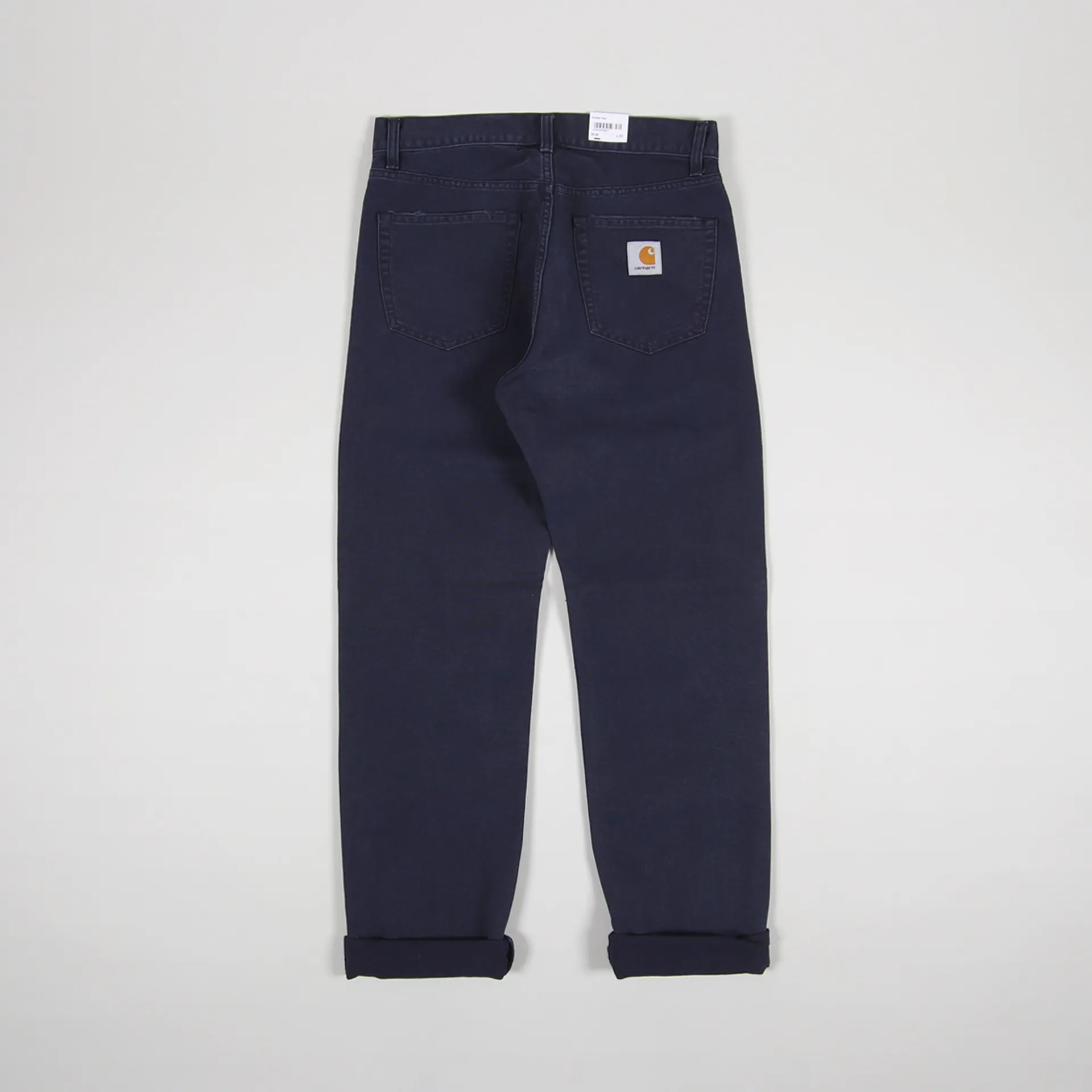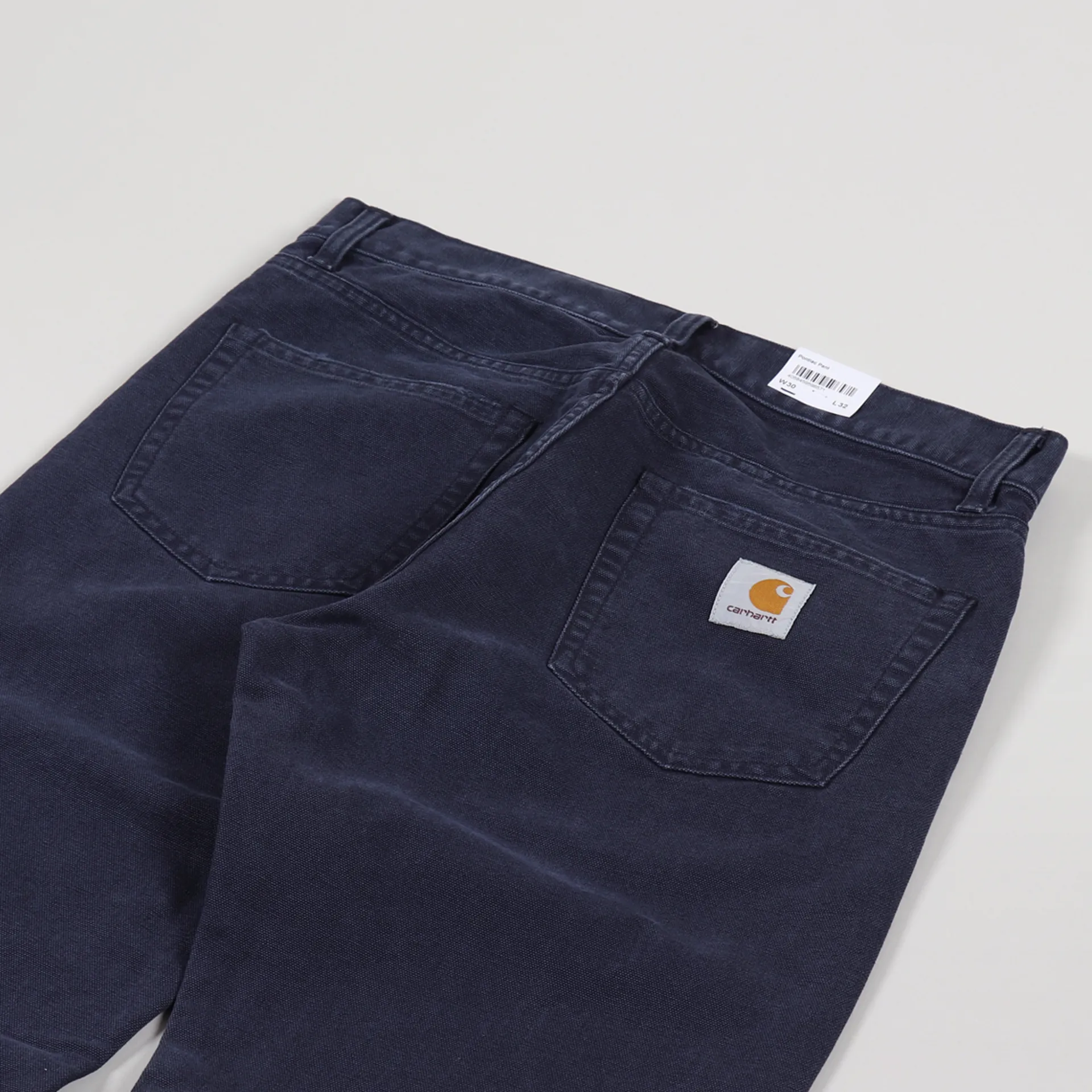 A pair of trousers from Carhartt WIP made from 100% cotton in a tough canvas with a five pocket design, zip and button fly and a woven logo patch to the rear.